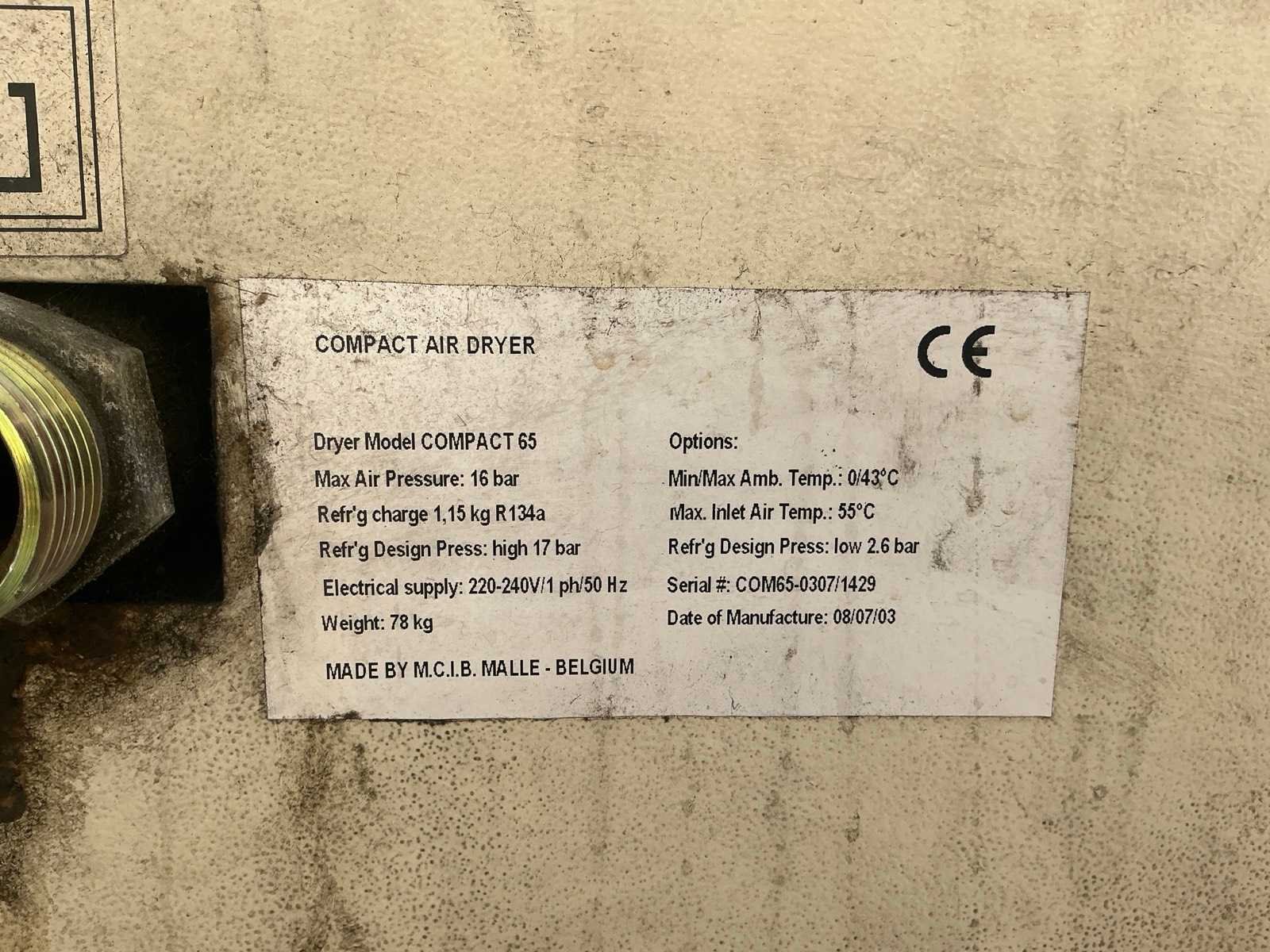Inclusief luchtdroger Compact 65 bouwjaar 2003. Afmetingen: 560x490x800 mm 72kg. Merk: Ingersoll-Rand Type: UP5-22-10 Serienummer: 2230644 Capaciteit.: 10bar Luchtstroom: 3.11l/min Vermogen: 22kW Afgelezen urenstand: 37500 Luchtdroger: true Aansluiting: 400V Eigen gewicht: 540kg Totale afmeting L: 9mm Totale afmeting Breedte: 1260mm Totale afmeting Hoogte: 1070mm