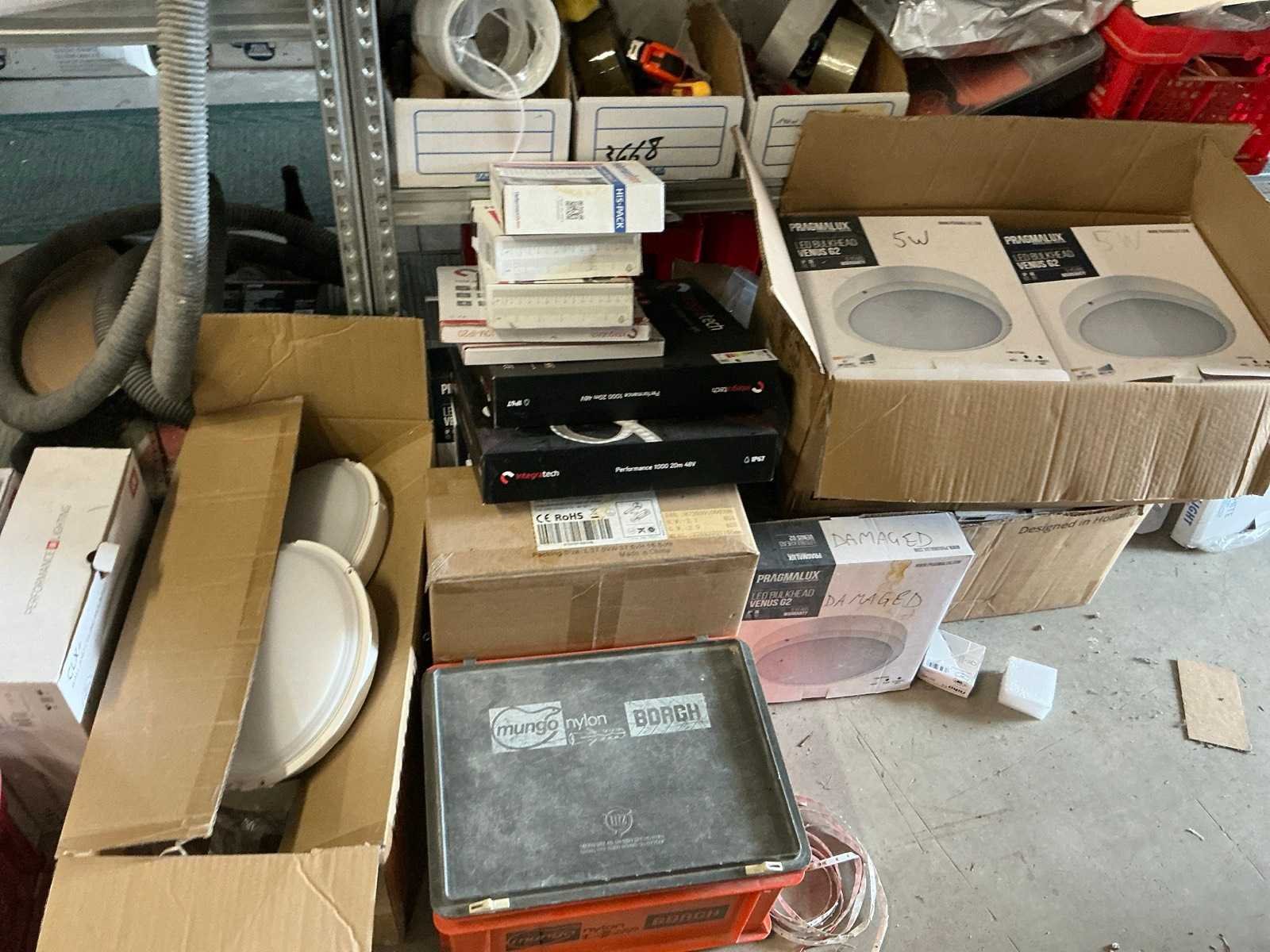 Waaronder verlichting. sensors, zekeringen, parlefoons, batterijen, ….. merken Eaton, Schneider, bticino, Niko…. koper dient alles mee te nemen