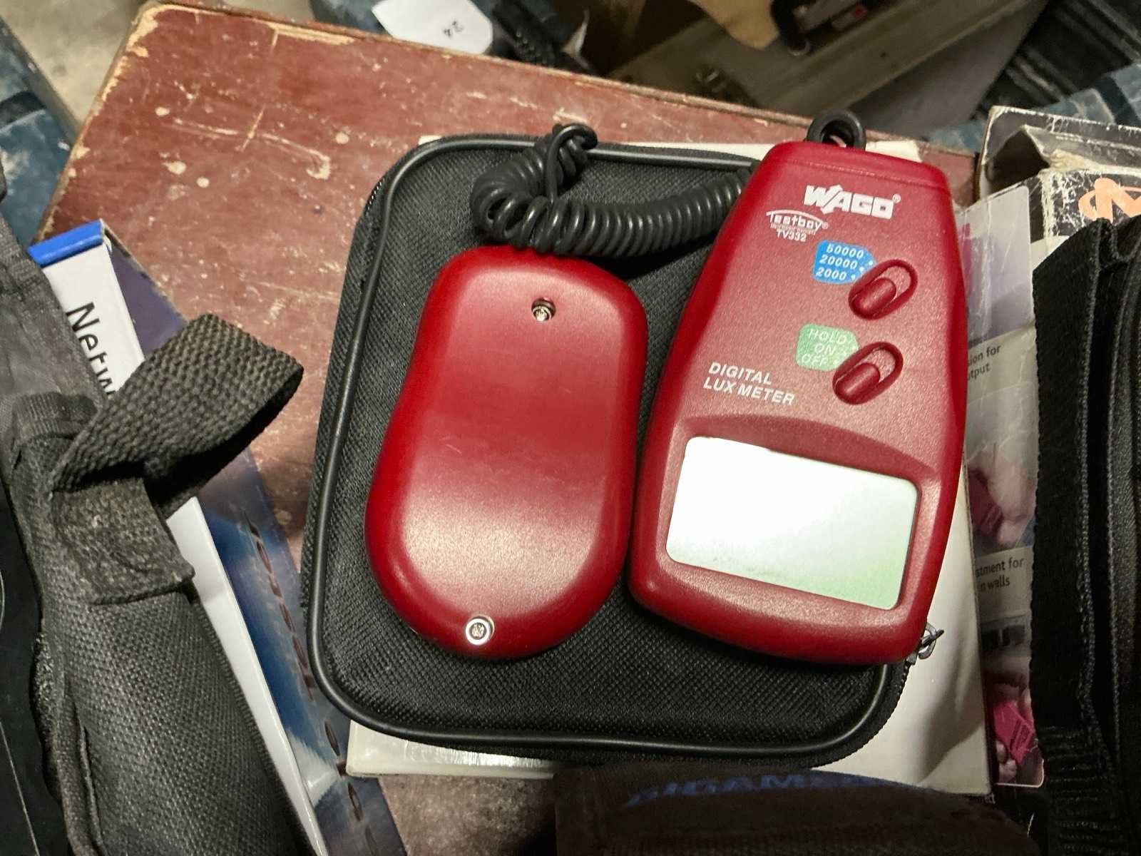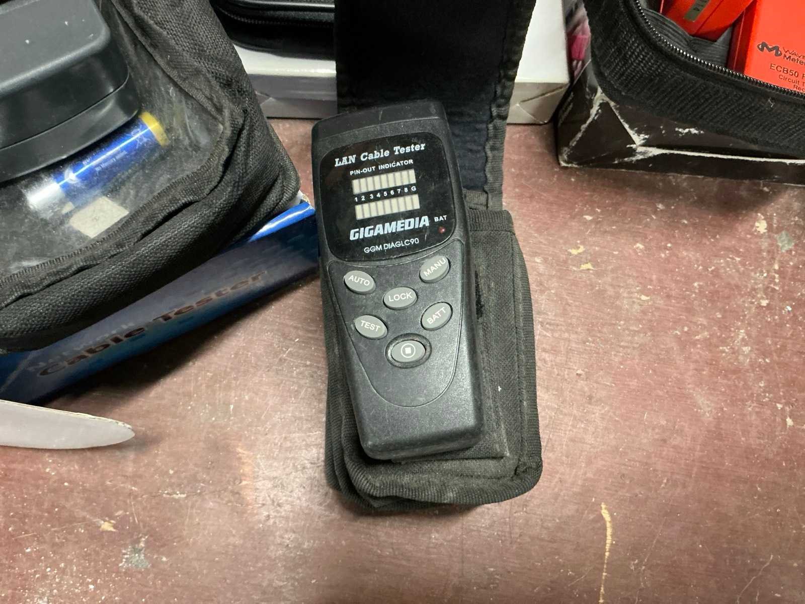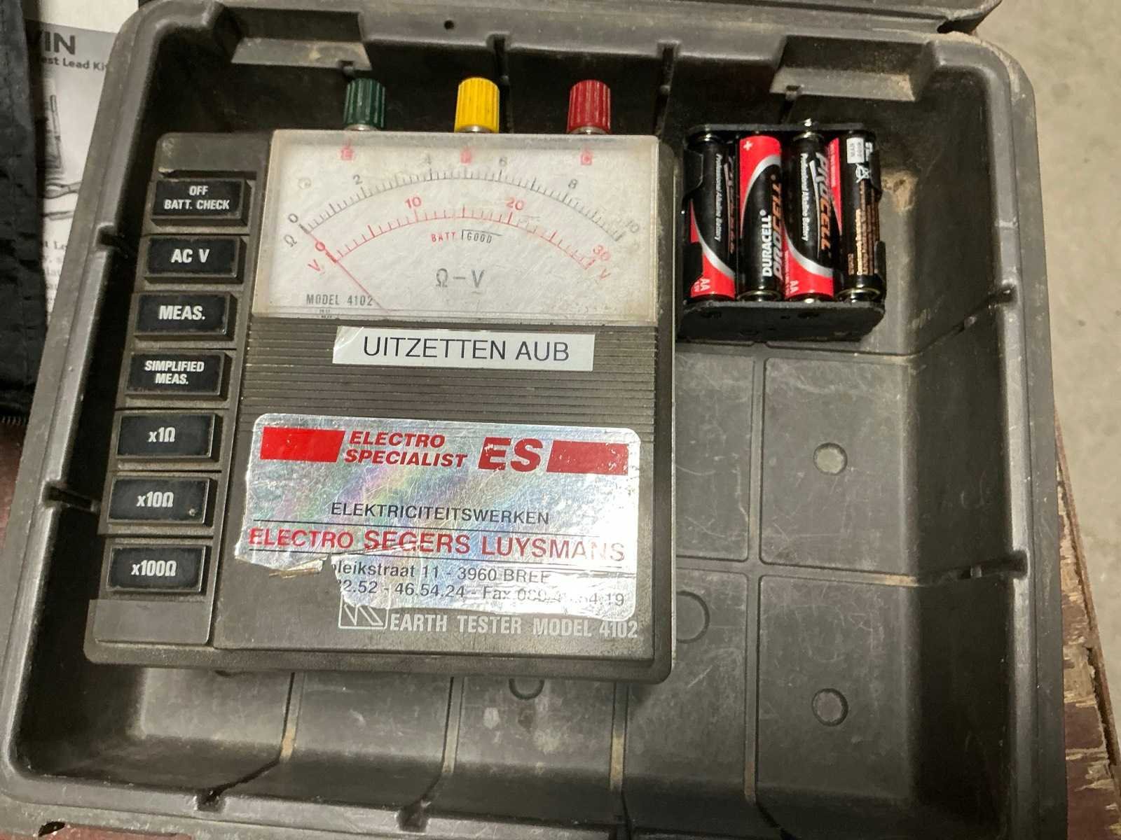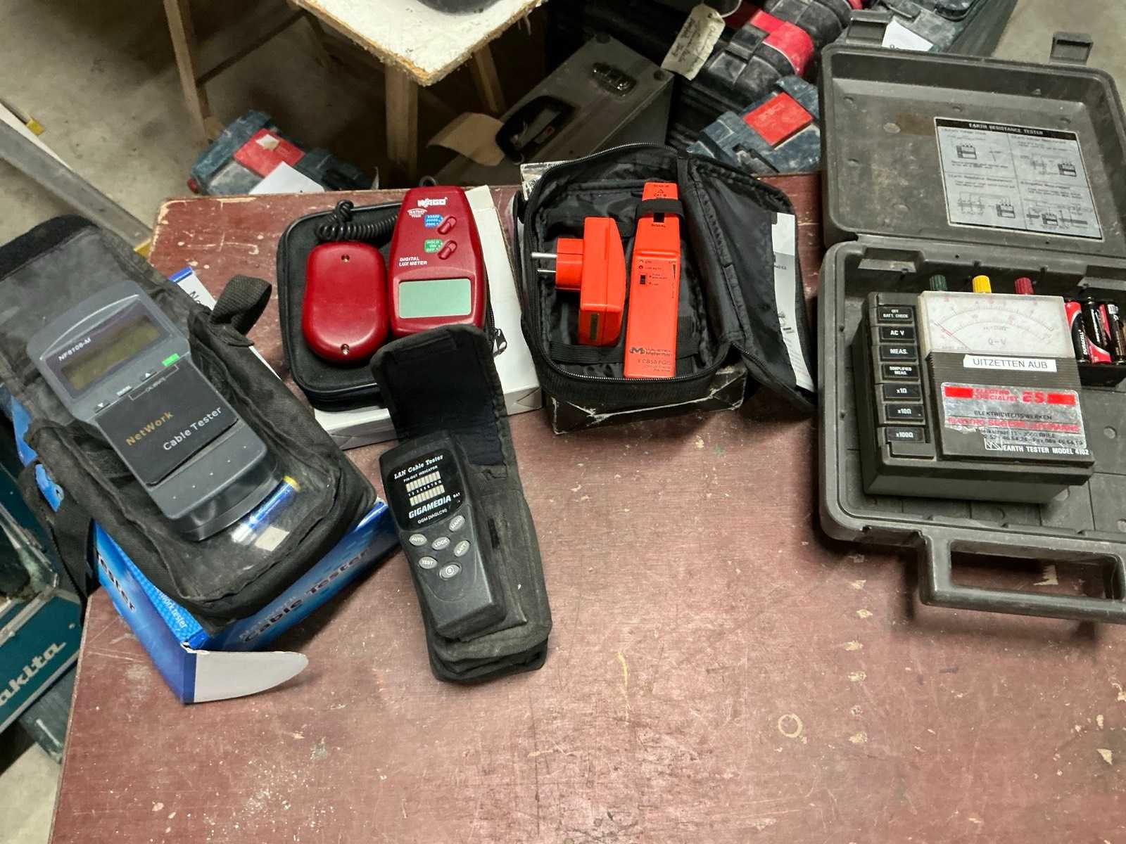 Earth tester 4102, Gigamedia LAN cable tester, NF8108-M Netwerk cable tester, Wago digitale lux meter, Wavetek Circuit tracer