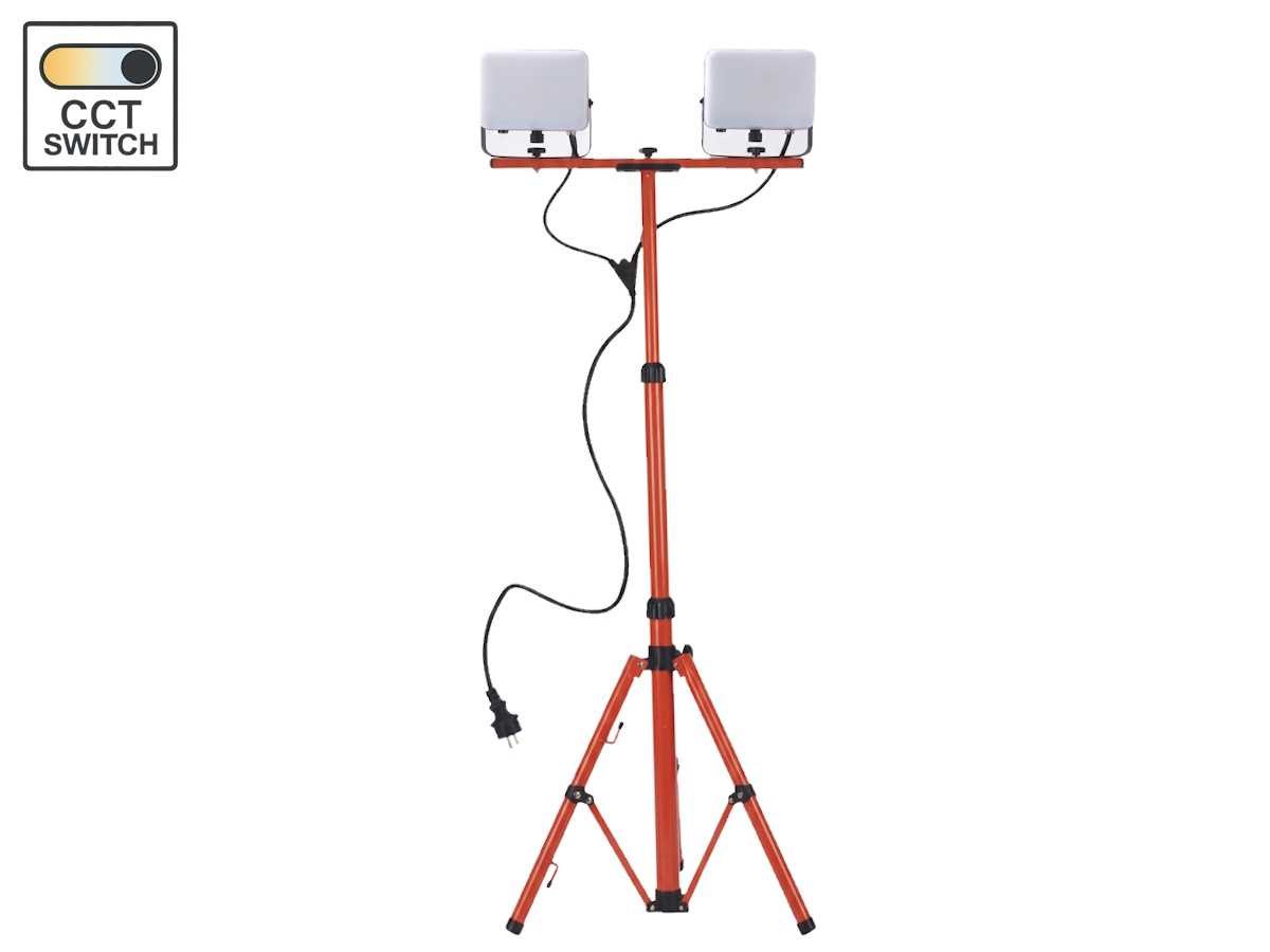 Lichtkleur 3 in 1 CCT switch neutraal wit en daglicht dat de kleurtemperatuur kan geschakeld worden tussen 4000K 5000K 6000K, waterdicht IP65, lichtstroom max 2x4200 totaal 8400 lumen, product kleur wit orange zwart, afm max hoogte 1600mm een breedstraaler 189 x 125 x 31 mm, opklapbare poten en hoogte verstelbaar tripod, stralingshoek 110°, behuizing staal aluminium en PC, bevestiging niet inclusief, 220-240V, 180cm rubber kabel, sku 1187 Merk: LAMPINNO Product type: Bouwlamp tripod Spanning: 220-240V Kleurtemperatuur: 4000K 5000K 6000KK Lichtbron: LED Wattage: 2x50W Kleur: Wit Orange Zwart Lengte: 21.8cm Breedte: 8cm Hoogte: 23.5cm Materiaal: Staal Aluminium en PC
