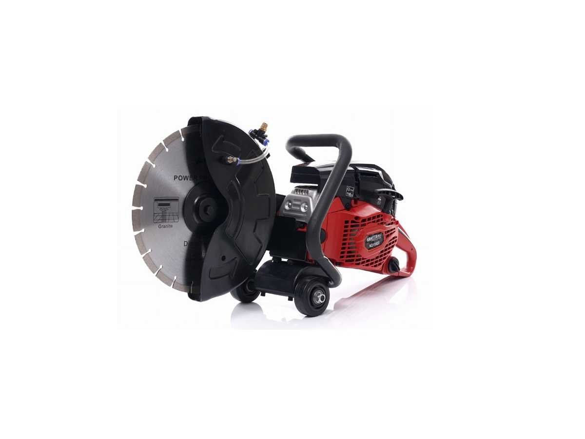 Gaszaag voor beton/asfalt Merk: KRAFT&DELE Apparaat ontworpen voor het nauwkeurig snijden van verschillende materialen zoals: beton, staal, baksteen, enzovoort. Kenmerken: . Natte en droge werking . Lage trilling . Nauwkeurig stationair snijden . De bladen koelen . Stofbescherming Specificaties: . Hub: 58cc . Maximaal vermogen: 3 (2,4) pk/kW . Maximale rotatie: 3,9 Nm . Loopsnelheid: 3.000 . Maximale snelheid: 4.900 . Brandstoftankcapaciteit: 550 ml . Brandstof: 25:1 met olie voor tweetaktmotoren . Maximale bladdiameter: 300 mm/12" . Maximale snijdiepte: 105 mm . Gewicht: 16 kg Conditie: Nieuw