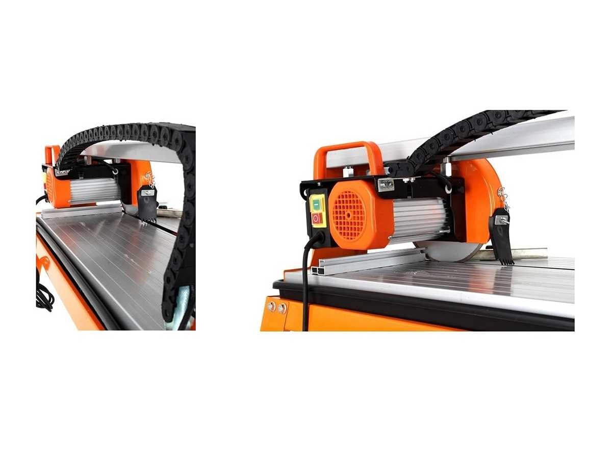 Tafeltegelsnijder Merk: KRAFT&DELE Nauwkeurig zagen van alle soorten tegels, evenals porselein-, marmer- en stenen platen. Er is kantelverstelling, hoek op schaal. De tafel is stabiel, lichtgewicht, draagbaar en gemaakt van roestvrij staal. Met het juiste blad kan de apparatuur als houthakker worden gebruikt. De snijder kan in standaard, hellend of "diamant" snijden. Uitgerust met een diamantblad en een watercontainer om het lemmet te koelen. Kenmerken: . De tafel is gemaakt van roestvrij staal, . Hij heeft: kantelverstelling, hoekschaal, gradenboog en automatische waterpomp, magnetische schakelaar, aluminium werktafel. Specificaties: . Spanning/Frequentie: 230V-50 Hz . Motorvermogen: 1900 W . Snelheid zonder lading: 2950/min . Schijfgrootte: Ø200 mm . Max. 90° snijdiepte: . 32 mm maximaal. 45° snijdiepte: . 28 mm maximaal. snijlengte: 920 mm . Bladgatdiameter: Ø25,4 mm . Tafelmaten: 960 mm x 390 mm . Netto gewicht: 36 kg Conditie: Nieuw