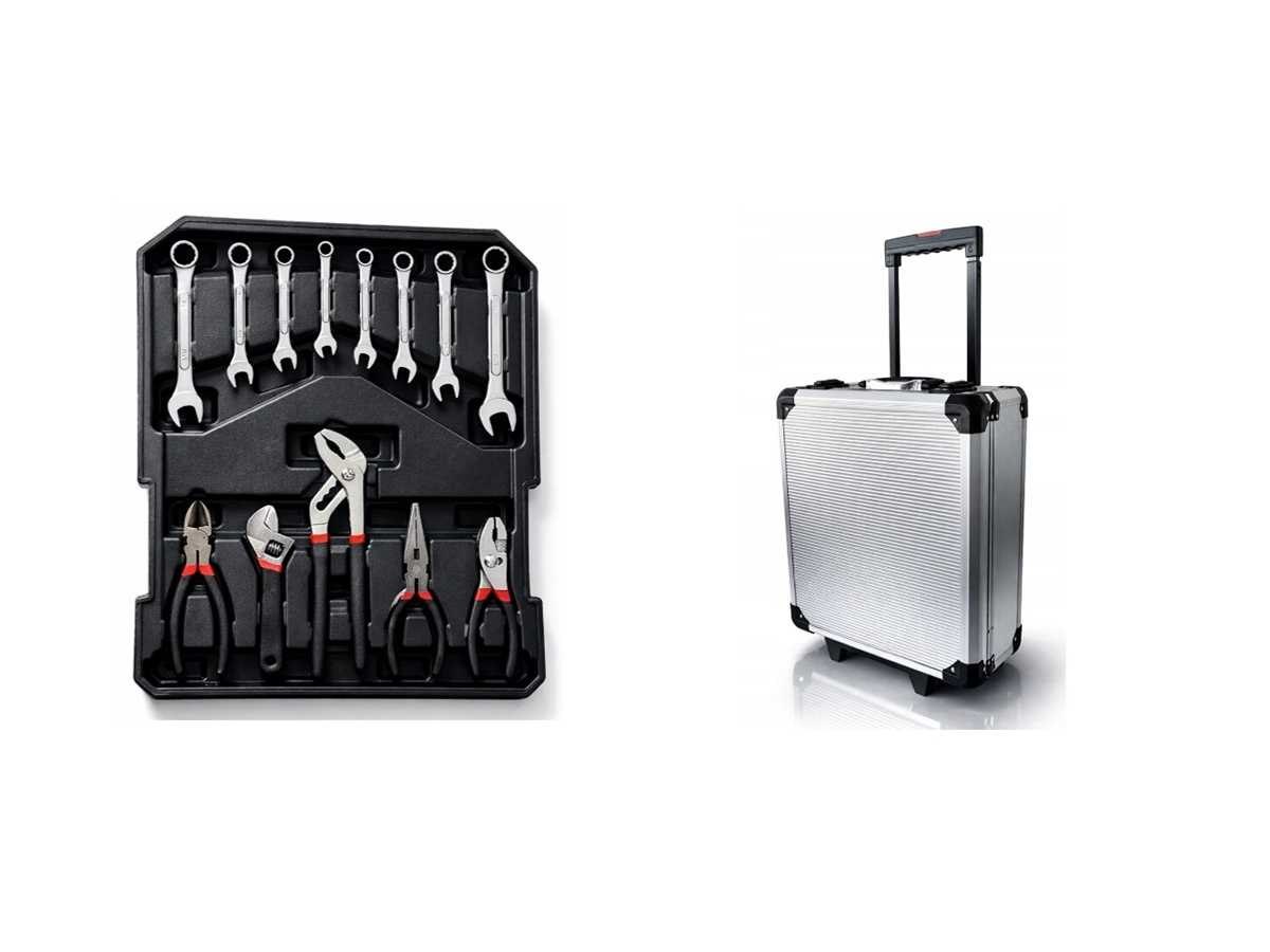 Gereedschapskist (419 items) Afmetingen van de koffer (hoogte/breedte/lengte): 49x36x18 cm Maximale hoogte met handvat: 96 cm Kenmerken: . Vergrendelbare aluminium behuizing . Wielen voor gemakkelijk schuiven van de koffer . 4 Gereedschapsladen Detail 1: . 3 schroevendraaiers voor hoge spanning (1000 V): (-) 4x100, (-) 5,5x125, (+) 4x100 . Spanningstester (100V - 500V) . 6 stuks. Precisieschroevendraaiers (Horlogemakers) . Metrische inbussleutels: 1,5; 2; 2,5; 3; 4; 5; 5,5; 6 mm . Cutter Stak: + PZ & PH & Allen & Torx . Ratelschroevendraaier: Hex Carriage . Platte schroevendraaiers (-): 6x100; 5x75; 4x100; 3x100; 6x38mm . Kruisschroevendraaiers (+): PH3x150; PH2x 100; PH1x75; PH1x100; PH0x75; PH0x38mm . HEX-extensie . Telescopische verlenging Detail 2: . Meetlint 3 m . Geestesniveau . Hamer . 2 zelfvergrendelende klemmen . Technische scharen . Behangmes . Hot Gun . 2 lijmstiftjes . Universeel elektrisch draadkrimpgereedschap . Isolatietape . Een set spijkers, schroeven en andere voorwerpen in de organizer Detail 3: . Verstelbare sleutels: 6, 8; 10; 11; 12; 13; 14; 15; 17 . Tang . Precisieklemmen . Frog Key . Zweedse verstelbare moersleutel . Draadtang Detail 4: . Rattle A Large 1/2" . Rattle small 1/4" . Flexibele verlenging (flexibel) 150 mm . Condensatoren voor 21 mm en 16 mm bougies . Schroevendraaierhouder voor 1/4" doppen 1/2" Accessoires . Dopsleutels + 1/2" knoppen en verlengstukken . Sockets: 8, 9, 10; 11; 12; 13; 14; 15; 16; 17; 18; 19; 20; 30 mm . 120 mm verlenging . Groter gimbalgewricht . Grotere T-knop 1/4" Accessoires . Dopsleutels + 1/4" knoppen en verlengstukken . Sockets: 4; 4,5; 5; 5,5; 6; 6,5; 7; 7,5; 8; 9; 10; 11; 12; 13; 14 mm . 100 mm en 50 mm verlenging . Kleinere gimbalverbinding . Kleinere T-knop Conditie: Nieuw