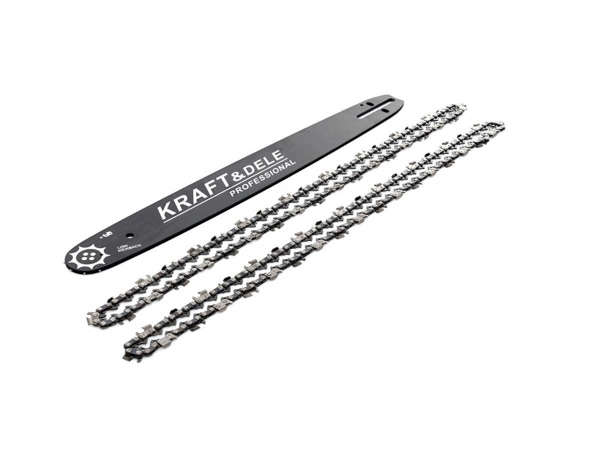 Gids en 2 kanalen Merk: KRAFT&DELE De hek is gemaakt van meervoudig gehard legeringsstaal, wat uitzonderlijke weerstand biedt tegen slijtage en vervorming terwijl het gewicht laag blijft. . Hoogte: 45 cm . Geleidingsgroefbreedte: 1,5 mm . Aantal links naar gidsen: 72 De kettingen die in de set zijn inbegrepen zijn geschikt voor alle kettingzagen die met 3/8 kettingen werken. . Voor de gids: 45 cm / 16" . Aantal schakels: 72 . Kettingsprong: 3/8 (19,5 mm) . Dikte van de gidstand: 1,5 mm Conditie: Nieuw