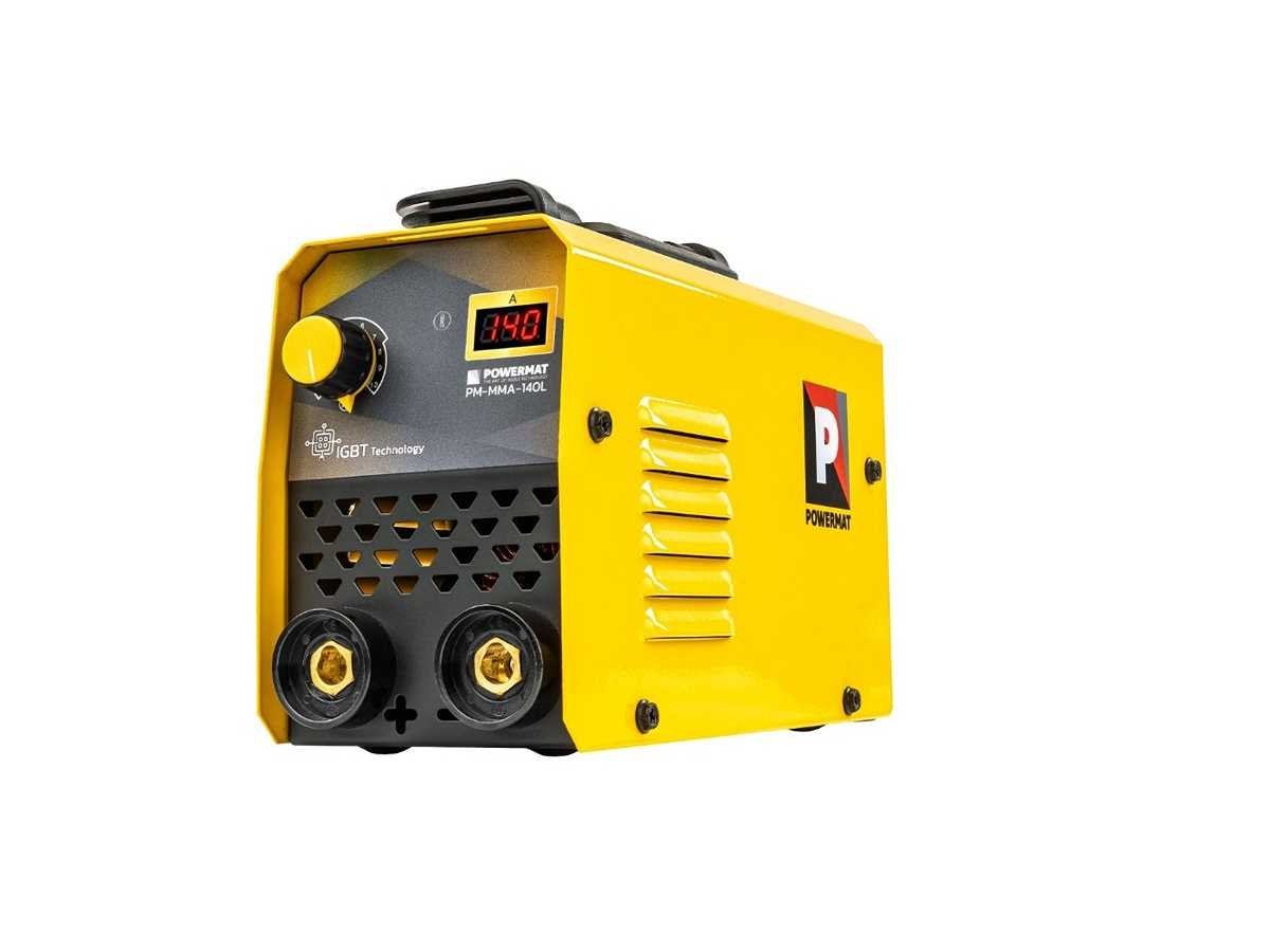 Inverterlasmachine Merk: POWERMAT Specificaties: . Lasmethode: MMA . Voeding: 230 V / 50 Hz . Stroomverbruik: 5,8 kVA . Lasstroombereik: 20 - 140 [A] . Lasstroom, 100% werktijd: 108 A . Lasstroom, 60% werktijd: 140 A . Nominale werkcyclus: 60% . Elektrodedraaddiameter: 1,6 - 4 mm Conditie: Nieuw