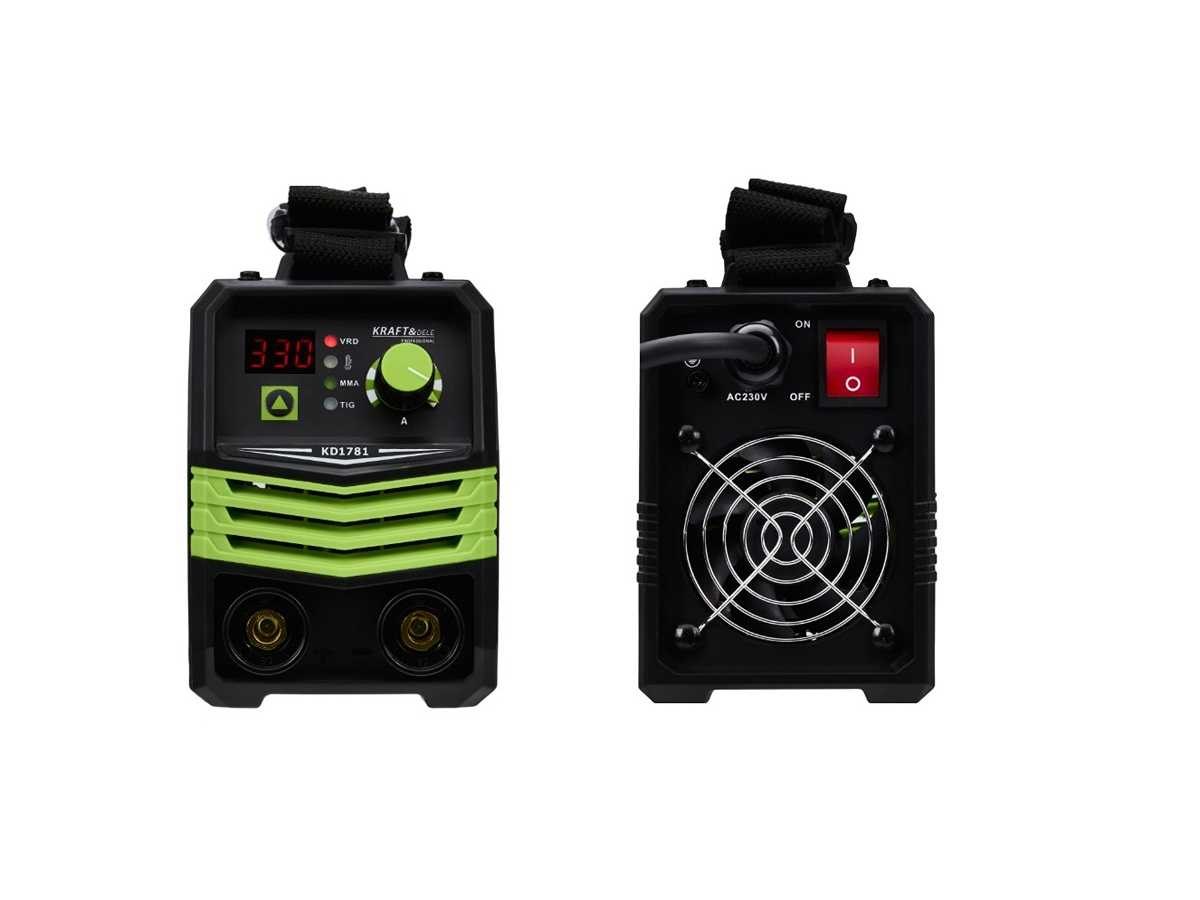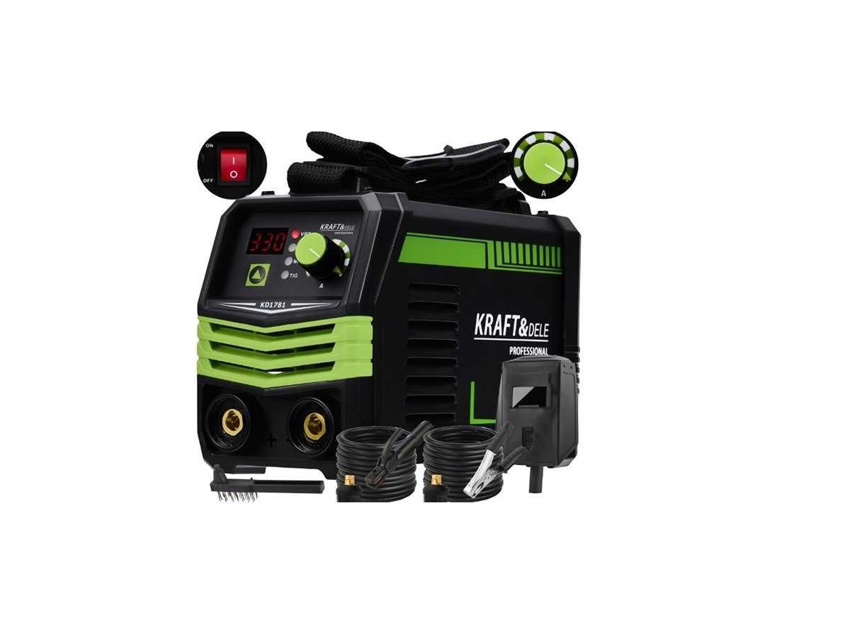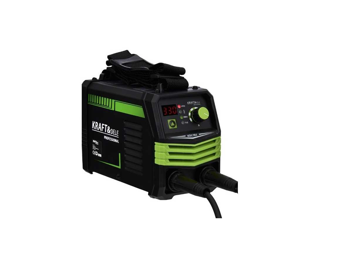 Professionele MMA 330A inverterlasmachine Merk: KRAFT&DELE Kenmerken: . MMA- en TIG LIFT-lassen . Maximale soldeerstroom 330A . Oneindig variabele lasstroomregeling . VRD-systeem voor verhoogde veiligheid op het werk . Ondersteunt elektroden van 1,6 tot 5,0 mm . Stabiele boegbediening . Ventilatorkoeling . Schouderband - makkelijk te vervoeren Specificaties: . Ingangsspanning 230 V . Frequentie 50 Hz / 60 Hz . Maximale lasstroom 330 A . Stroombereik 20 – 330 A . Elektrodebereik 1,6 – 5,0 mm . Prestaties 85% . Koelsysteemventilator . IP21S-beschermingsgraad . Isolatiegraad F Conditie: Nieuw