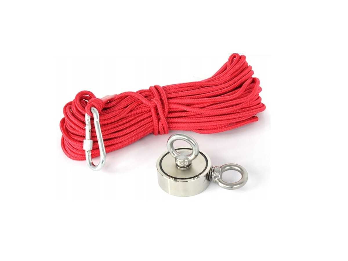 Neodymiummagneet 350 kg Merk: KRAFT&DELE Kenmerken: . M94 Magneet .️ Touwlengte 20 m .️ Touwdiameter 6 mm . Maximale hefcapaciteit 350 kg . Gewicht 2,13 kg Conditie: Nieuw