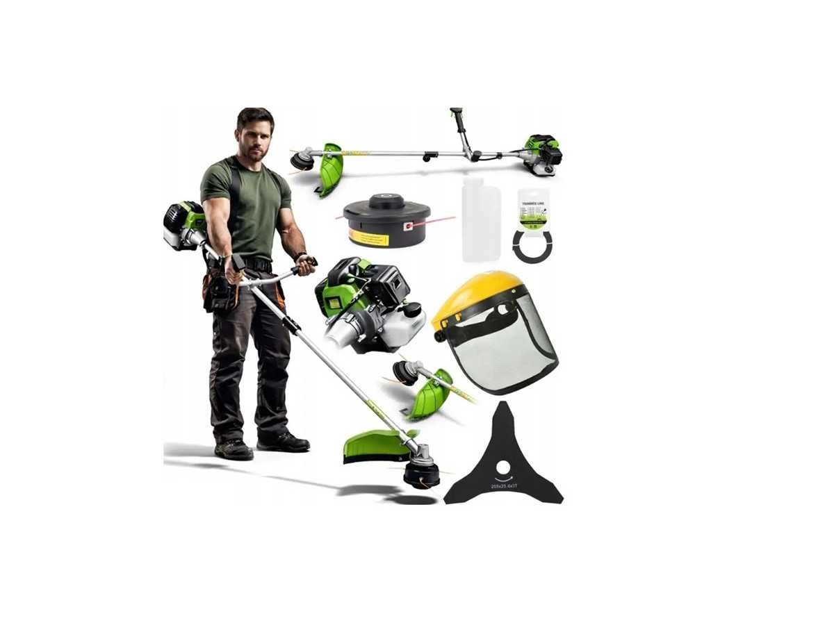 Benzine borstelsnijder Merk: ONDRAGON Specificaties: . Effectief vermogen: 7,1 HP . Motortype: 2-takt . Maximale snelheid: 8500[rpm] . Stationair toerental: 2800-3200[rpm] . Centrifugale toerental: 2800-3200[rpm] . Motorinhoud: 49 cm³ . Snijbreedte: 380 mm . Diameter van de snijschijven: 250 mm . Koppelingstype: Centrifugale koppeling . Carburateurtype: Membraan . Bougietype: LD-L7T . Ontstekingssysteem: CDI . Tankcapaciteit: 0,65L INCLUSIEF . Benzinezeis . Gezichtsmasker . Automatisch kopje in de rij . Service Toolbox . Drietandblad voor hoog, dicht gras . Harnas . Snijlijn 2,4 mm 10 m . Olie-brandstofmengseltank . Schijfkop Conditie: Nieuw