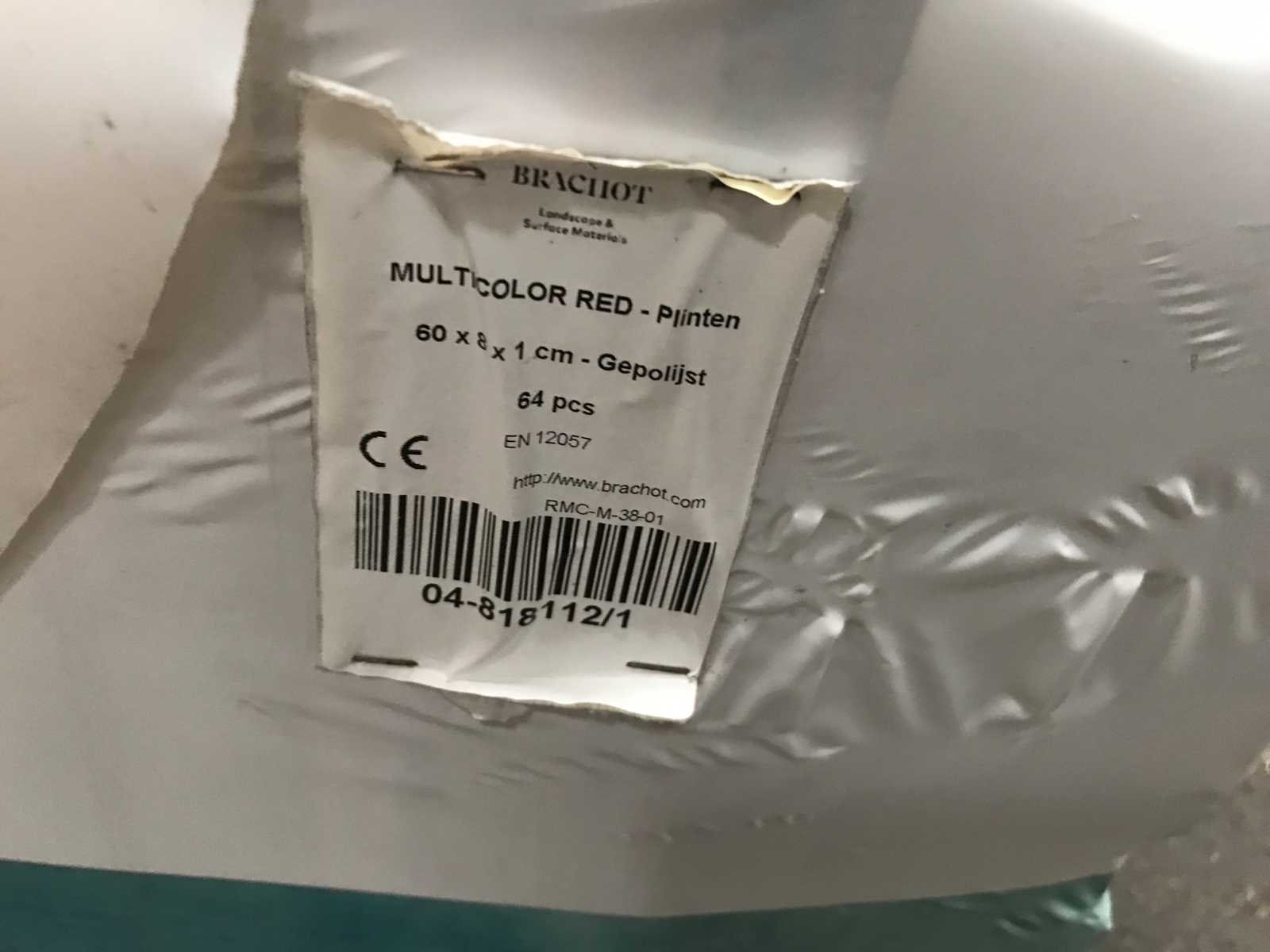 Pallet:1, afm. 60x8x1, ca. 64 stuks Merk: multicolor red gepolijst
