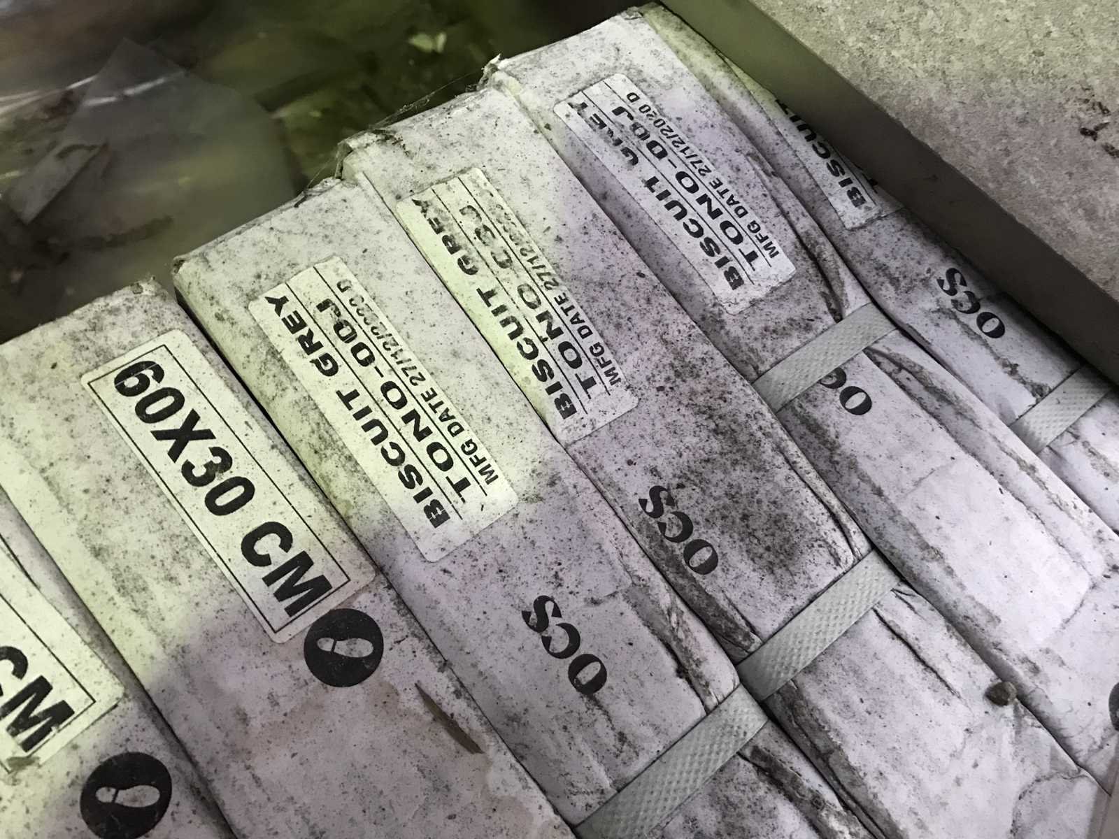 Pallet:1, afm. 90x30x2, ca. 34 stuks Merk: OCS Biscuit grey