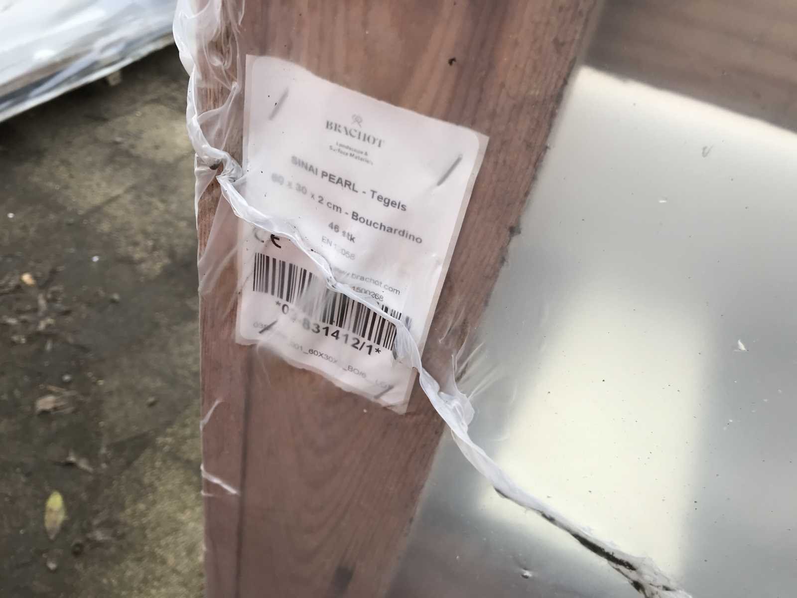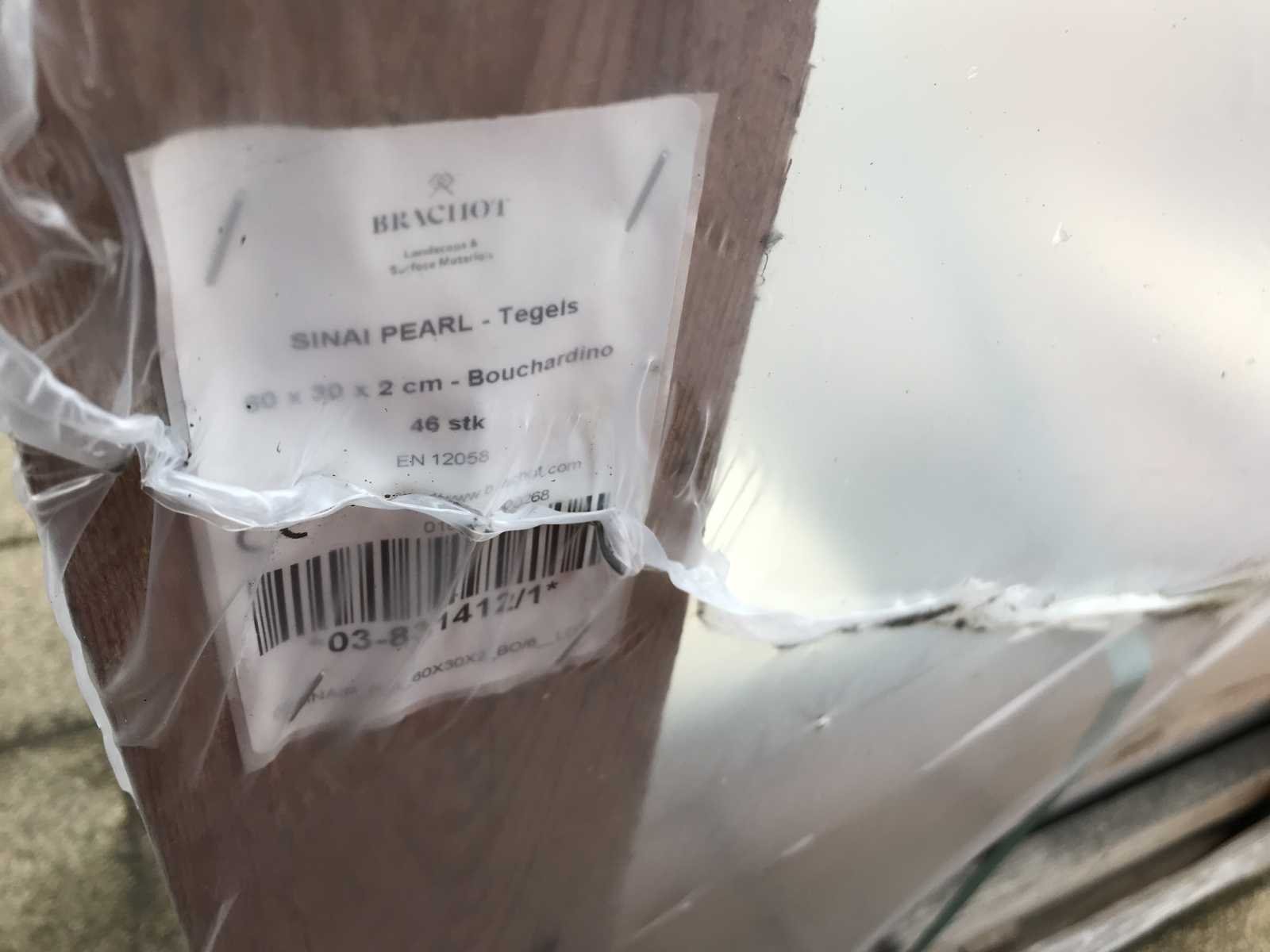 Pallet:1, afm. 60x30x2, ca. 46 stuks, 8,28m2 Merk: Sinai Pearl Bouchardino