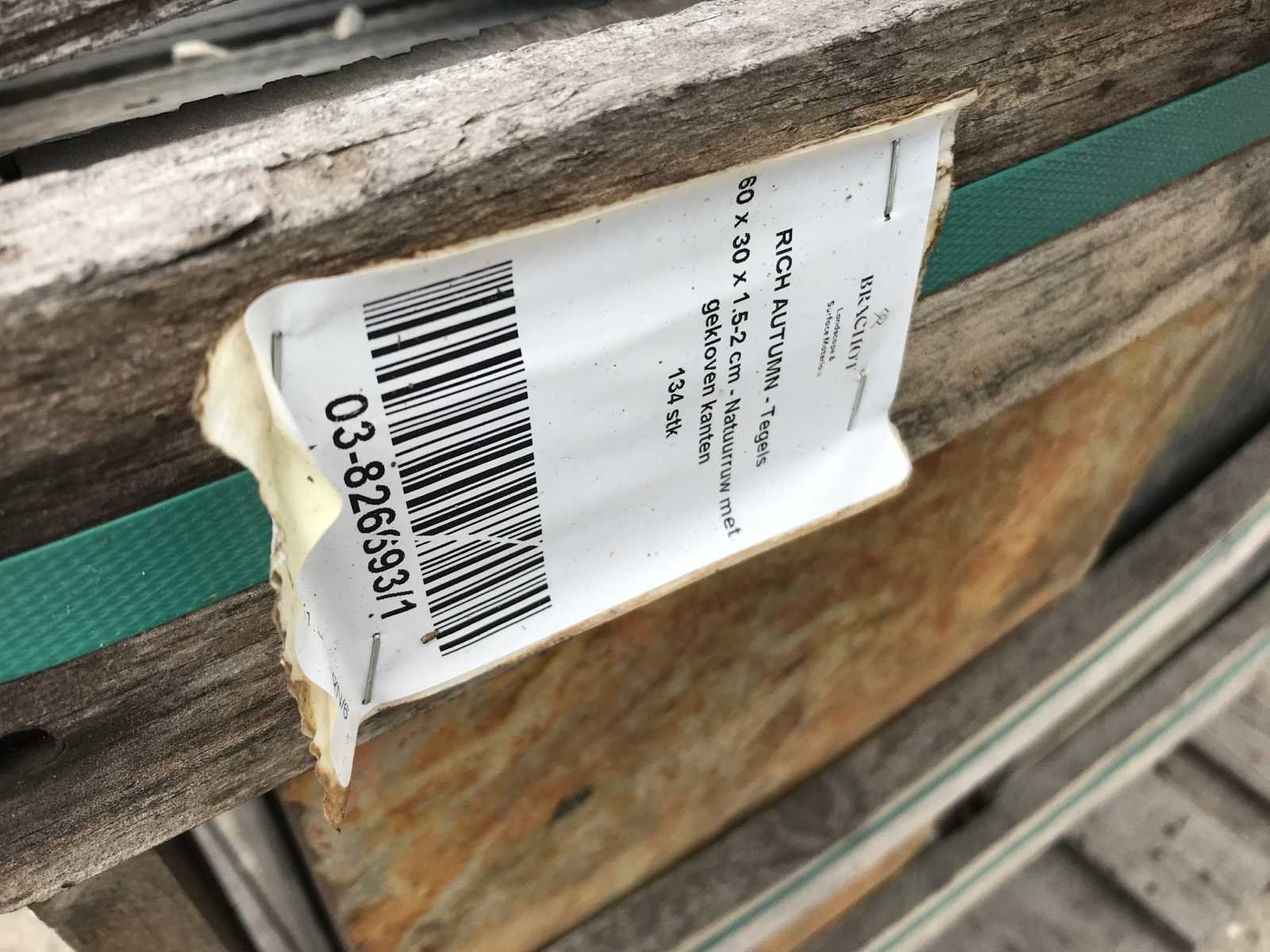 Pallet: 1, afm.: 60x30x1,5-2, ca.134stuks, ca. 24,12m2 rich autumn Merk: Rich Autumn natuurruw met gekloven kanten