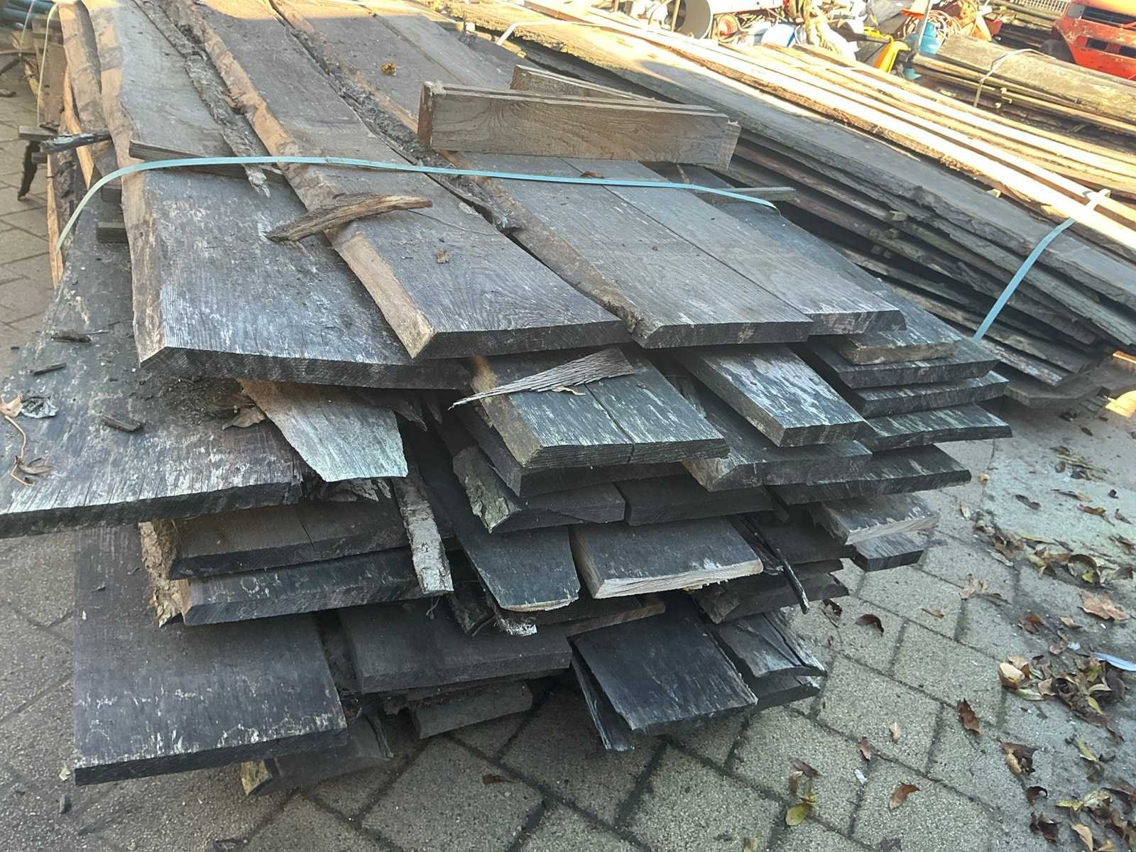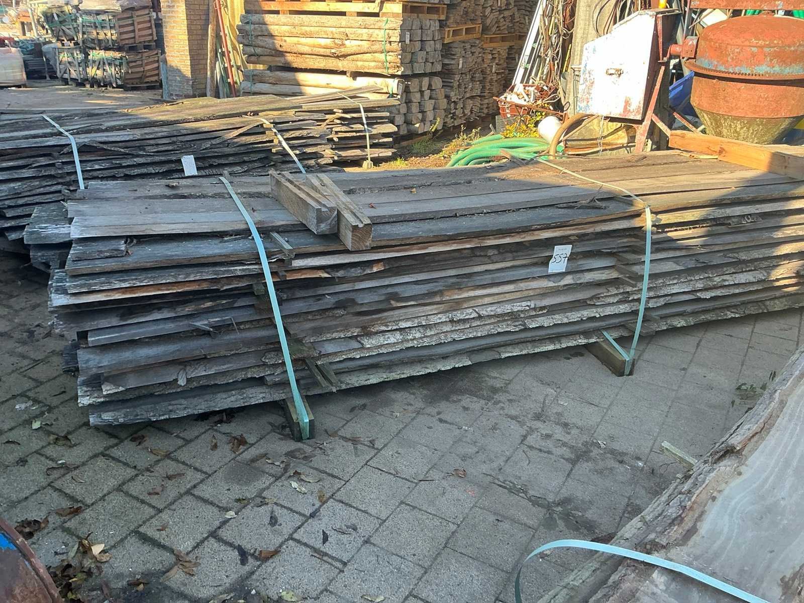 Partij gezaagde boomstamplanken eik