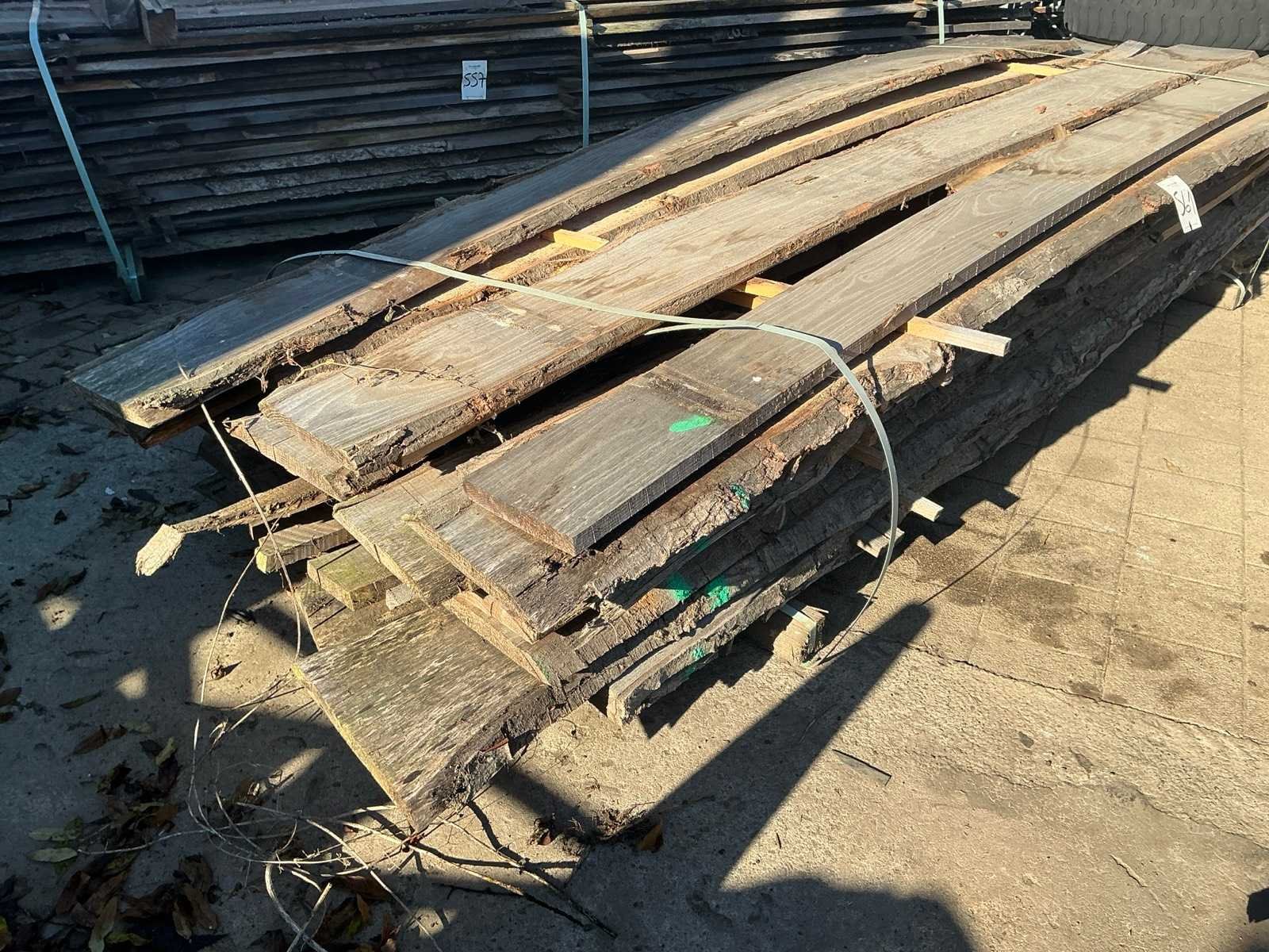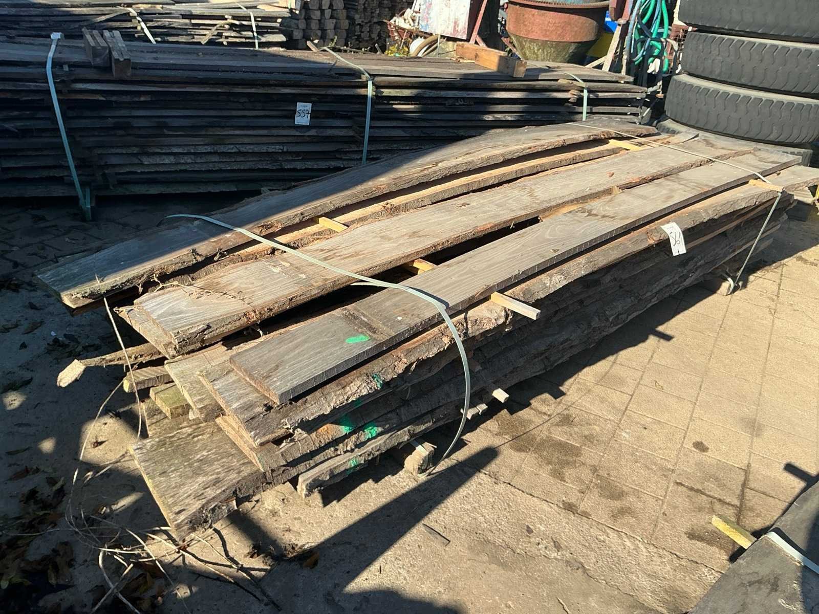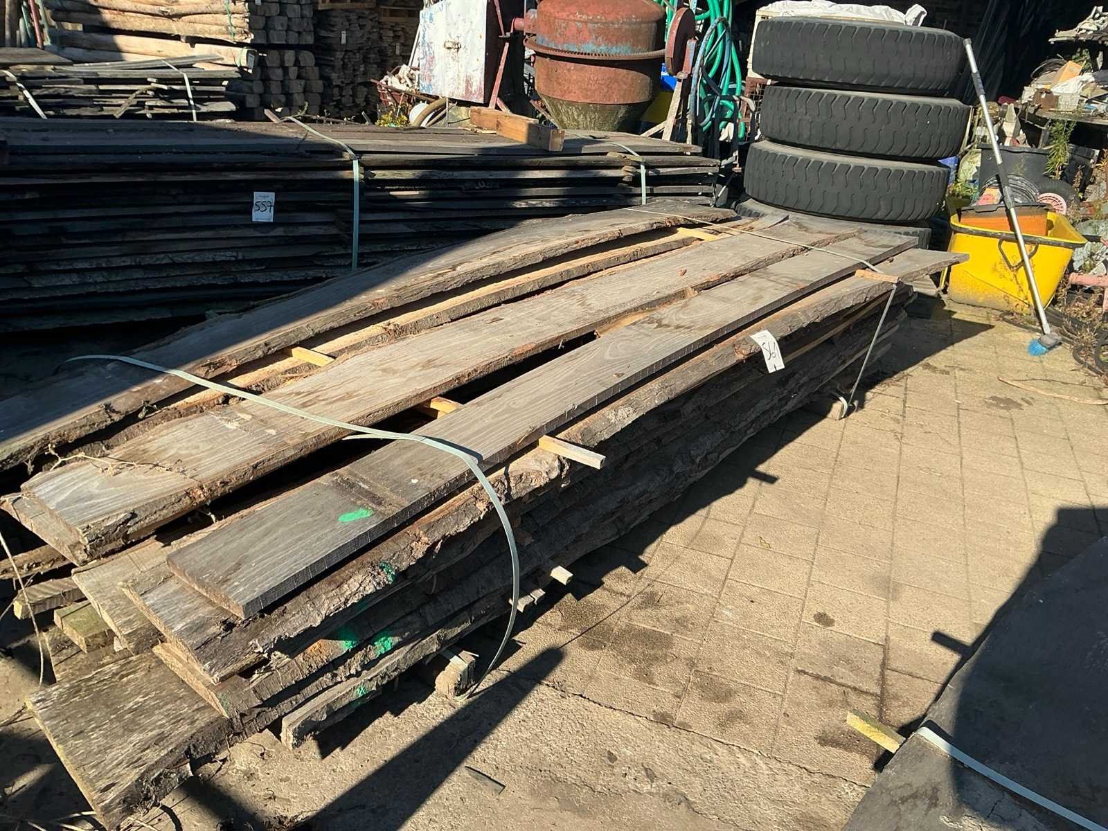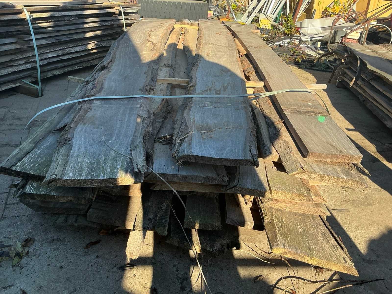 Partij gezaagde boomstamplanken eik