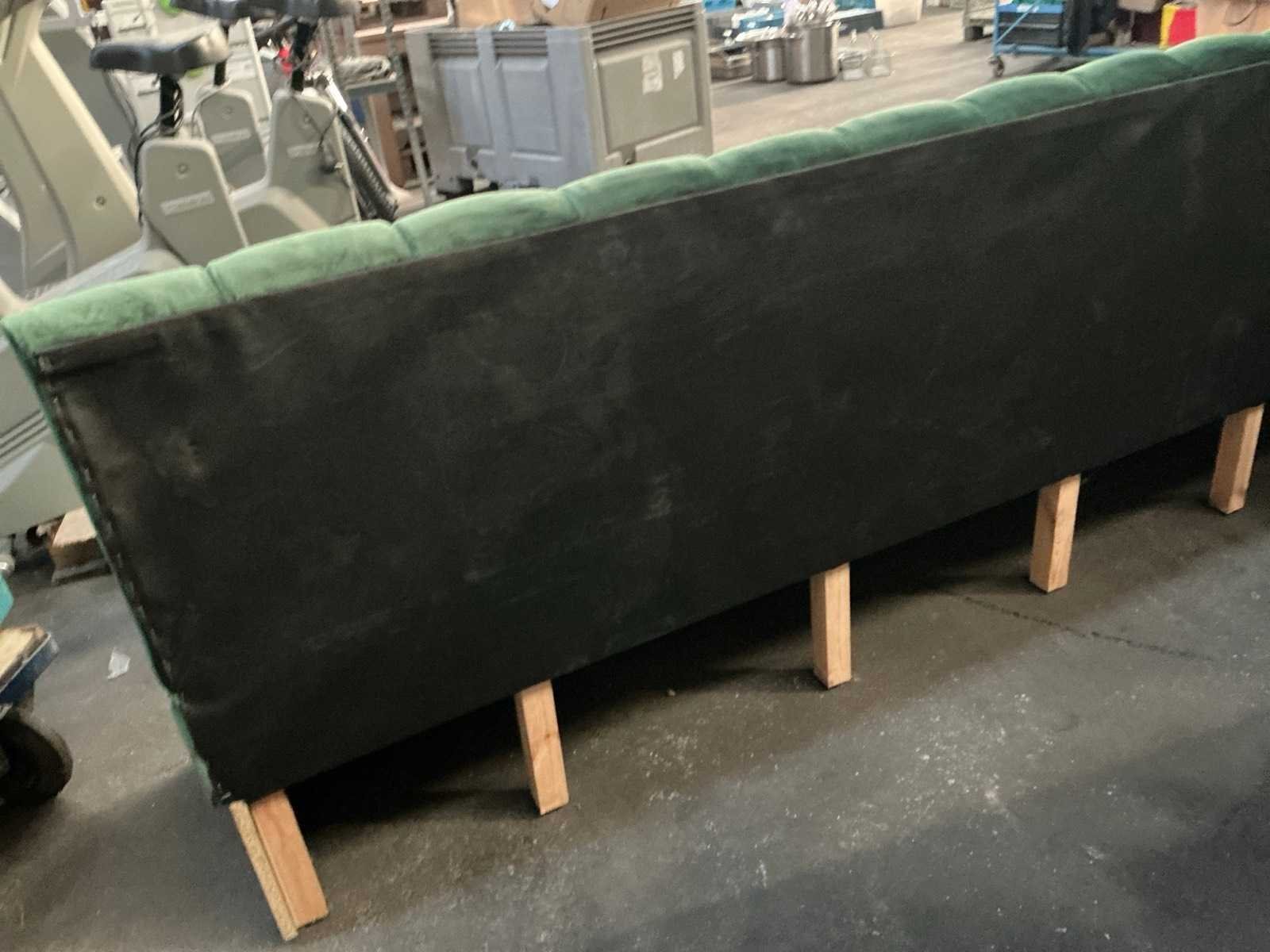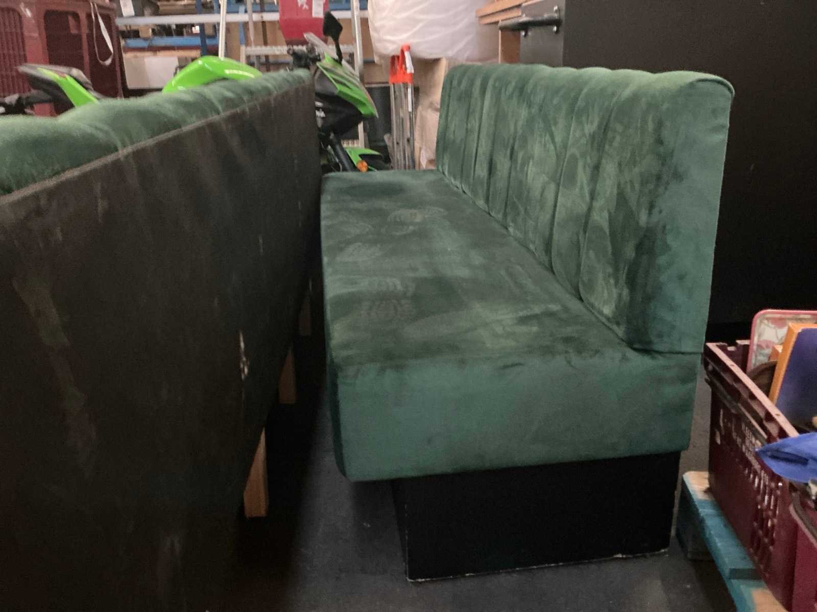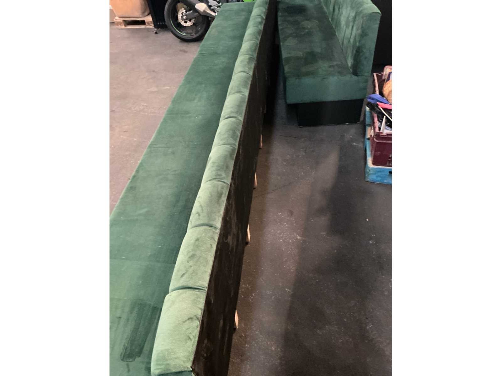 Voorzien van groen stoffen bekleding en zwart houten onderstel Waaronder 1x afmeting circa 4,00 x 66 x 90 cm x En 1x 2,00 x 66 x 90 cm
