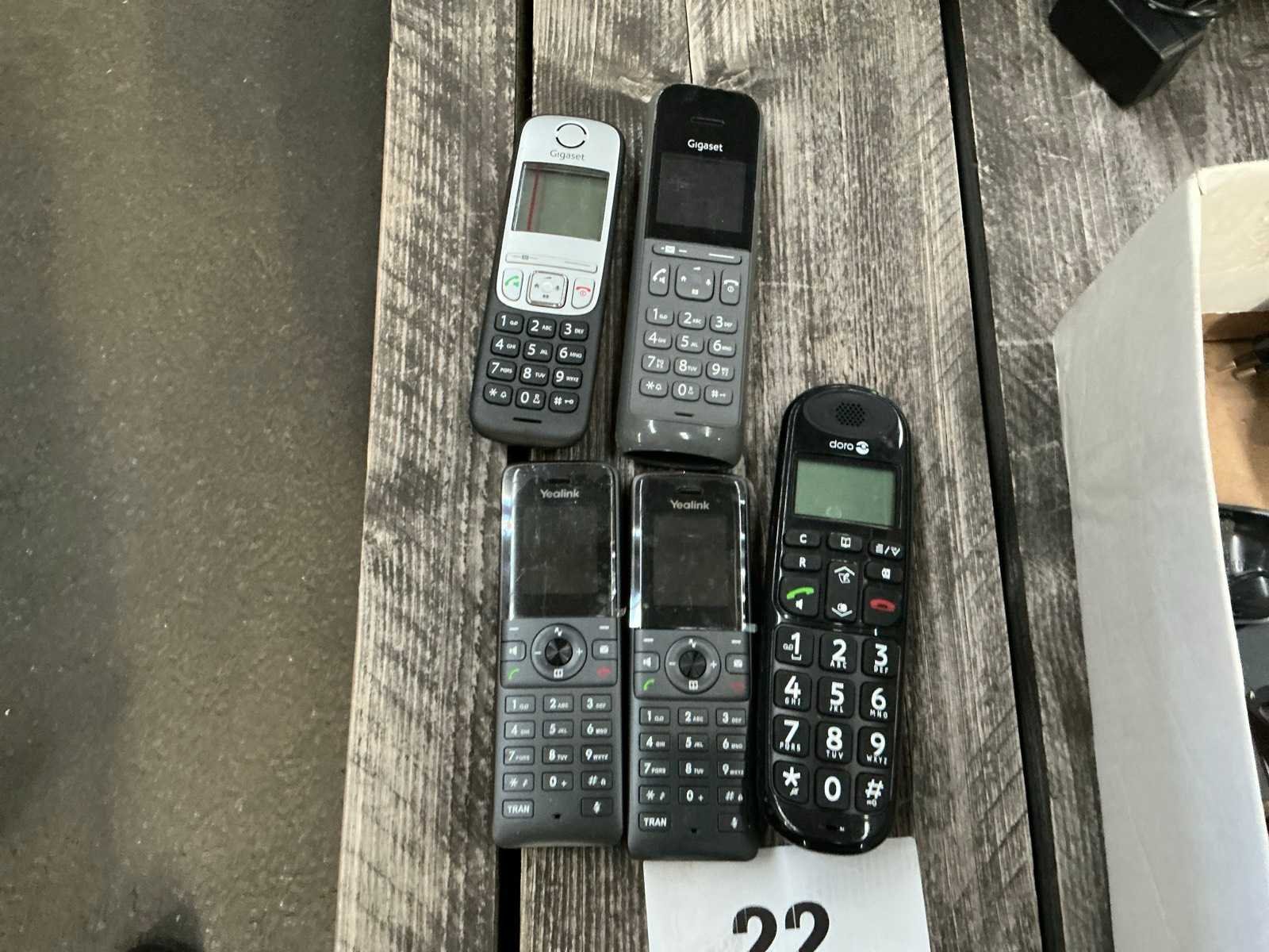 Bestaande uit 5x telefoon waaronder 2x gigaset, 2x yeallink en 1x doro, compleet partij diverse lader en kabels