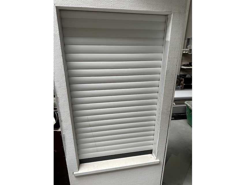 Toonzaal raam met doorsnede hoe een elektrisch bediend rolluik geplaatst word Breedte: 2500cm