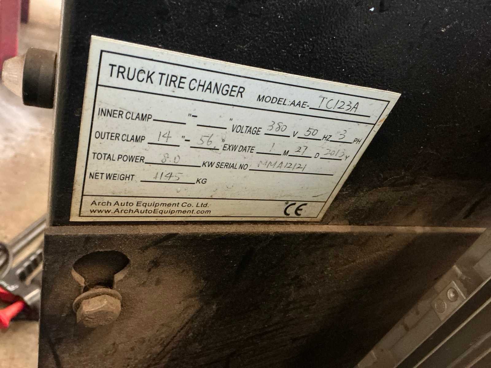 Merk: Arch Auto Equipment Type: AAE-TC123 Capaciteit.: 56'' Aansluiting: 400V Eigen gewicht: 1145kg Totale afmeting L: 2800mm Totale afmeting Breedte: 2050mm Totale afmeting Hoogte: 1460mm