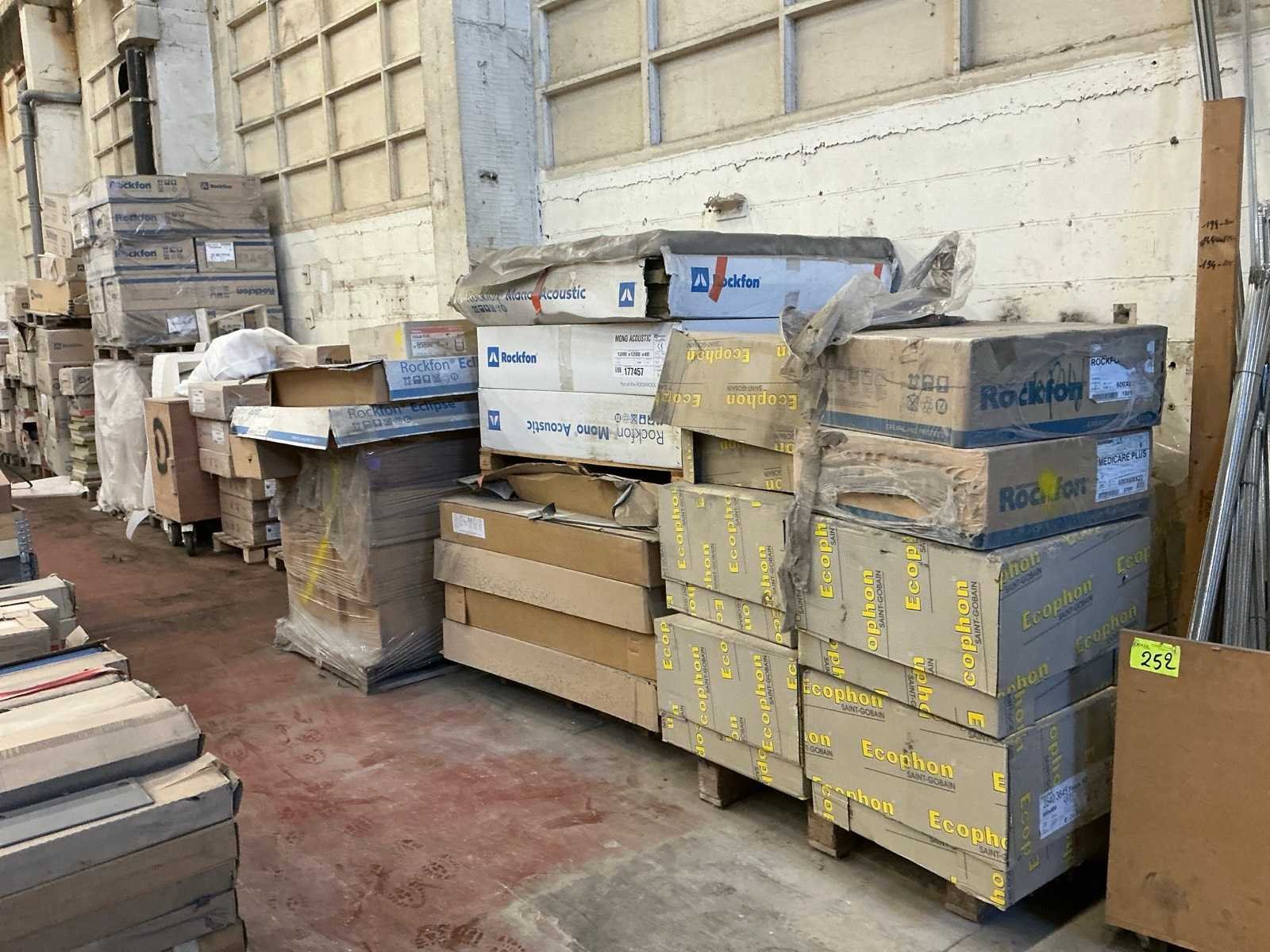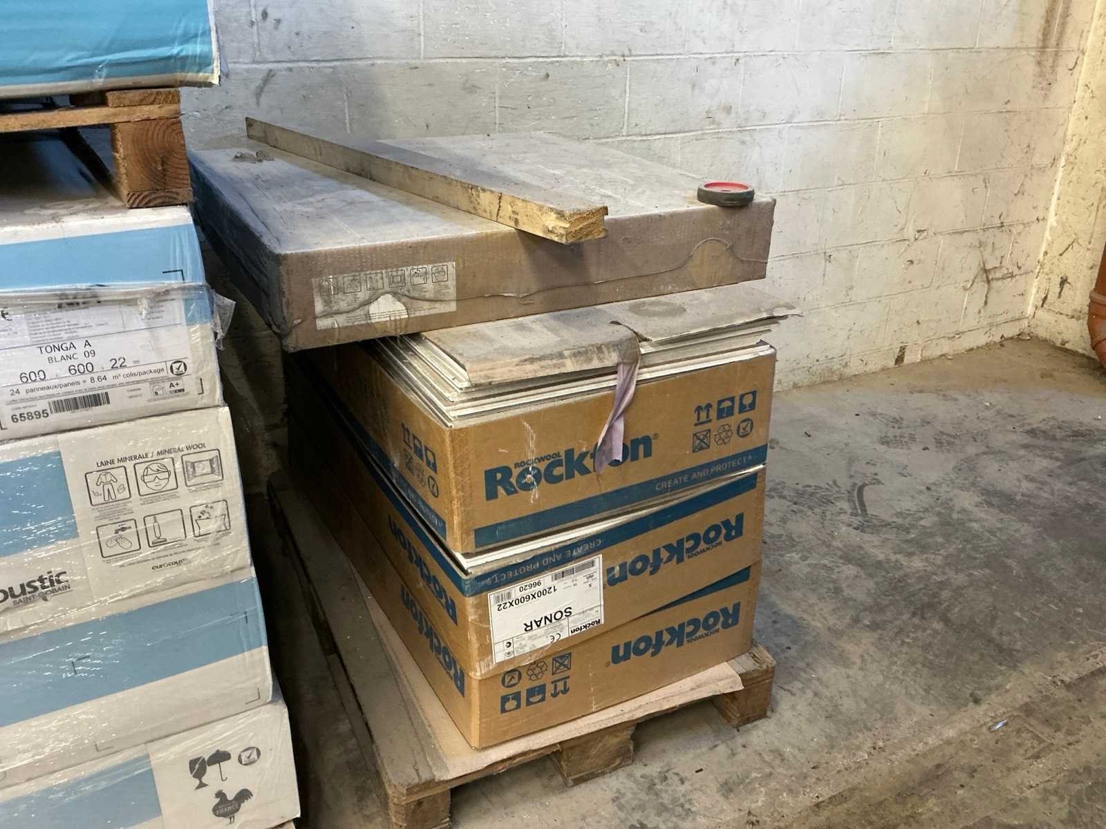 Waaronder Rockfon, Ecophon en Knaugisolation. Waaronder Rockfon Blanka, Rockfon Medicare Plus, Rockfon Mono Acoustic,… Liggende op 18 palletten.