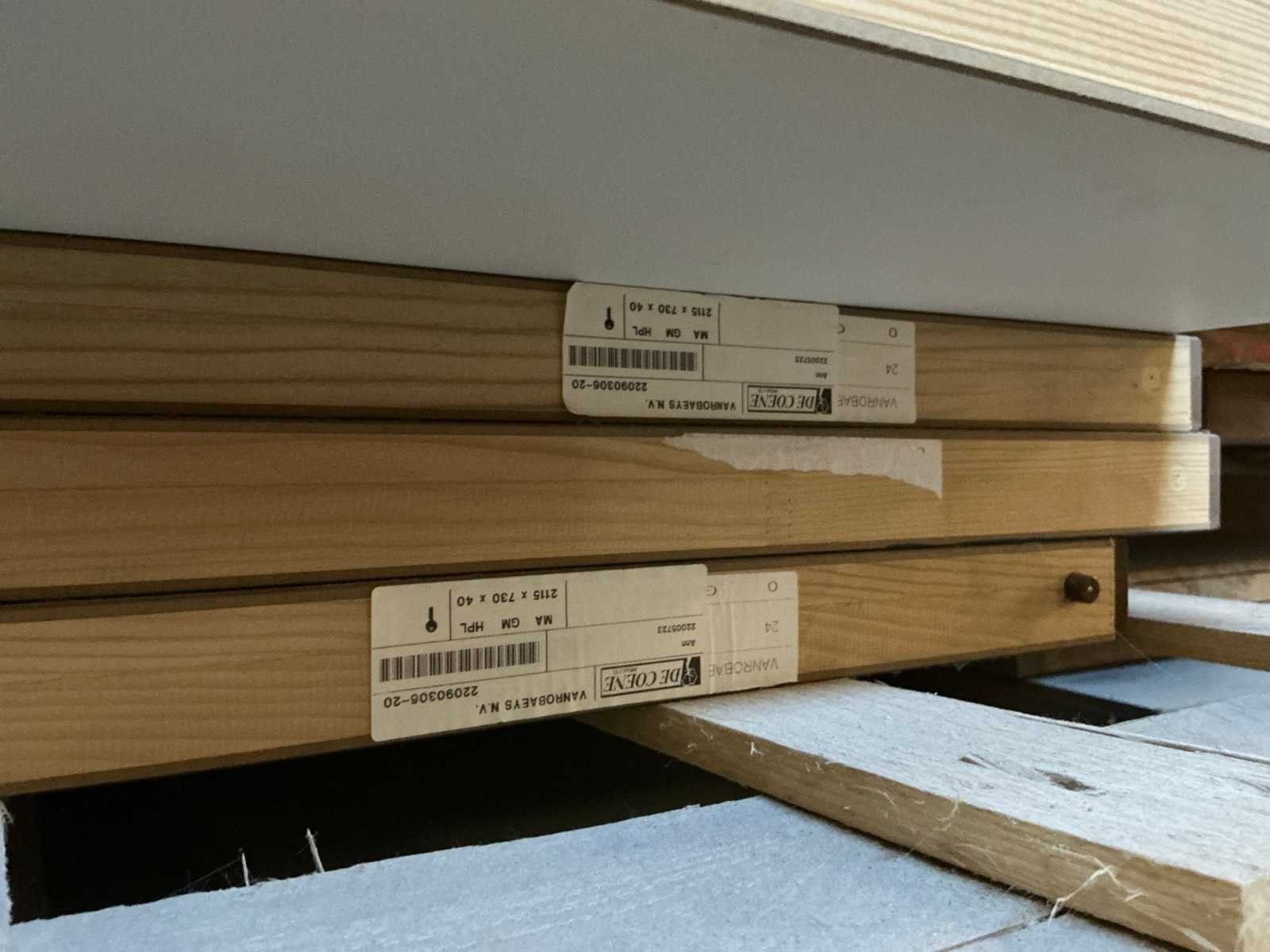 Waaronder met afmetingen ca. 211 x 83 x 4cm, 211 x 86 x 4cm, 211 x 78 x 4cm, 211 x 73 x 4cm,… Liggende op 3 stapels.