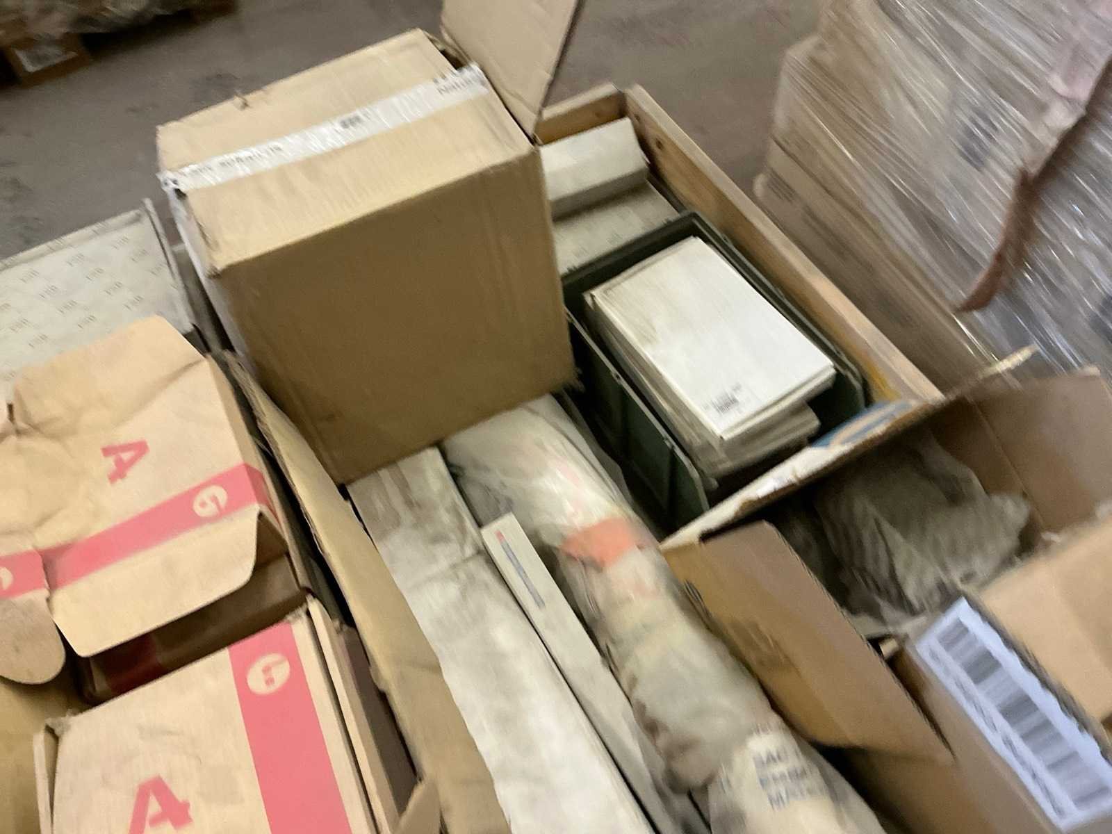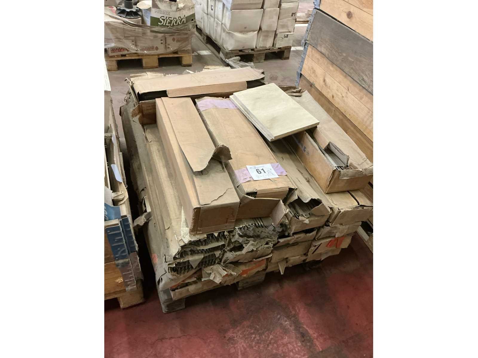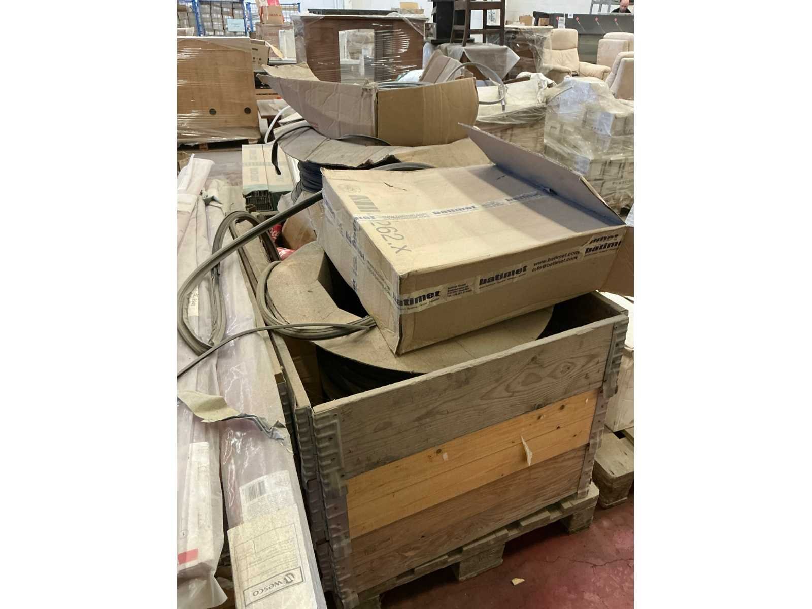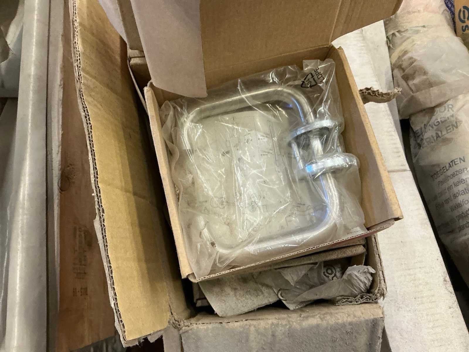 Waaronder diverse gyproc-toebehoren, diverse deurklinken, diverse deur-toebehoren, diverse rubbers, partij tegels 20 x 20cm, diverse alu profielen,… Waaronder merken zoals Rako, Quick Lock, Batimet, Hoppe, Tonic Line, Artimec,… Liggende op 12x pallet.