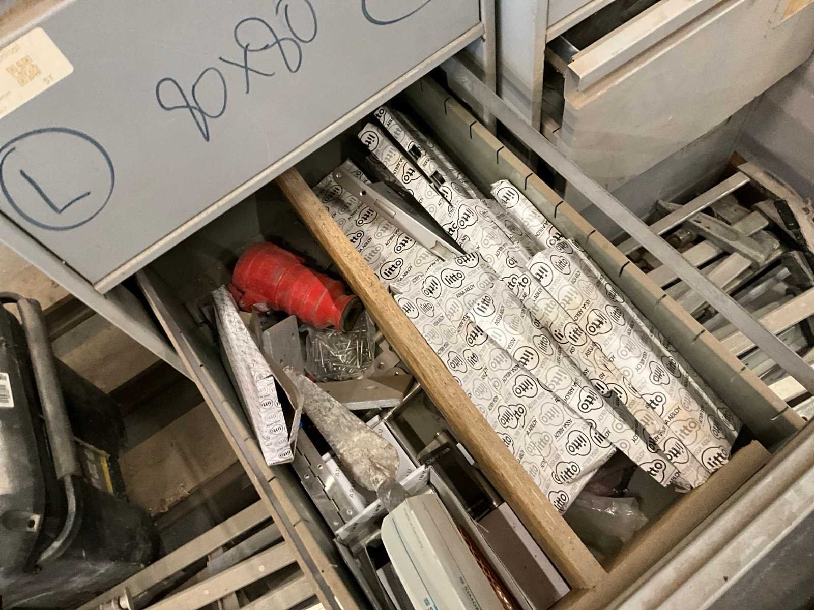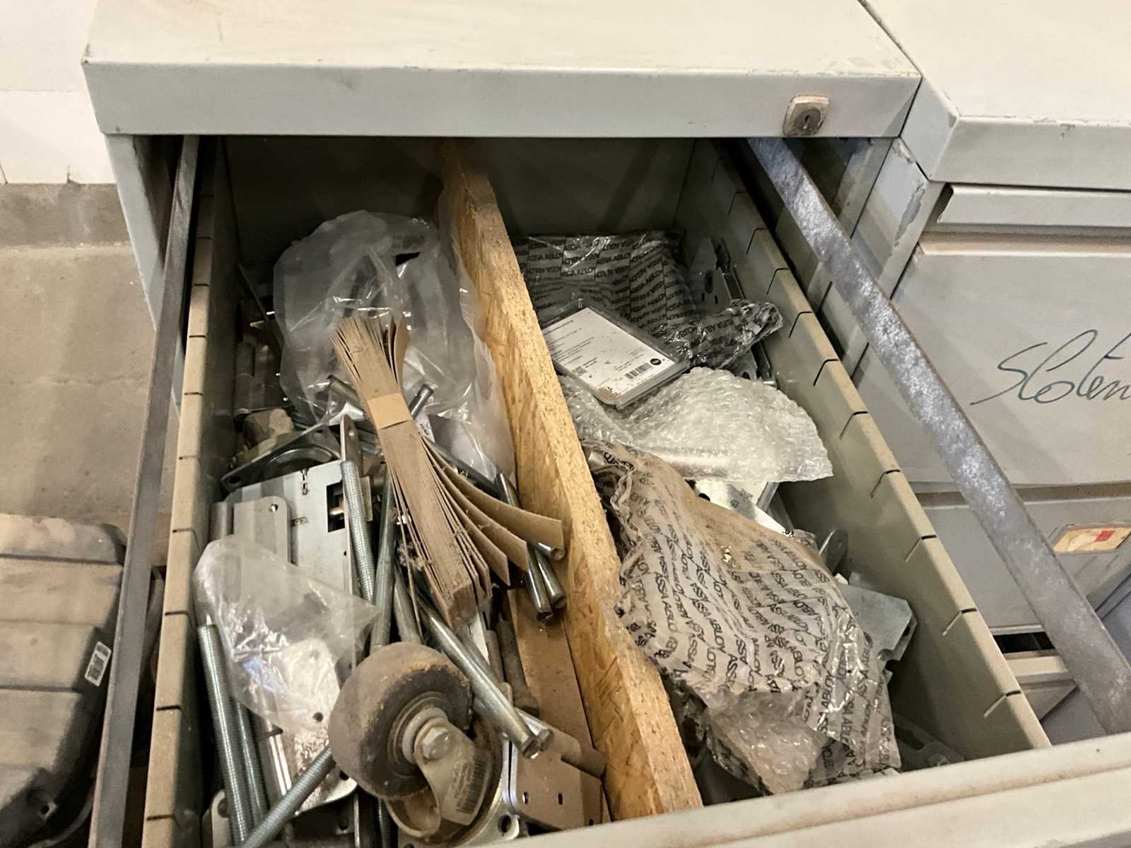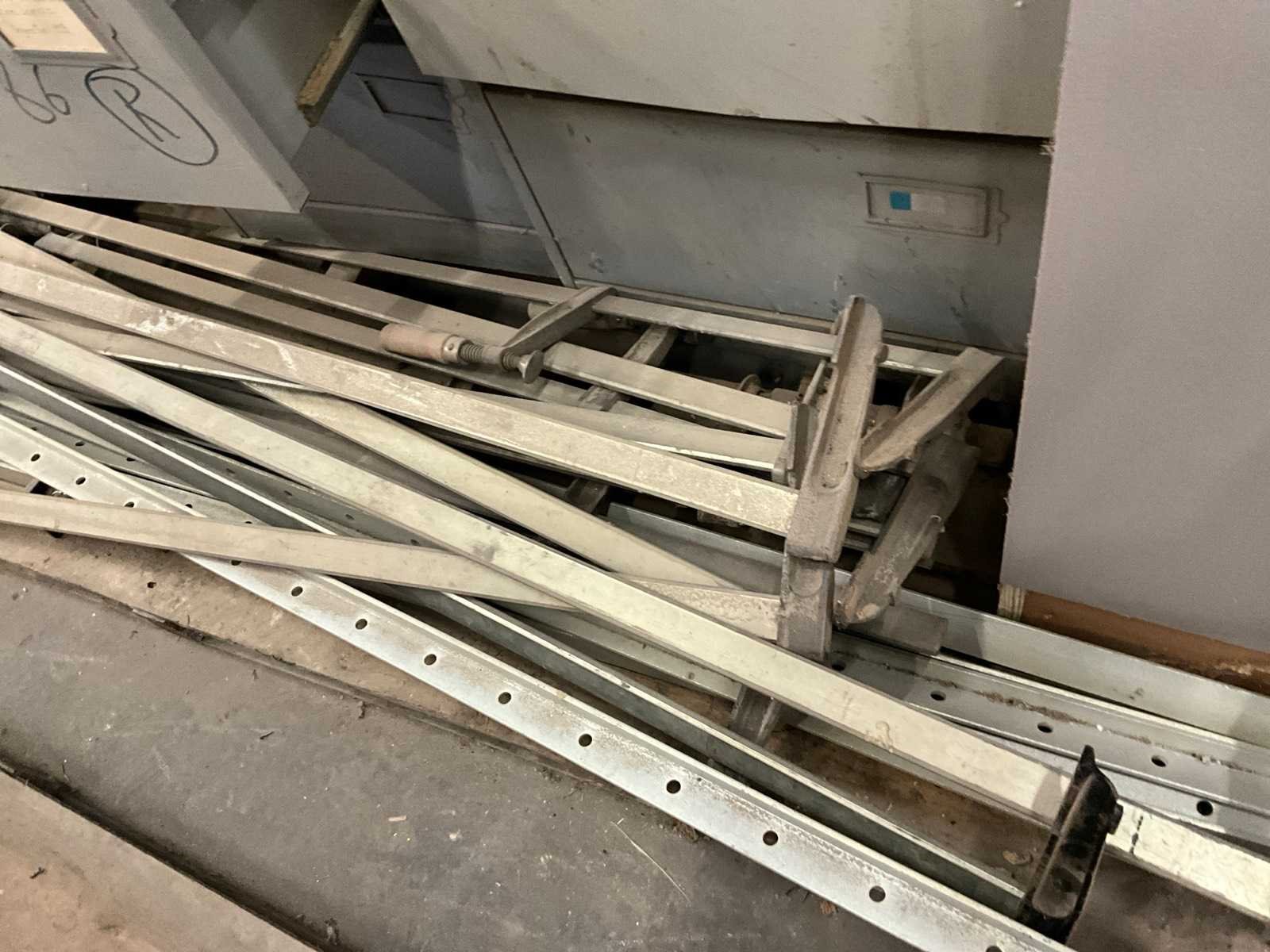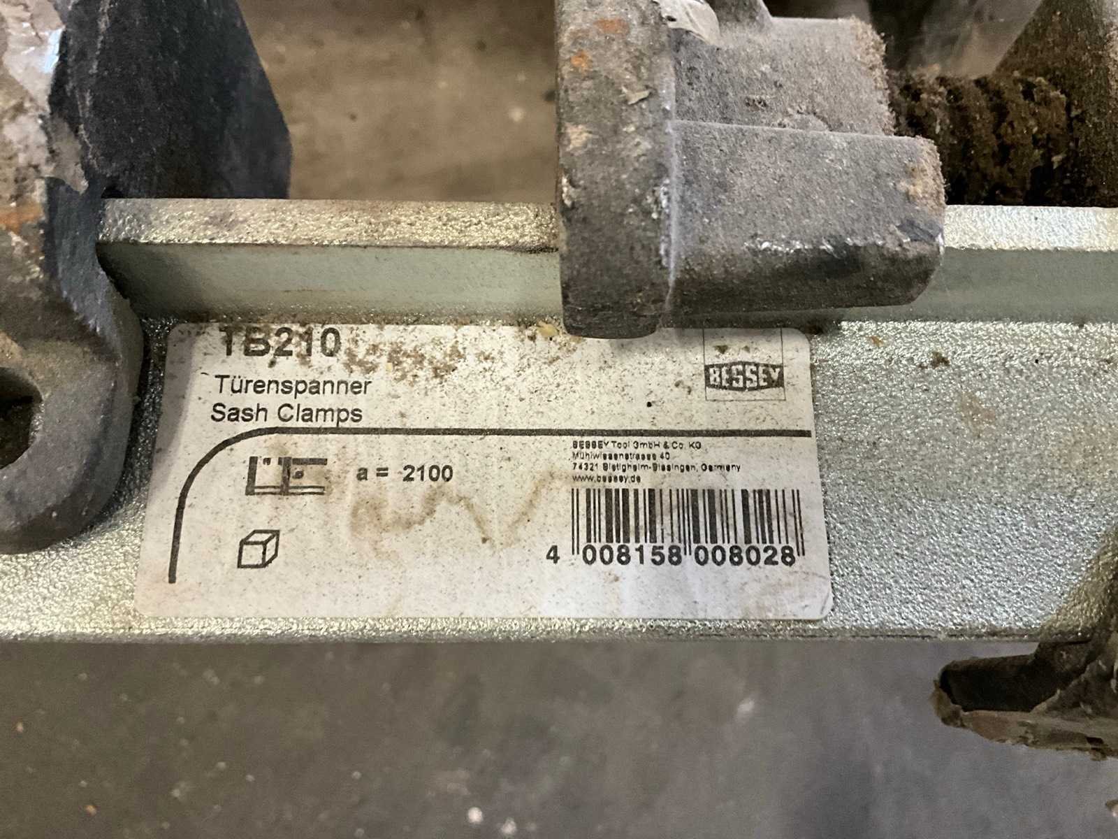 11 diverse lijmklemmen, waaronder Bessey. Compleet met gereedschapskoffer en 3 diverse werkkasten met inhoud