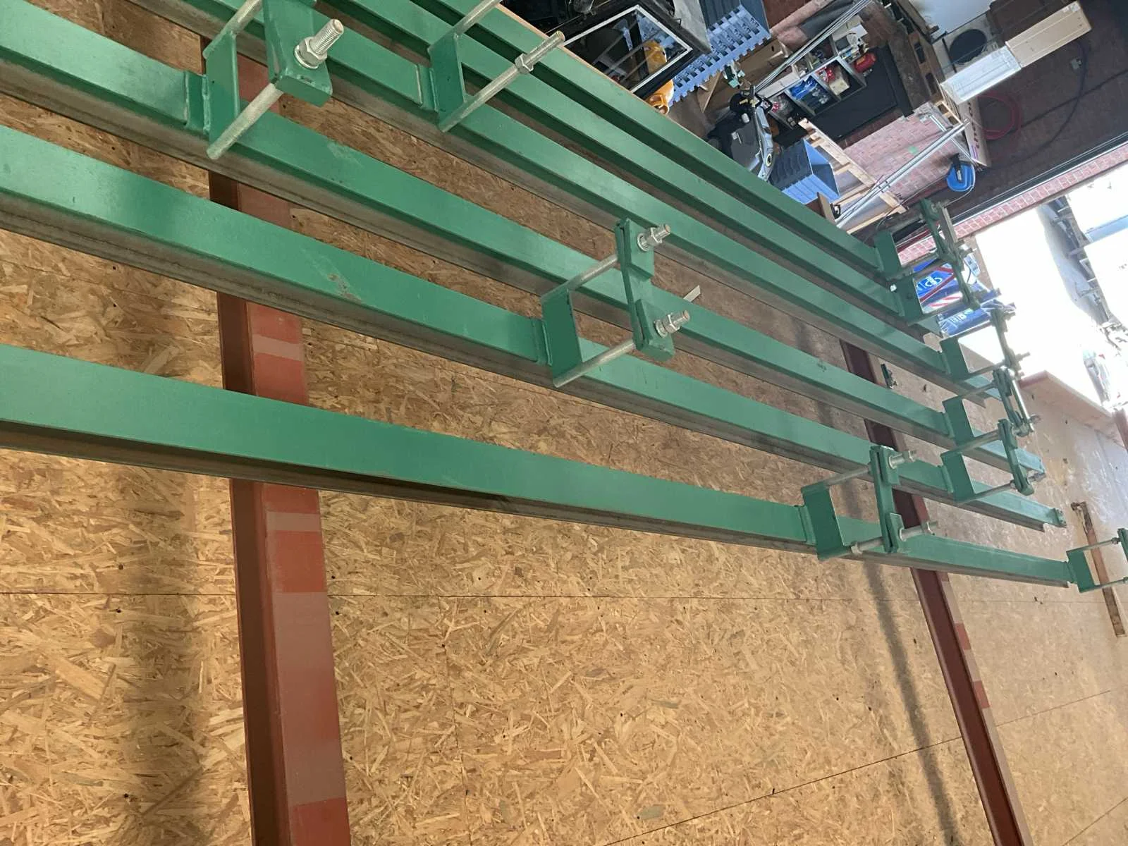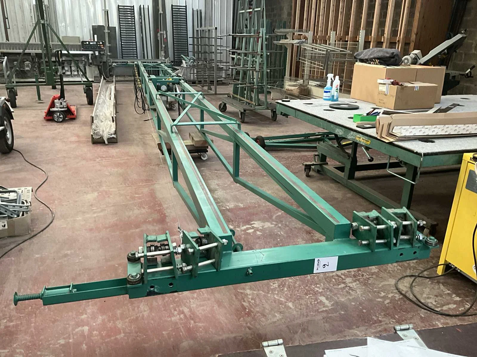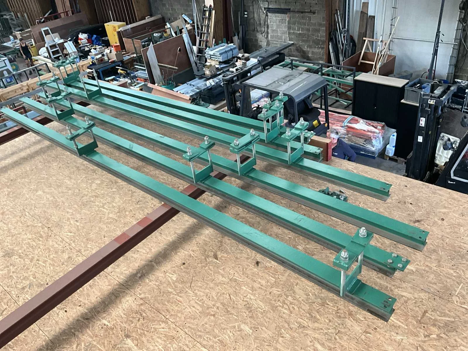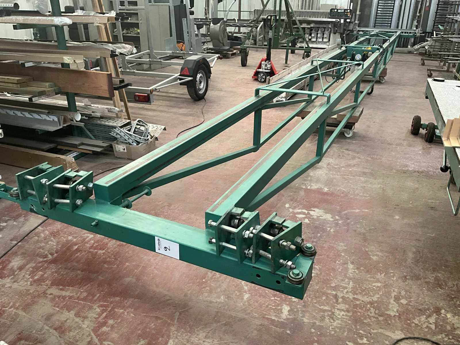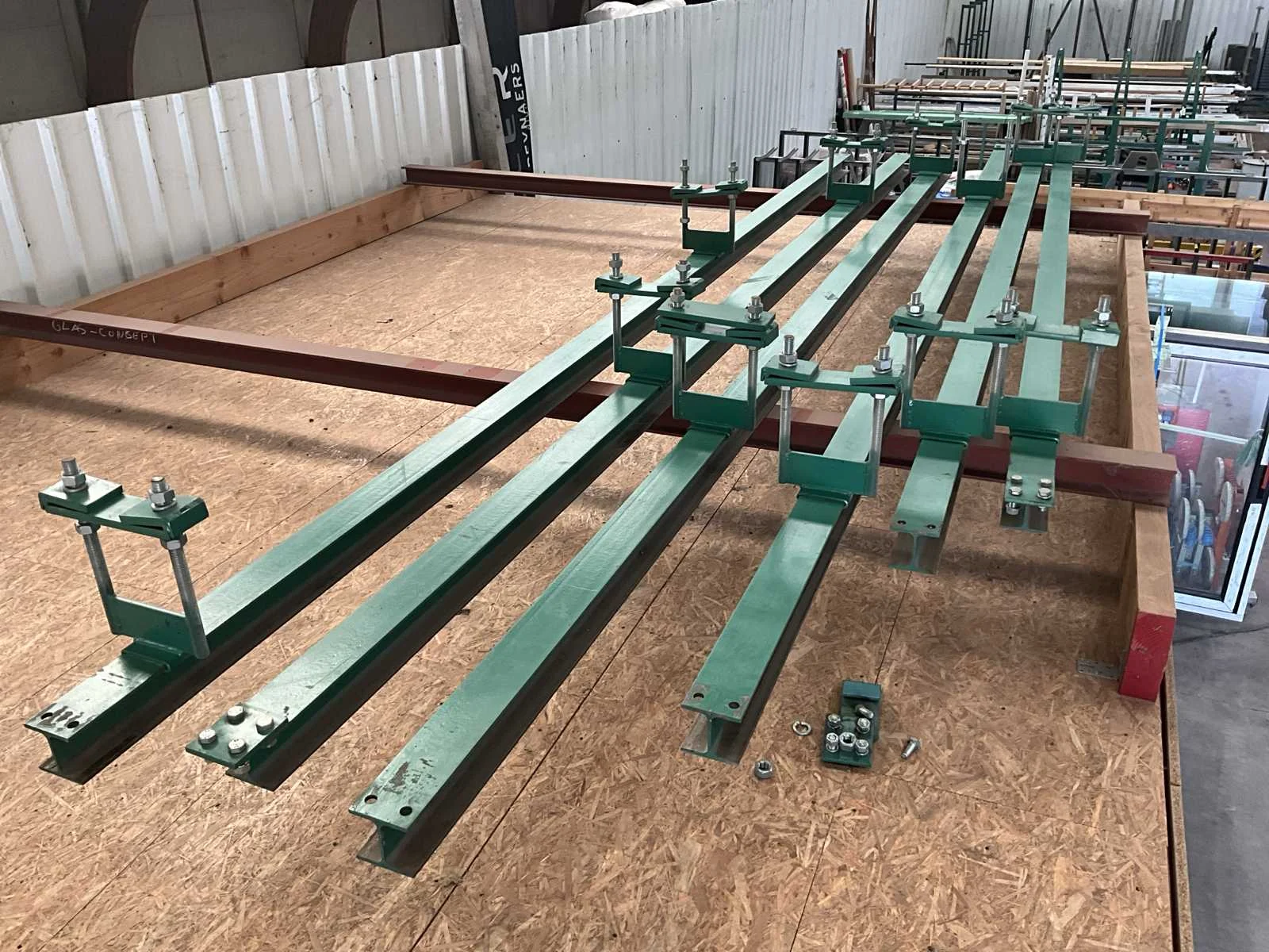 Bestaand uit 6x profielen met totaal lengte circa 30 lopende meter hang profiel met geleiders, Abus hijslier met peerbediening, 400v aansluiting Merk: Muyen Type: VA200 Bouwjaar: 2009 Serienummer: 4055-02 Overspanning: 11m Hijsvermogen: 250kg Dubbelligger: true Totale afmeting Lengte: 11200mm Totale afmeting Breedte: 1400mm Totale afmeting Hoogte: 600mm