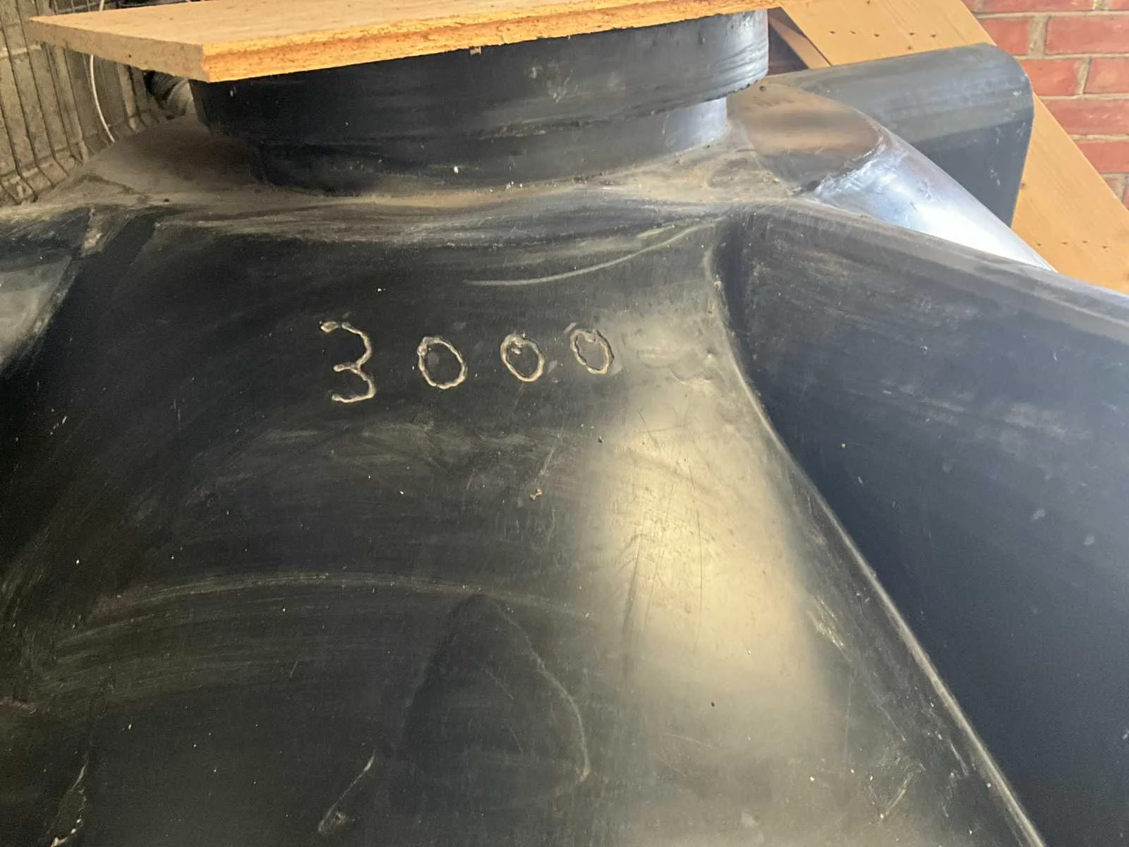 Bestaand uit ronde vorm watertank met mangat +2x aansleuting 110mm, geledigd Capaciteit.: 3000.00l Totale afmeting Lengte: 1650mm Totale afmeting Hoogte: 1900mm