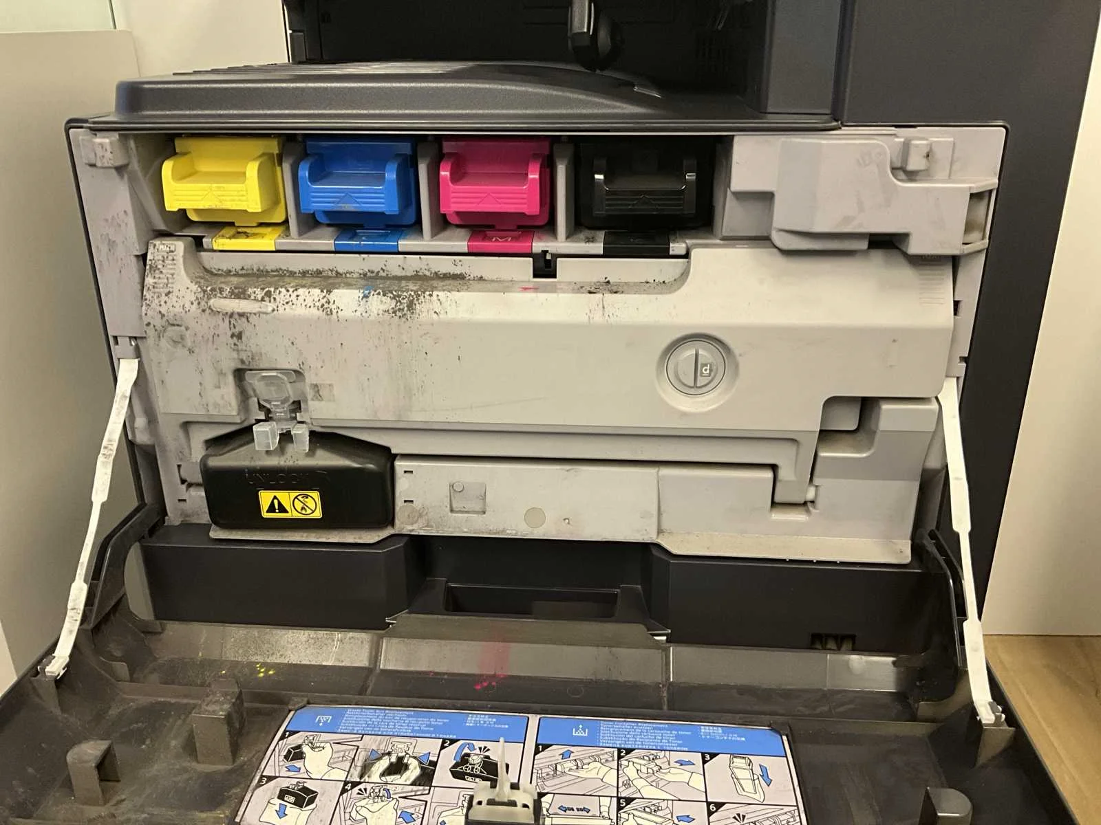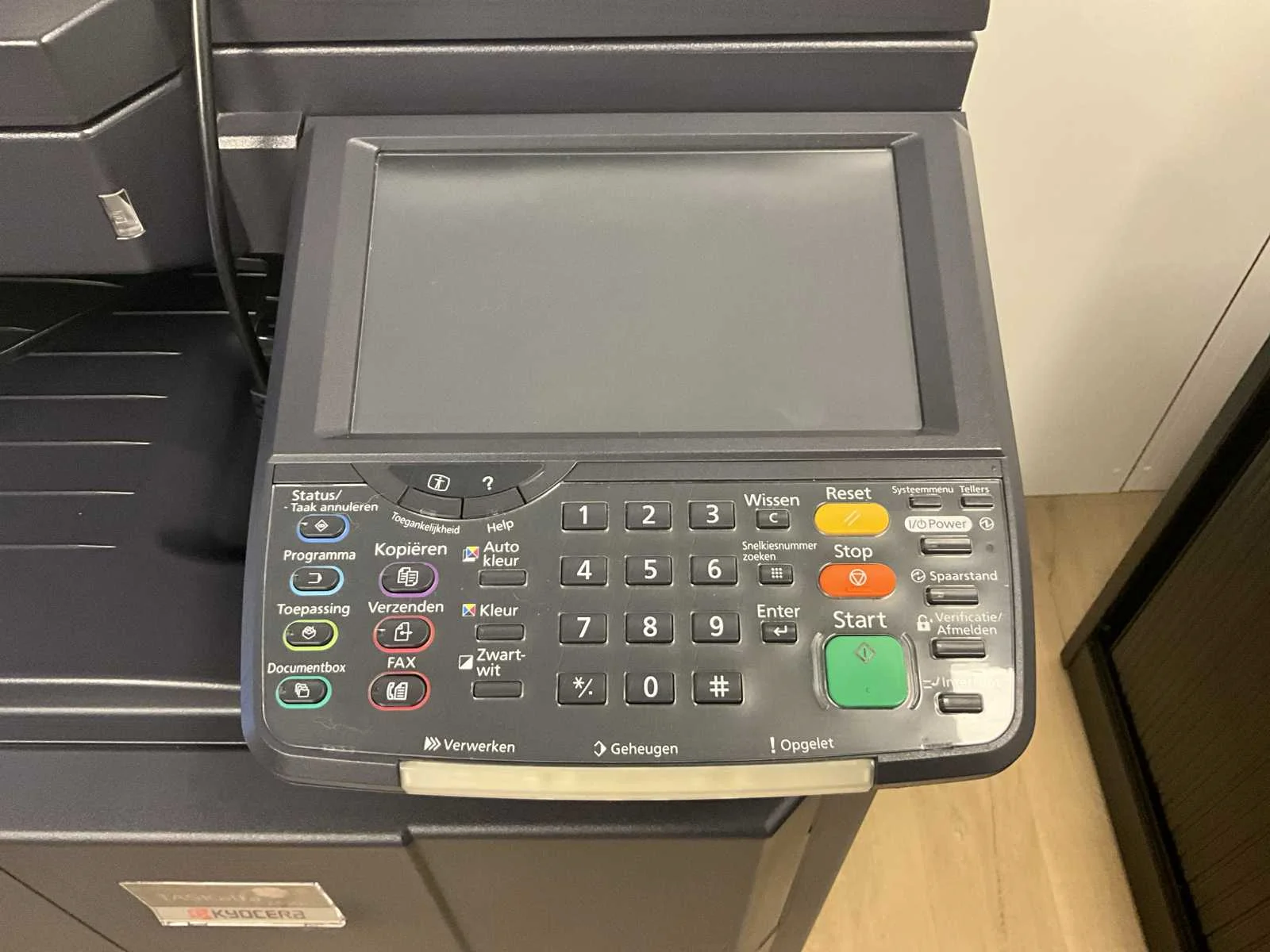 Voorzien van 2 papierlades, digitaal scherm na te zien, zonder verdere gegevens Merk: Kyocera Type: Taskalfa 2550ci Dubbelzijdig printen: true Digitale besturing: true Aansluiting: 230V
