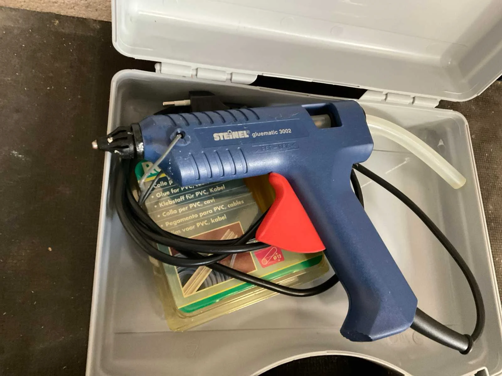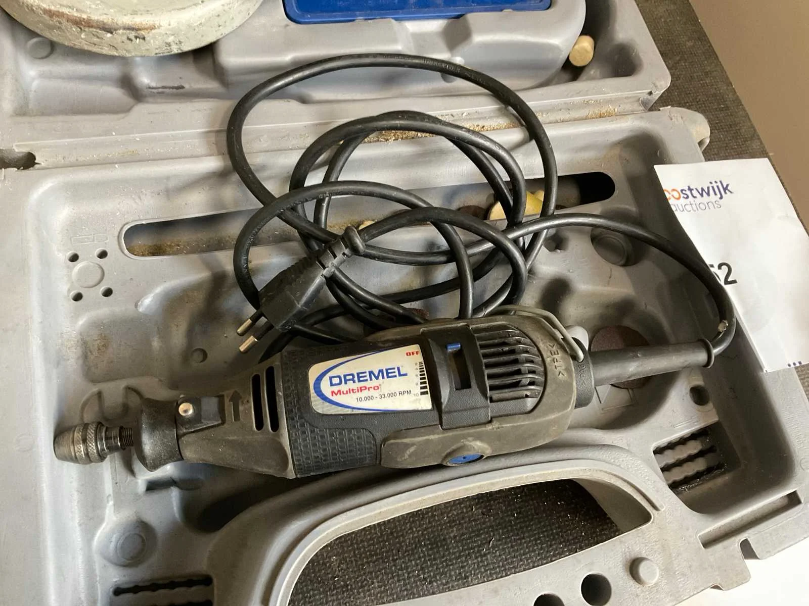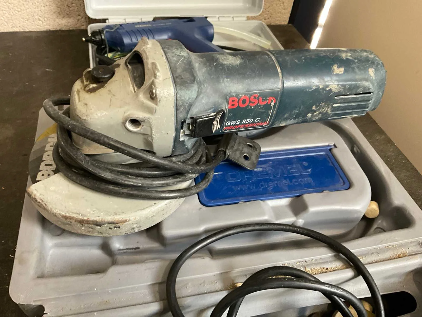 Zijnde Bosch haakse slijper, Dremel multitool en Steinel lijmpistool.