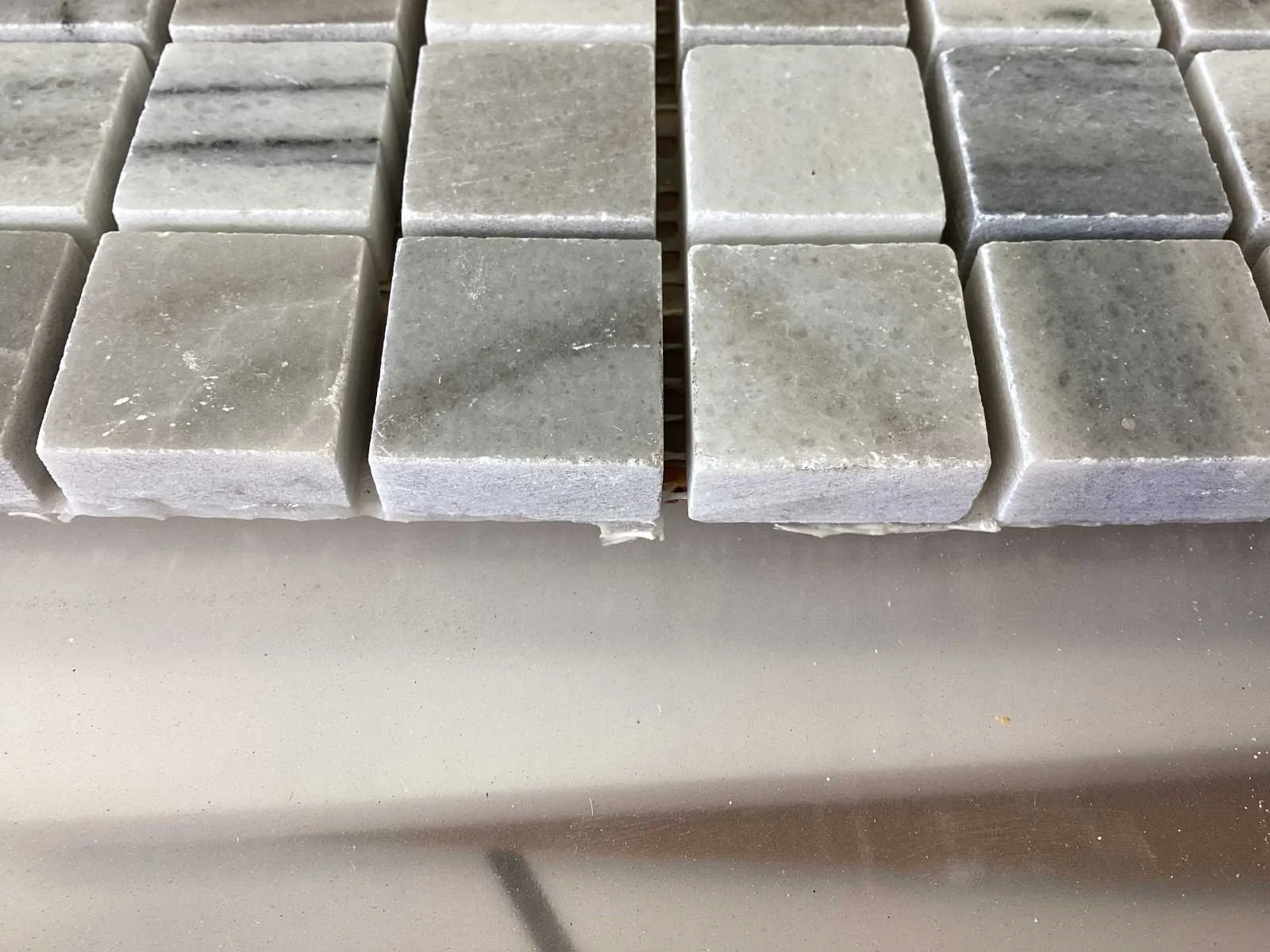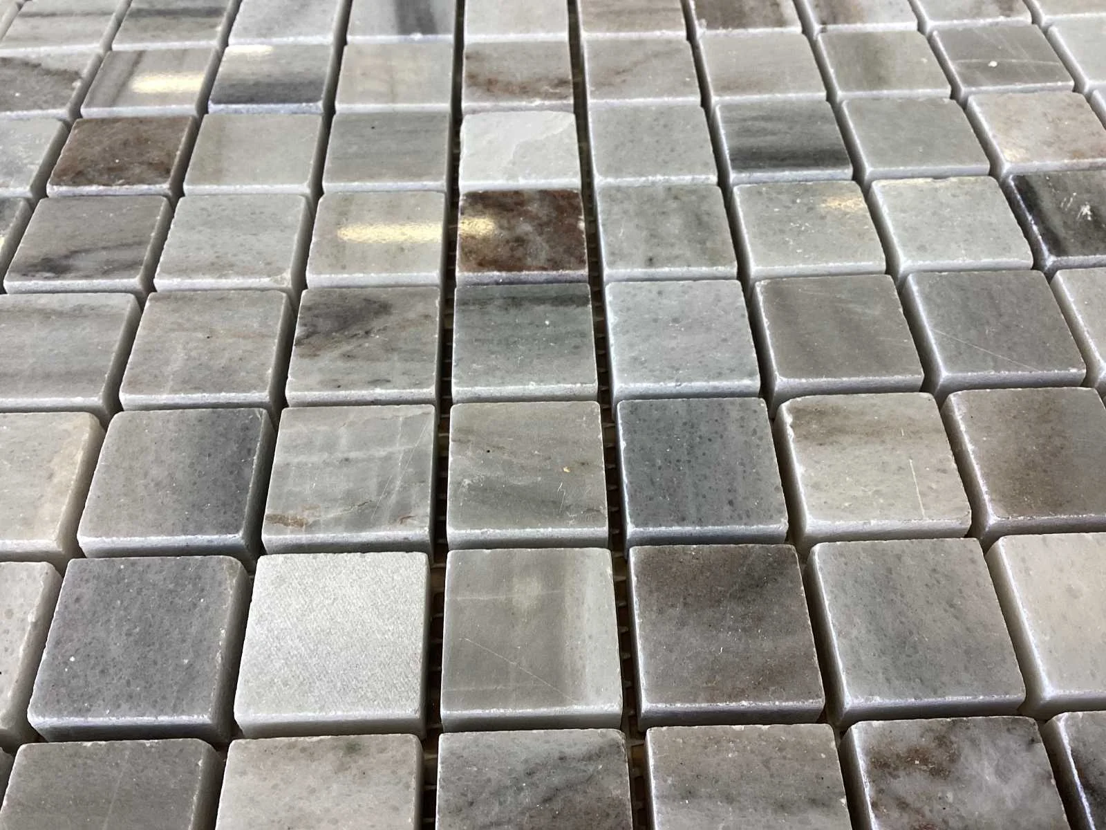 Merk: Natuursteen Kleur: Grijs/Wit Mix Afwerking: Mat Getrommeld Lengte: 30,5cm Breedte: 30,5cm Materiaal: Marmer Dikte: 10mm Type: Mozaïektegel Model: Vierkant 2x2 cm Aantal m² per verpakking: 1m² Aantal pakken: 42 Totaal oppervlakte: 41,86m² Totaal gewicht: 1100g