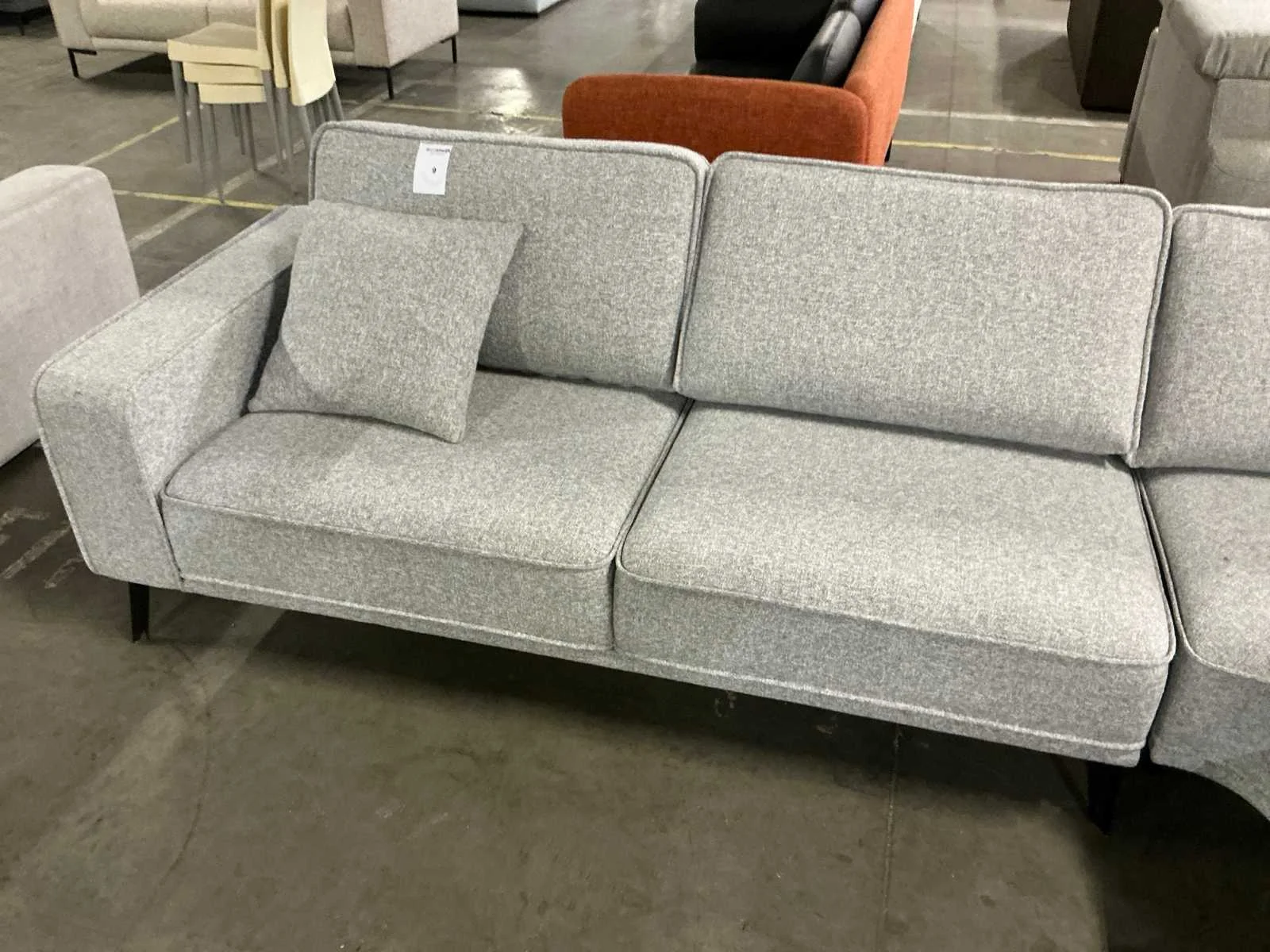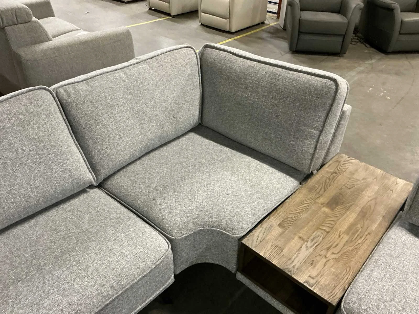 Toonzaalmodel; Deze stijlvolle hoekbank biedt voldoende zitruimte voor het hele gezin. De stevige kussens zorgen voor optimaal comfort, en het ingebouwde tablet is een handig accessoire voor drankjes, boeken of je laptop. Dankzij de neutrale kleur is de bank veelzijdig en eenvoudig te combineren met elk interieur. Merk: Belform Lengte: 290cm Breedte: 300cm Hoogte: 85cm Materiaal: gestoffeerd