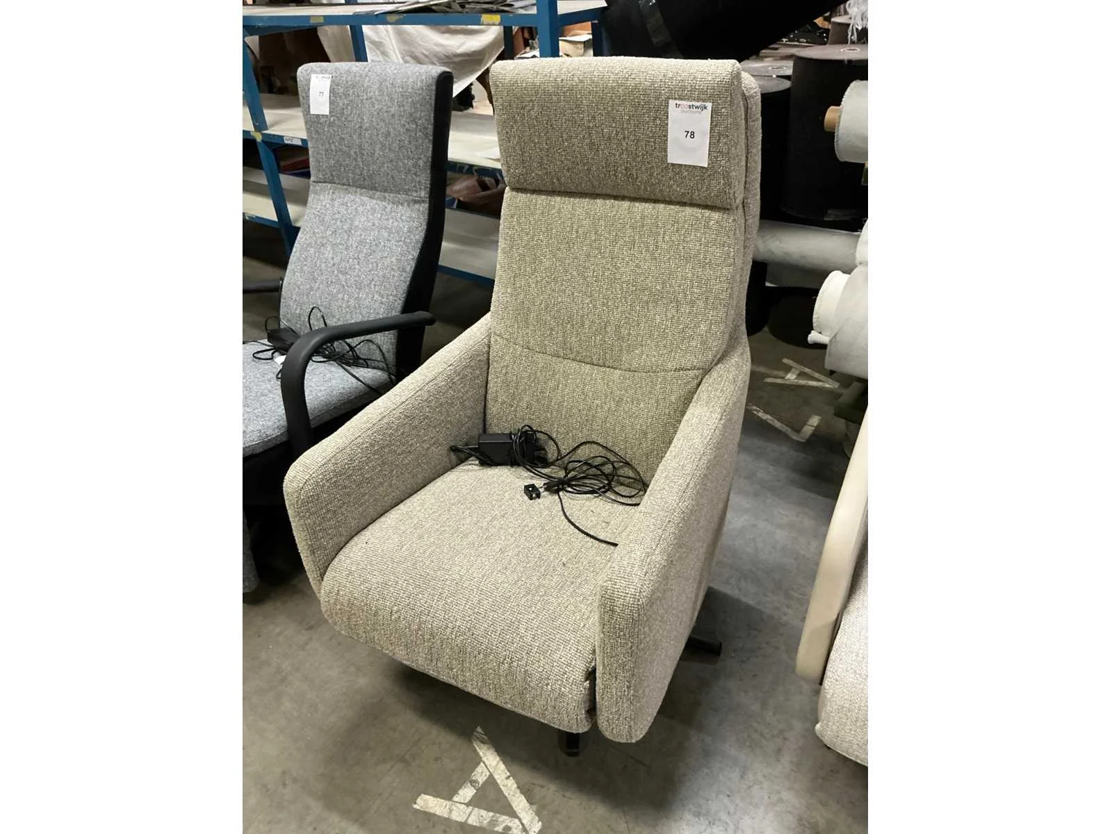 Merk: Recor Seating Lengte: 78cm Breedte: 67cm Hoogte: 115cm Zithoogte: 50cm Materiaal: gestoffeerd