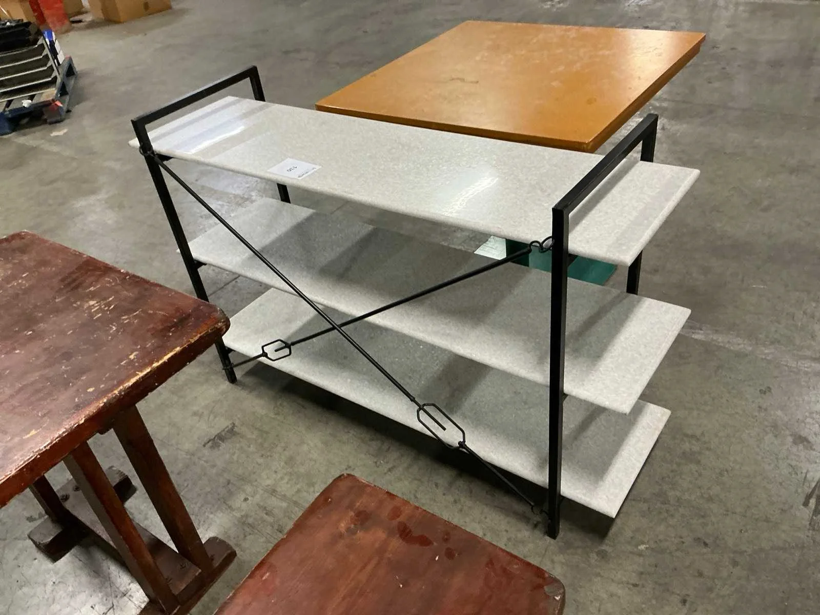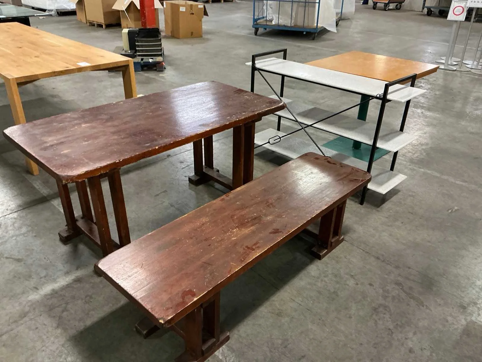 Tafel met zitbank 149x73xH70cm , rekje 40x130xH85cm met marmeren legborden en tafeltje 80x80xH75cm