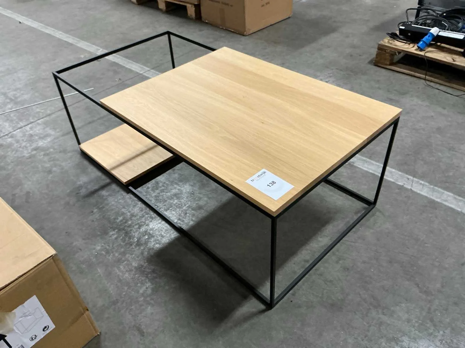 Lengte: 60cm Breedte: 120cm Hoogte: 42cm Materiaal: metaal met houten bladen