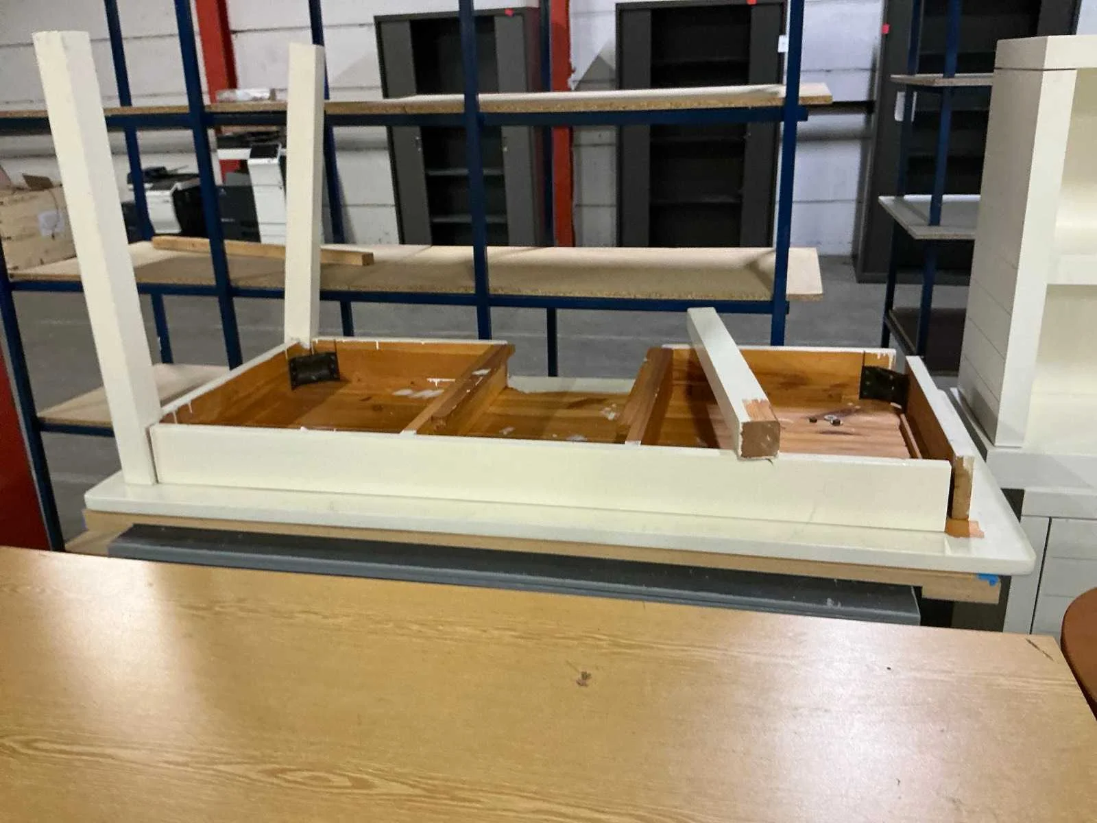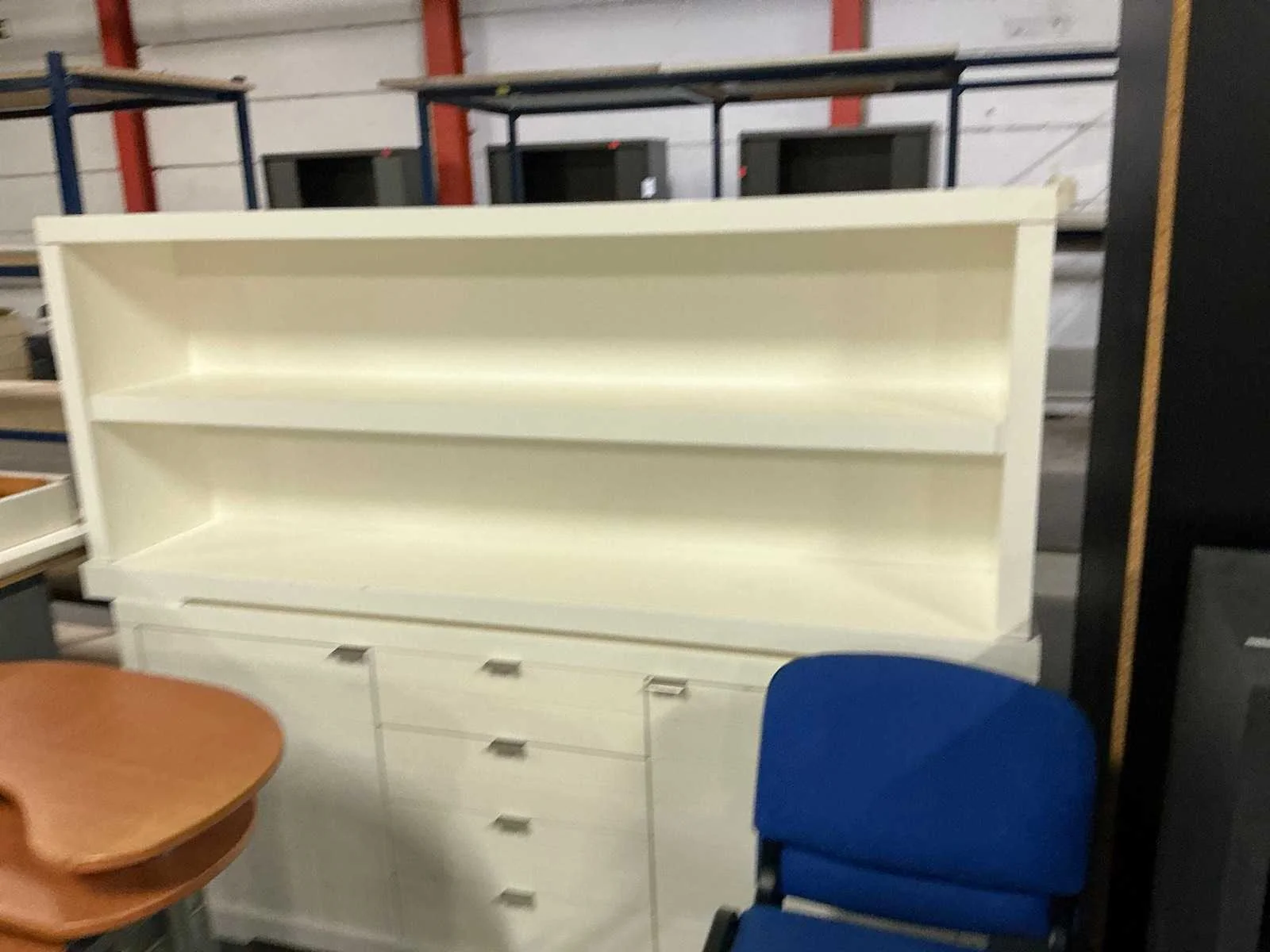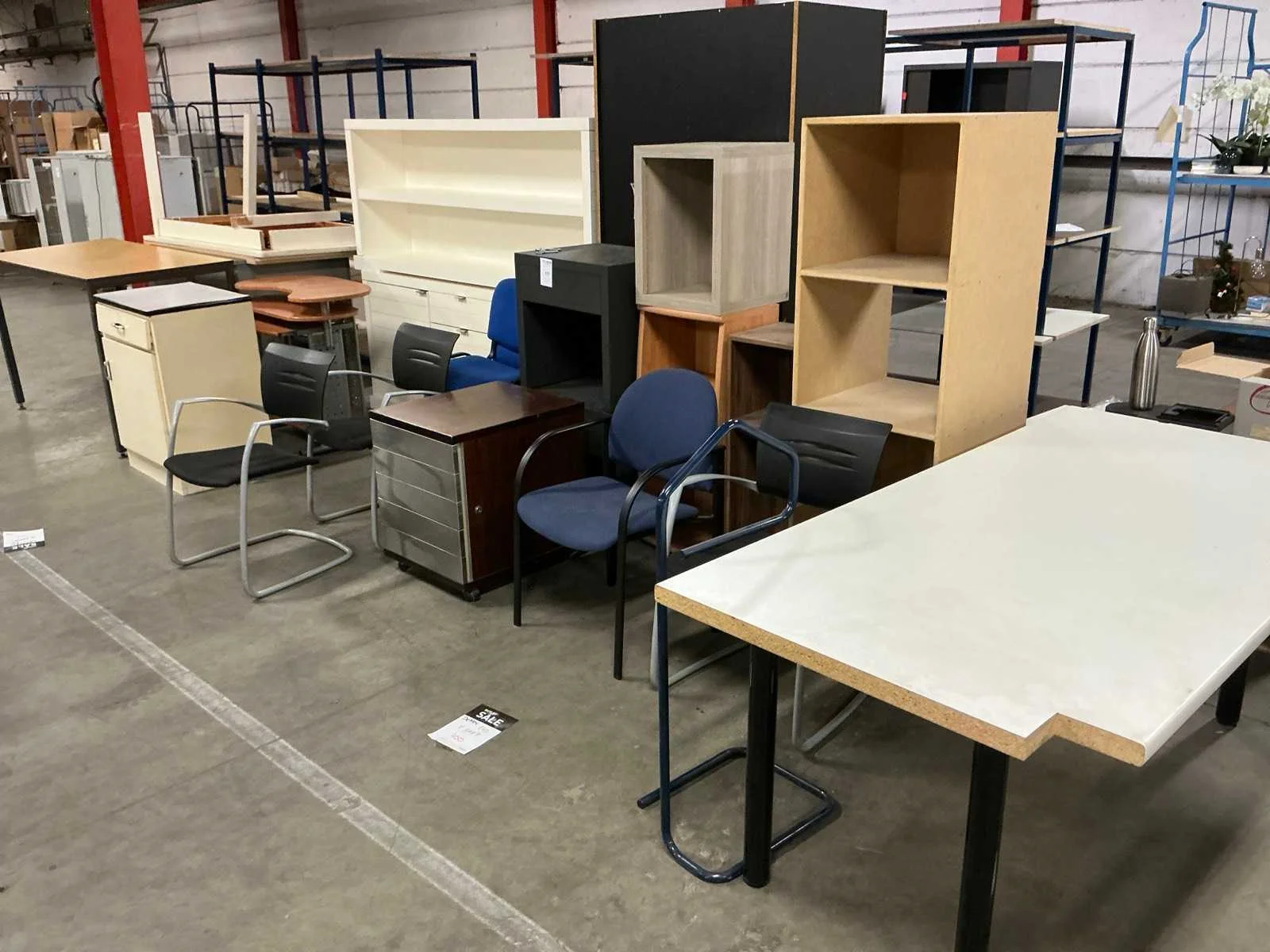 Bezoekersstoelen, computertafel, dressoirs, open kastjes, ladeblok, tafels… koper dient alles mee te nemen