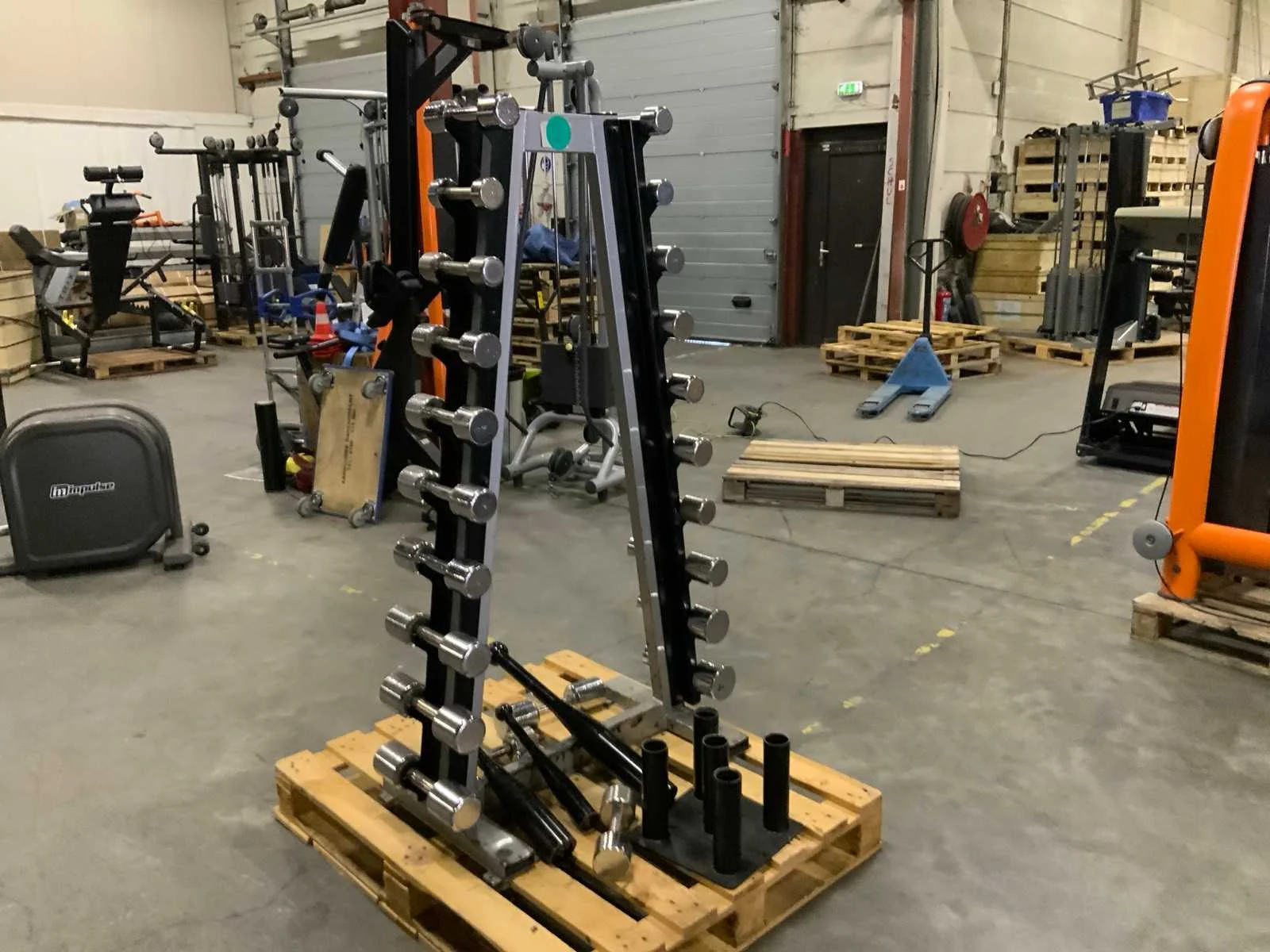 Diversen dumbell toren met extra accessoires krachtstation