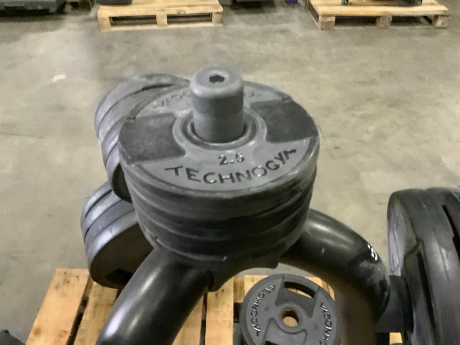 Met rek Merk: technogym Model: schijven pu 50mm Product type: 8x20;9x10;9x5kg;4x2,5kg