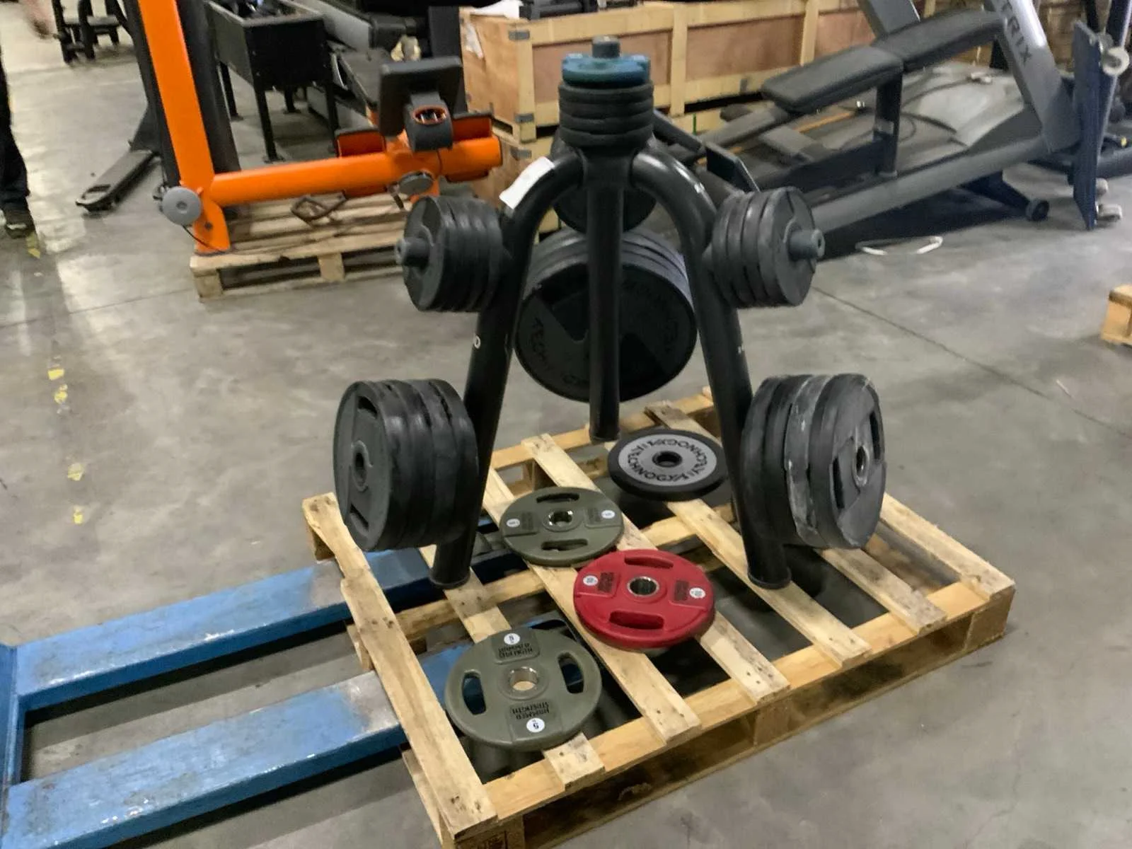 Met rek Merk: technogym Model: schijven pu 50mm Product type: 4x20;4x10;9x5;8x2,5;4x1,25kg