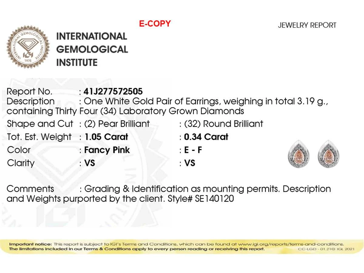 Number Of Items-1, Metal-Gold, Total Gross Weight- 3.19, Set With: Lab Grown Diamonds, Number Of Diamonds : 34, Total Carat Weight: 1.39, Diamonds Clarity: VS, Diamonds Shape/Cut : Pear Brilliant / Round Brilliant, Diamonds Colour: EF/ Fancy Pink, Condition : New, 1.3CMx1.5CM, Gold Purity Hallmark On The Item Of Jewellery, Design Code : SE140120, Packaging : Jewellery Box with Certificate card, Historical Retail Price: €2299. Gold is at all time record highs. This production is new or unused jewellery. However it was made in a lower gold price then today and we do not increase the prices - retail recommended prices or estimated prices are based on HISTORIAL gold prices. It means the gold is discounted if you reflect todays cost . All our lots are shipped in Fedex boxes by high priority. You will receive a tracking code soon after you have paid for the auction lots. It is despatched in 7-14 days usually and delivery is done in 24-48 hours thereafter. The lots are insured and prepaid by the seller. Within 14 days Voornaamste diamant: Lab Grown Diamonds Kleur diamant: EF/ Fancy Pink Gewicht diamant: 1.39ct Zuiverheidsgraad diamant: VS Kleur: White Gewicht: 3.19g Materiaal: Gold
