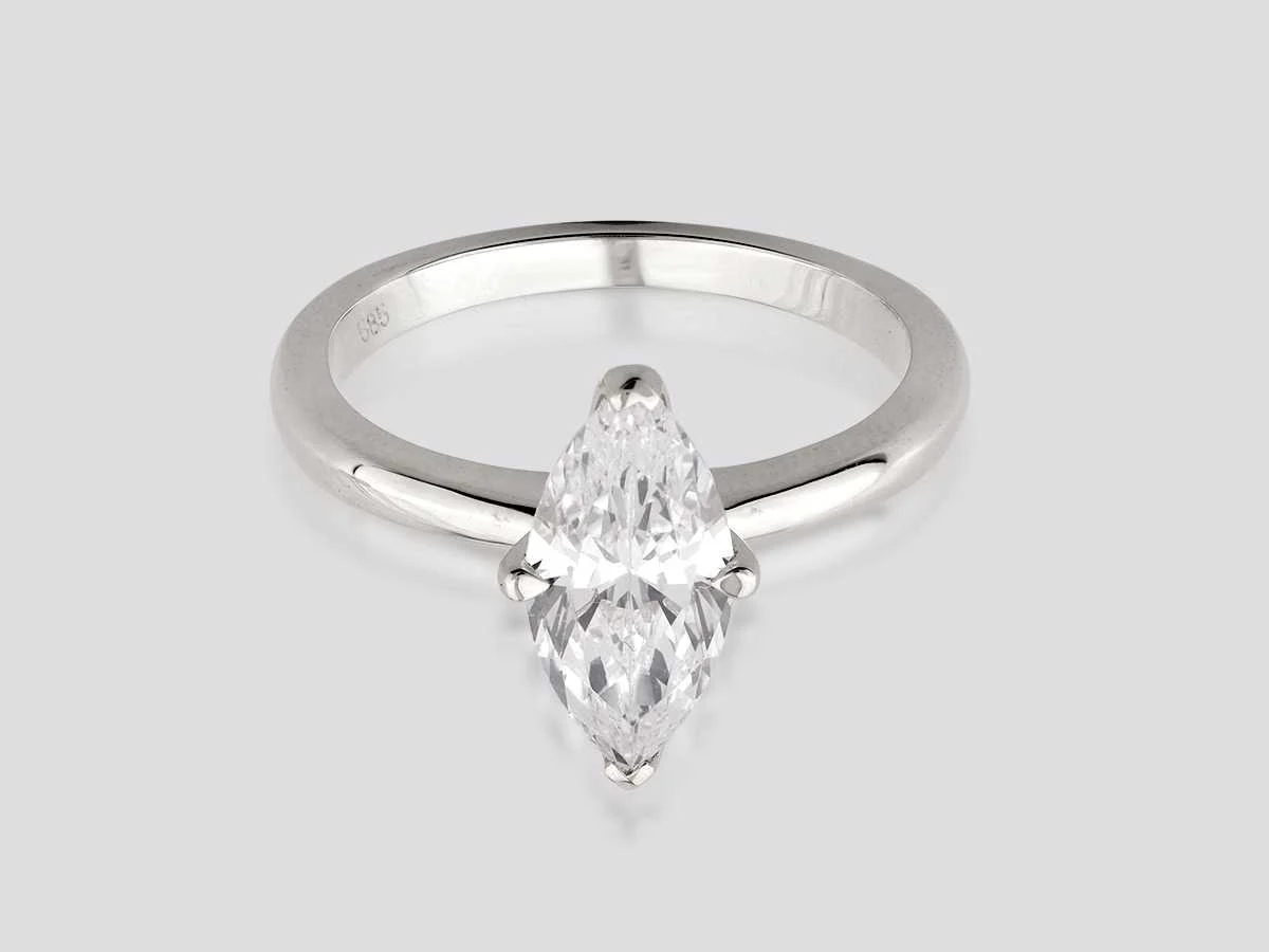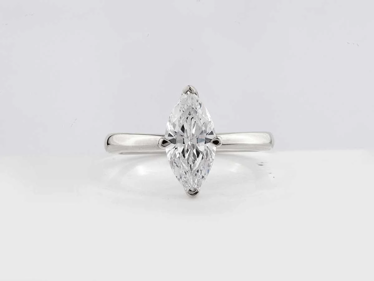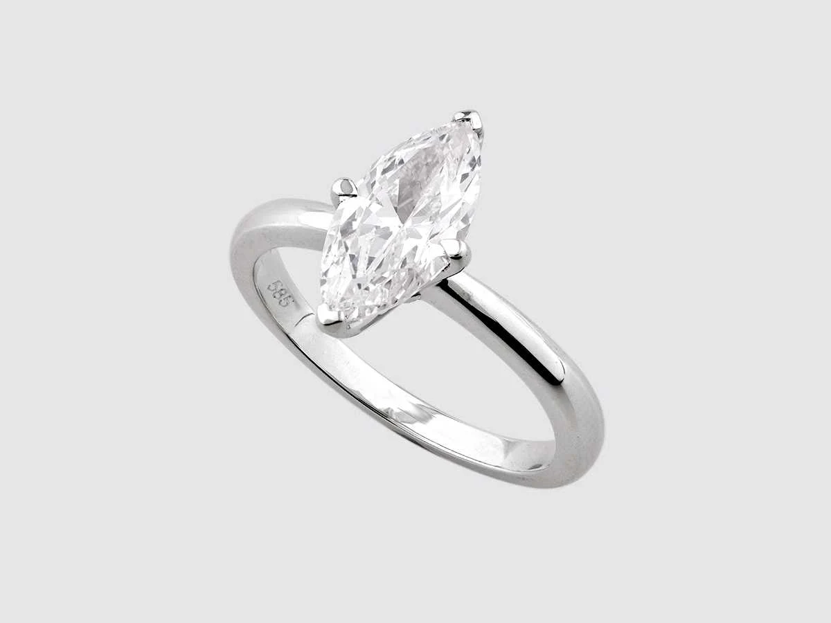 Number Of Items-1, Metal-Gold, Total Gross Weight- 3.72, Set With: Lab Grown Diamonds, Number Of Diamonds : 1, Total Carat Weight: 2.01, Diamonds Clarity: VS2, Diamonds Shape/Cut : Marquise Brilliant Cut, Diamonds Colour: E, Condition : New, EU-54, US-7, UK-N½ (Diameter-17.2mm), Gold Purity Hallmark On The Item Of Jewellery, Design Code : SR007621, Packaging : Jewellery Box with Certificate card, Historical Retail Price: €6495.Gold is at all time record highs. This production is new or unused jewellery. However it was made in a lower gold price then today and we do not increase the prices - retail recommended prices or estimated prices are based on HISTORIAL gold prices. It means the gold is discounted if you reflect todays cost .All our lots are shipped in Fedex boxes by high priority. You will receive a tracking code soon after you have paid for the auction lots. It is despatched in 7-14 days usually and delivery is done in 24-48 hours thereafter. The lots are insured and prepaid by the seller. Within 14 days Materiaal: Gold Kleur: White Voornaamste diamant: Lab Grown Diamonds Gewicht diamant: 2.01ct Totaal gewicht: 3.72g Kleur diamant: E Zuiverheidsgraad diamant: VS2