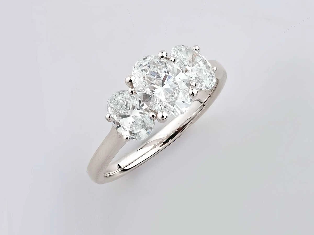 Number Of Items-1, Metal-Gold, Total Gross Weight- 3.54, Set With: Lab Grown Diamonds, Number Of Diamonds : 3, Total Carat Weight: 2, Diamonds Clarity: VS, Diamonds Shape/Cut : Oval Brilliant, Diamonds Colour: EF, Condition : New, EU-54, US-7, UK-N½ (Diameter-17.2mm), Gold Purity Hallmark On The Item Of Jewellery, Design Code : SR100521, Packaging : Jewellery Box with Certificate card, Historical Retail Price: €2997. Gold is at all time record highs. This production is new or unused jewellery. However it was made in a lower gold price then today and we do not increase the prices - retail recommended prices or estimated prices are based on HISTORIAL gold prices. It means the gold is discounted if you reflect todays cost . All our lots are shipped in Fedex boxes by high priority. You will receive a tracking code soon after you have paid for the auction lots. It is despatched in 7-14 days usually and delivery is done in 24-48 hours thereafter. The lots are insured and prepaid by the seller. Within 14 days Materiaal: Gold Kleur: White Voornaamste diamant: Lab Grown Diamonds Gewicht diamant: 2.0ct Totaal gewicht: 3.54g Kleur diamant: EF Zuiverheidsgraad diamant: VS