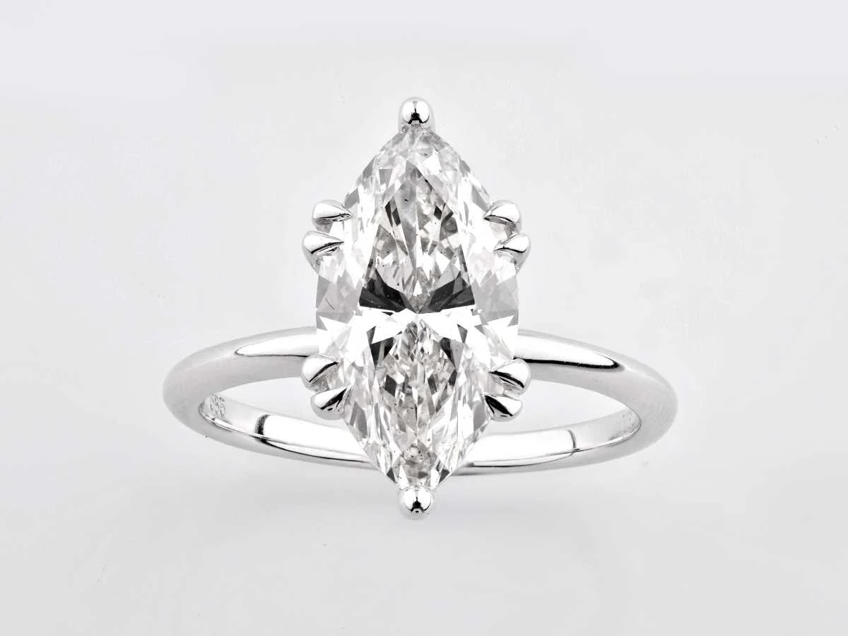 Number Of Items-1, Metal-Gold, Total Gross weight- 3.8, Set with: Lab Grown Diamonds, Number of Diamonds : 1, Total Carat Weight: 3.09, Diamonds Clarity: SI, Diamonds Shape/Cut : Marquise Brilliant cut, Diamonds Colour: FG, Condition : New, EU-54, US-7, UK-N½ (Diameter-17.2mm), Gold purity hallmark on the item of jewellery, Design Code : SR007930, Packaging : Jewellery Box with Certificate card, Historical Retail Price: €2873. Gold is at all time record highs. This production is new or unused jewellery. However it was made in a lower gold price then today and we do not increase the prices - retail recommended prices or estimated prices are based on HISTORIAL gold prices. It means the gold is discounted if you reflect todays cost . All our lots are shipped in Fedex boxes by high priority. You will receive a tracking code soon after you have paid for the auction lots. It is despatched in 7-14 days usually and delivery is done in 24-48 hours thereafter. The lots are insured and prepaid by the seller. Within 14 days Materiaal: Gold Kleur: White Voornaamste diamant: Lab Grown Diamonds Gewicht diamant: 3.09ct Totaal gewicht: 3.80g Kleur diamant: FG Zuiverheidsgraad diamant: SI