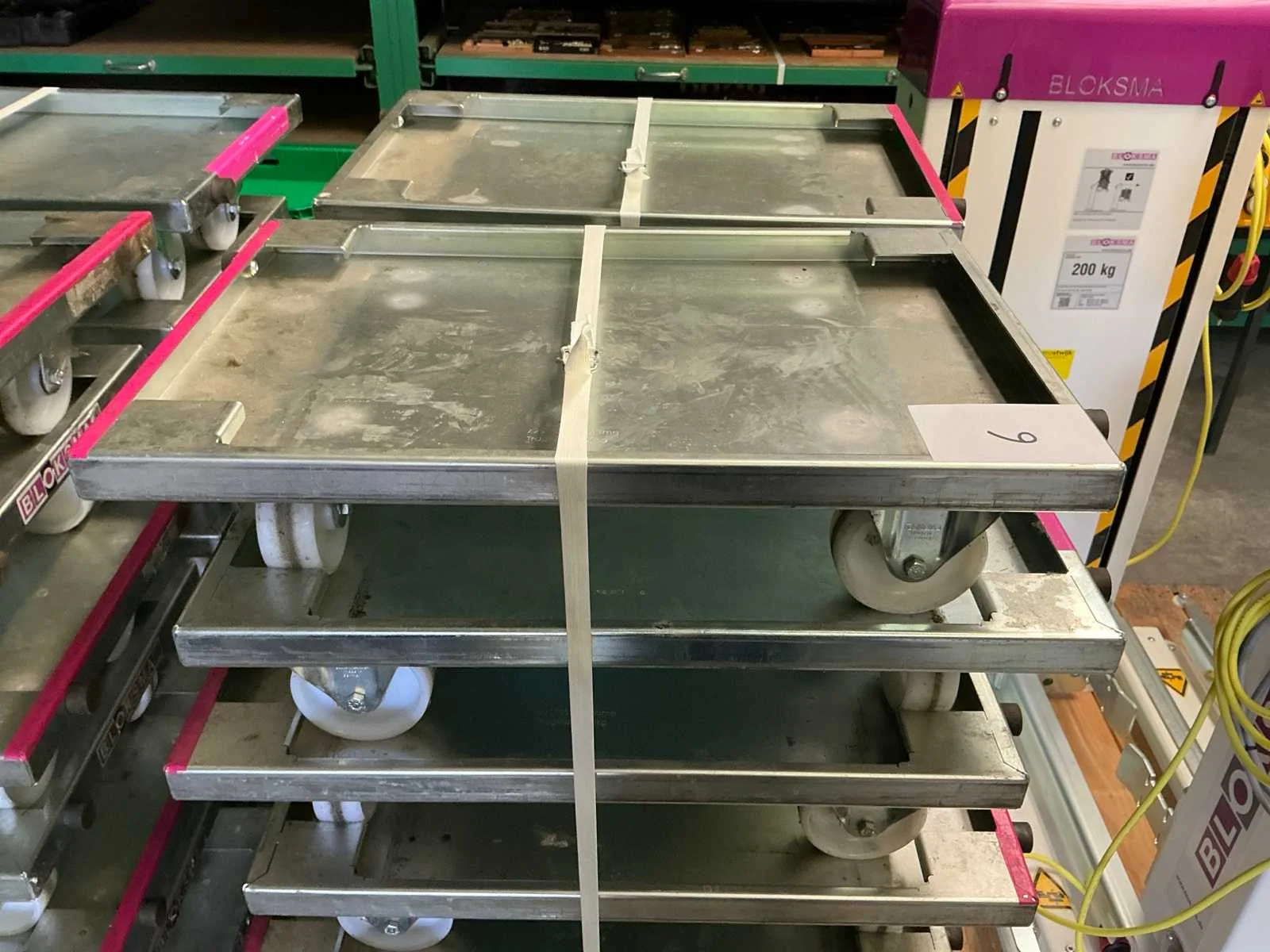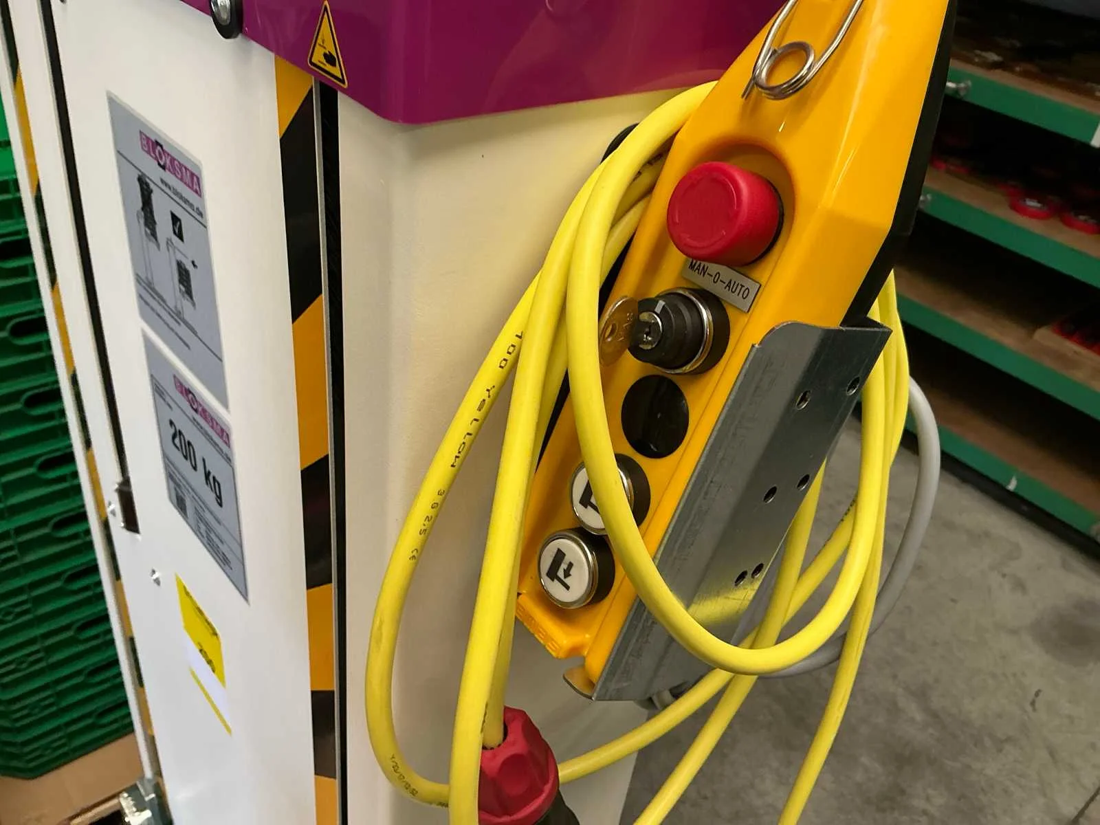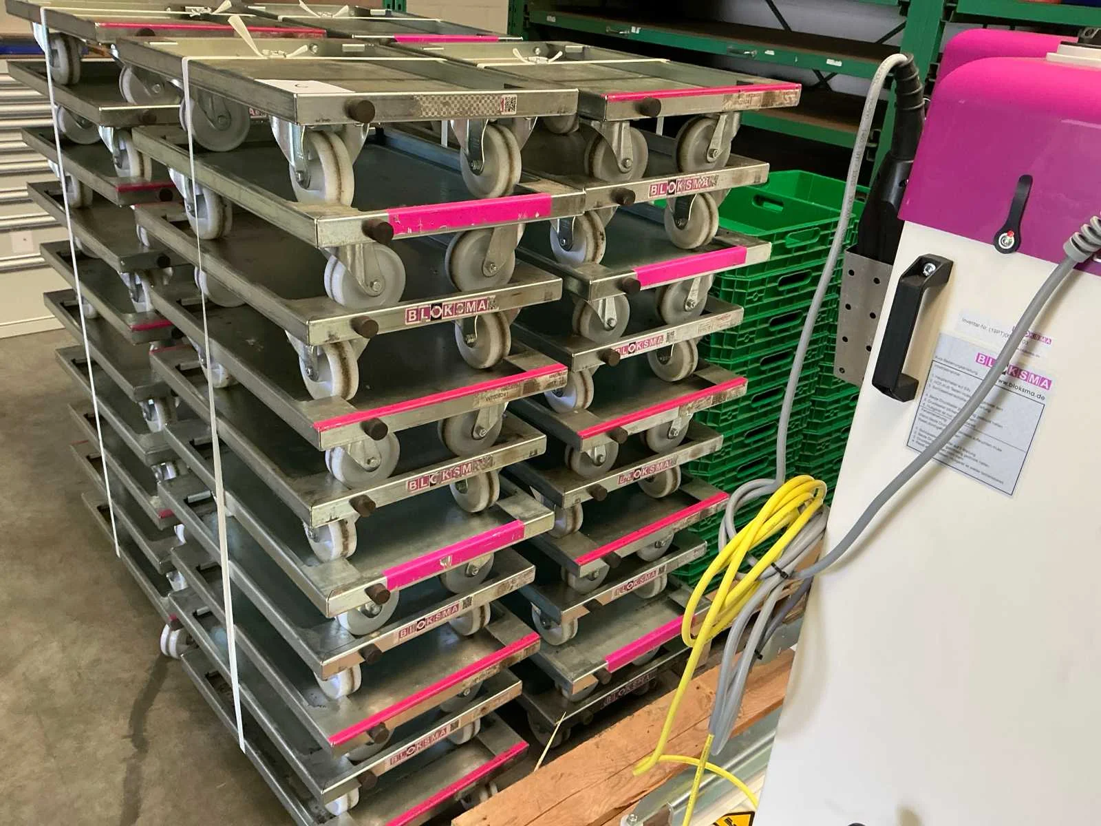 Hefhoogte: 850mm; inclusief: 20 bijhorende dolly’s met capaciteit 150 kg, afmeting: 600x400x160mm artikelnummer: Z201357; met inbegrip van 20 stapelbare kunststof manden. Afmeting: 445x380mm Merk: Bloksma Type: GA HET-FVBEP-200 Bouwjaar: 2019 Hefvermogen: 200kg Aansluiting: 230V Totale afmeting L: 1000mm Totale afmeting Breedte: 650mm Totale afmeting Hoogte: 1300mm