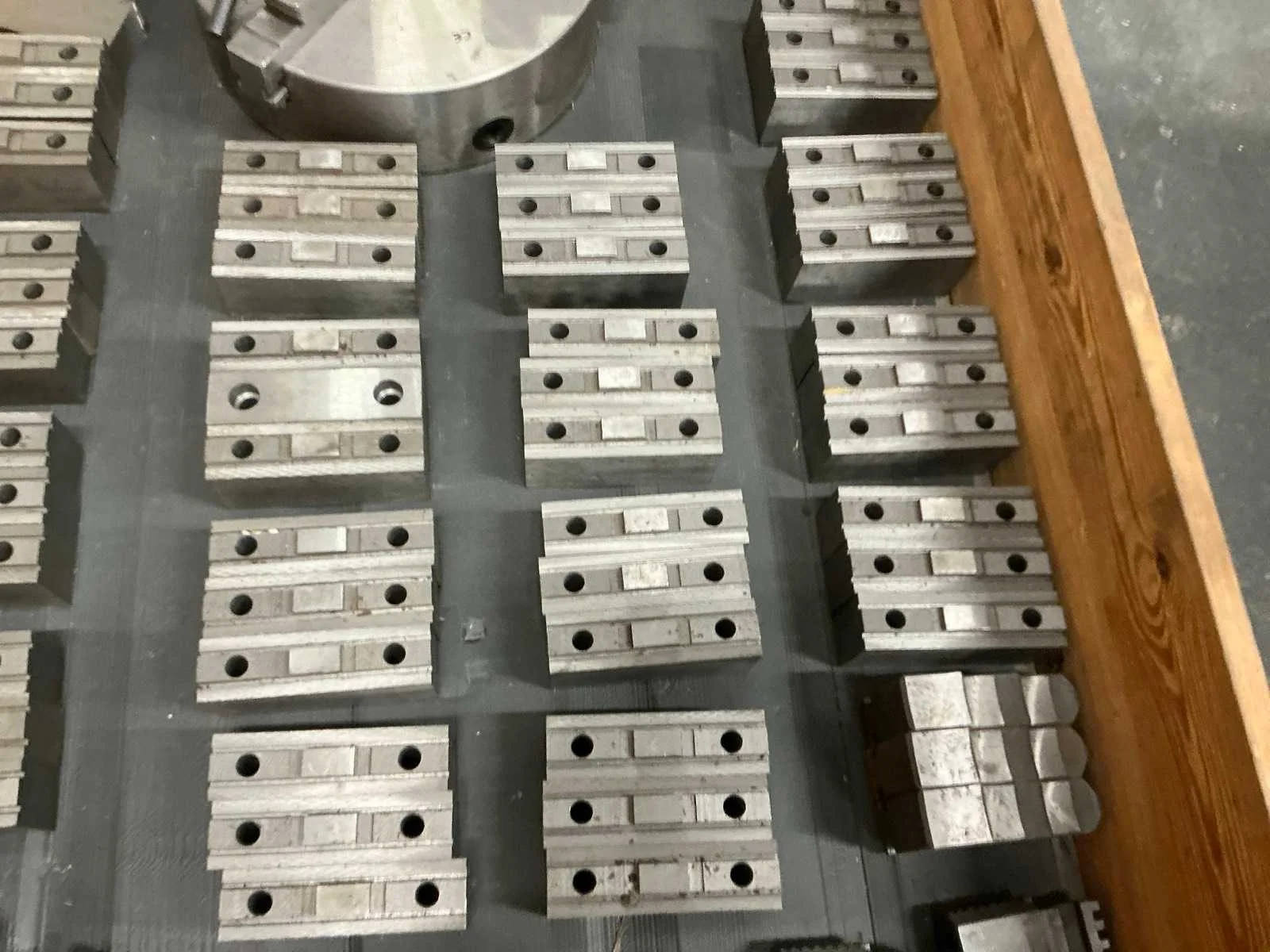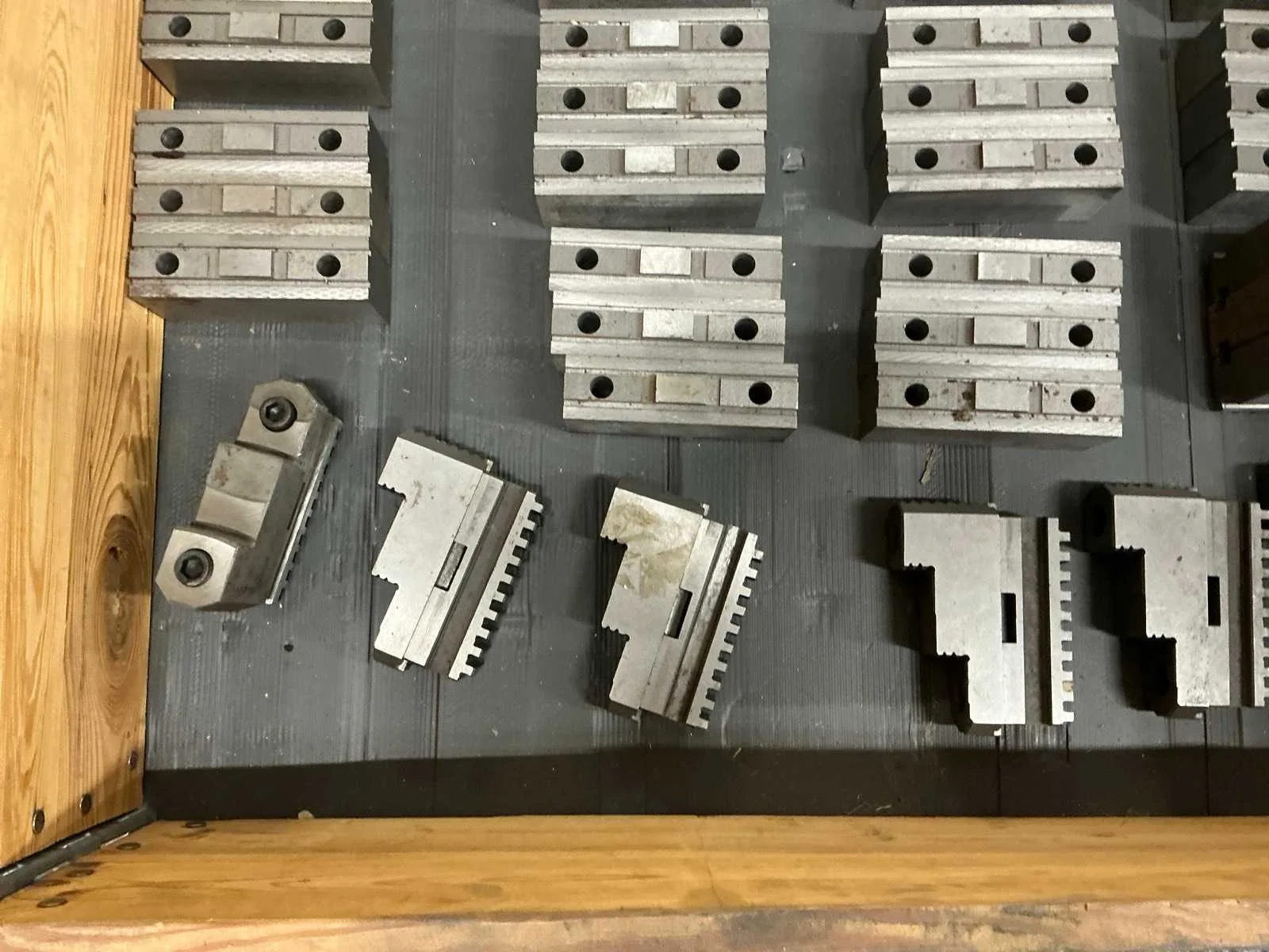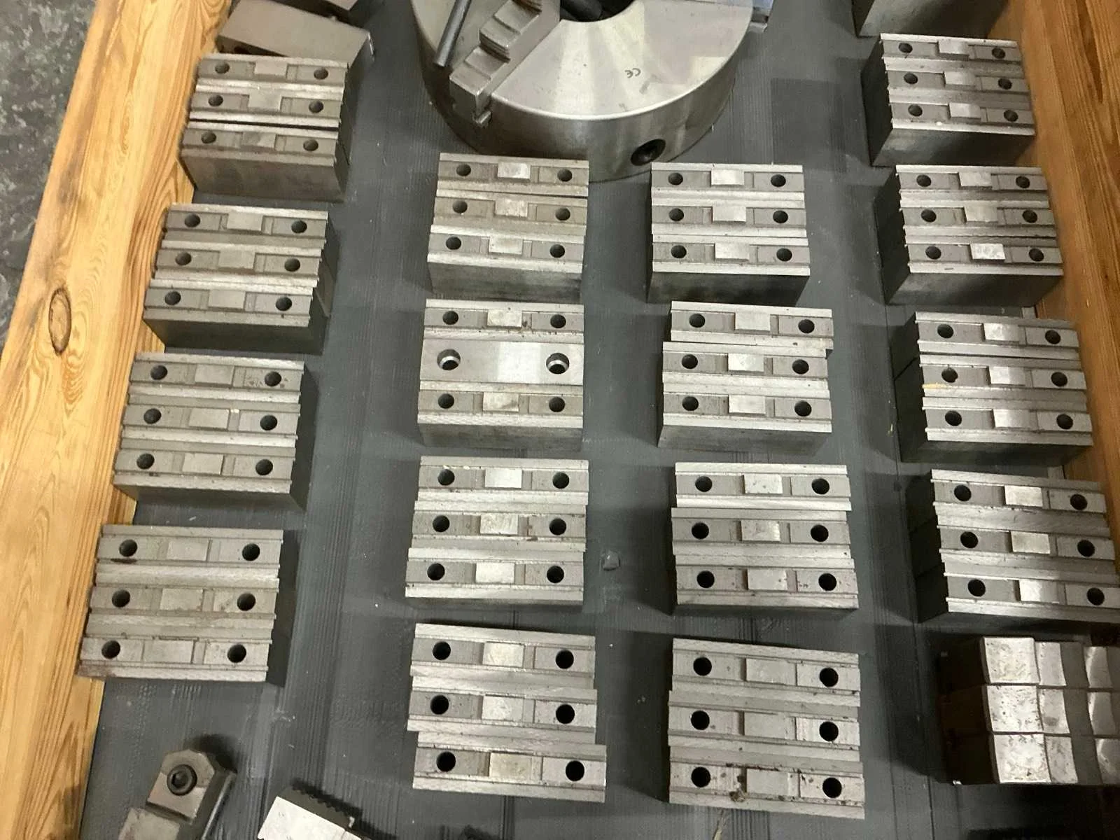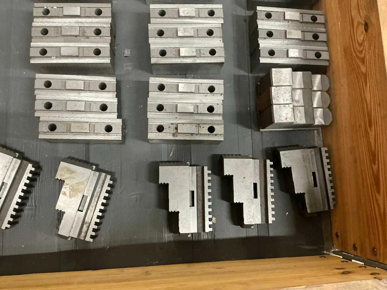 Doorlaat 105mm/ inclusief: groot assortiment grond en zachte klauwen/ ongebruikt/ gestapeld in palletbox 3-klauw: true Diameter circa: 315mm