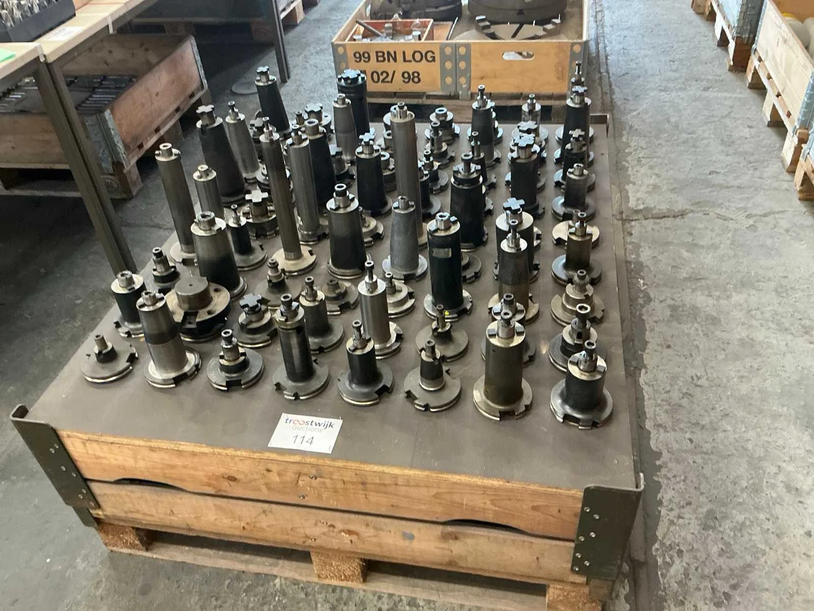 Diverse diameters en lengtes/ ca 72 stuks/ sorteerplank en palletbox niet inbegrepen