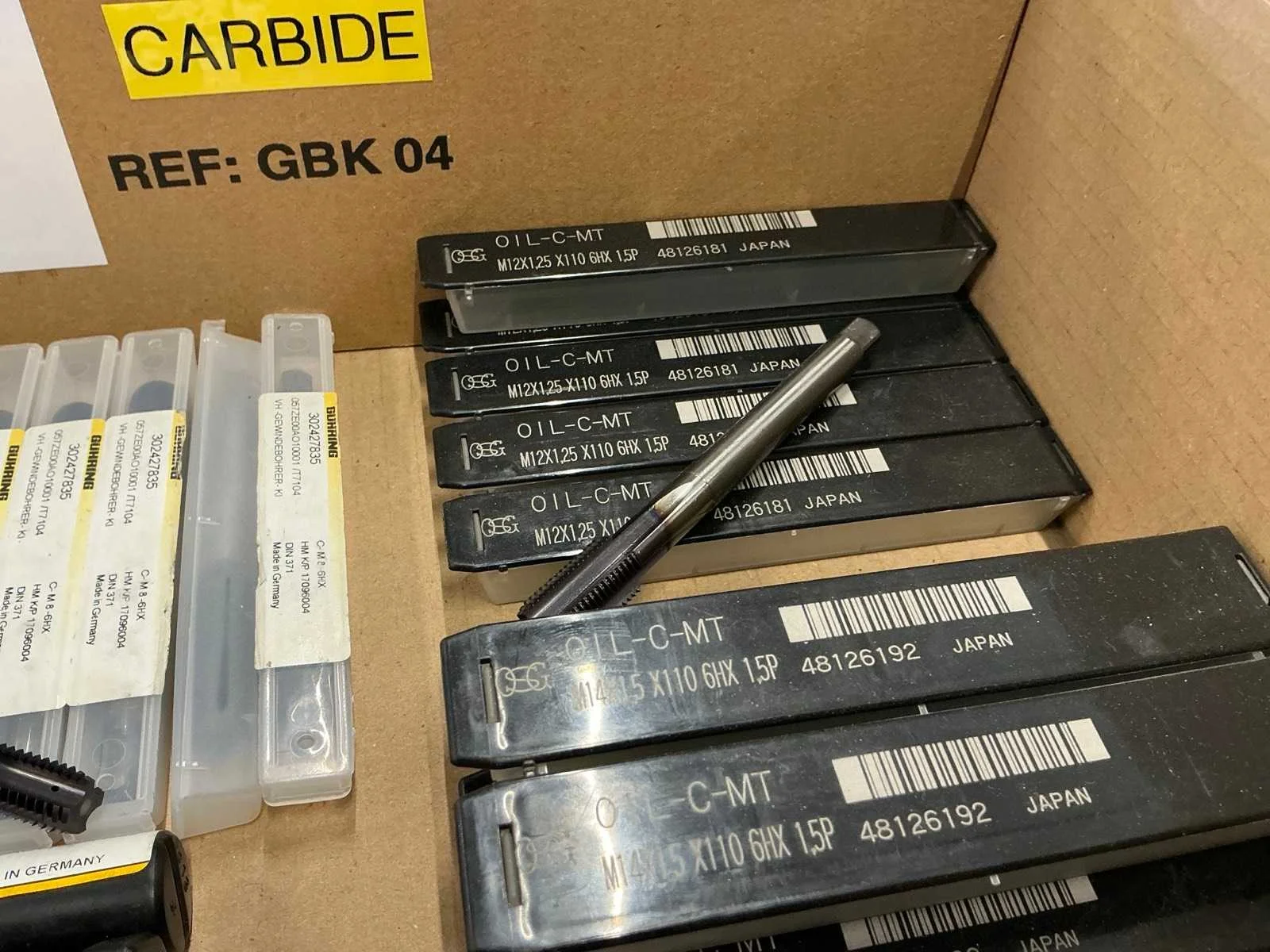Volhardmetalen met inwendige koeling/ 10 stuks M8/ 10 stuks M10/ 5 stuks M12x1,25/ 10 stuks M12x1,5/ 5 stuks M14x1,5 Merk: Guhring en OSG