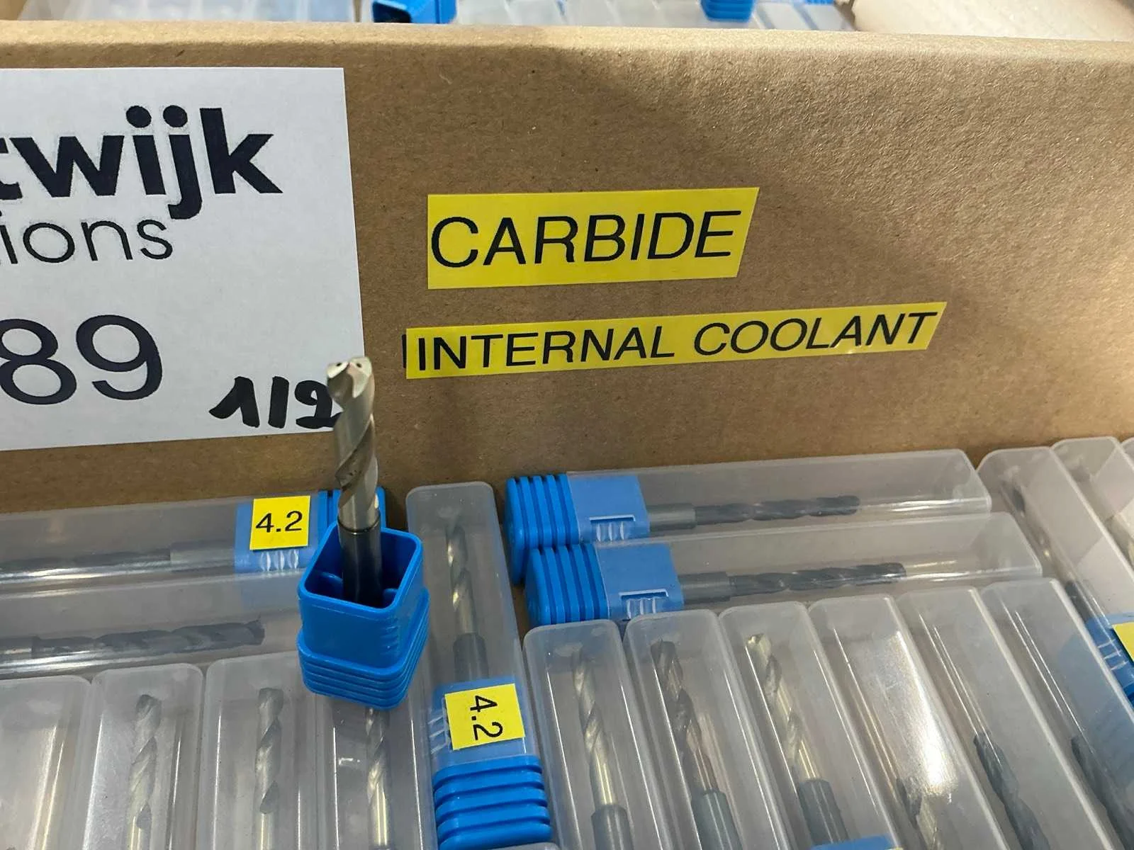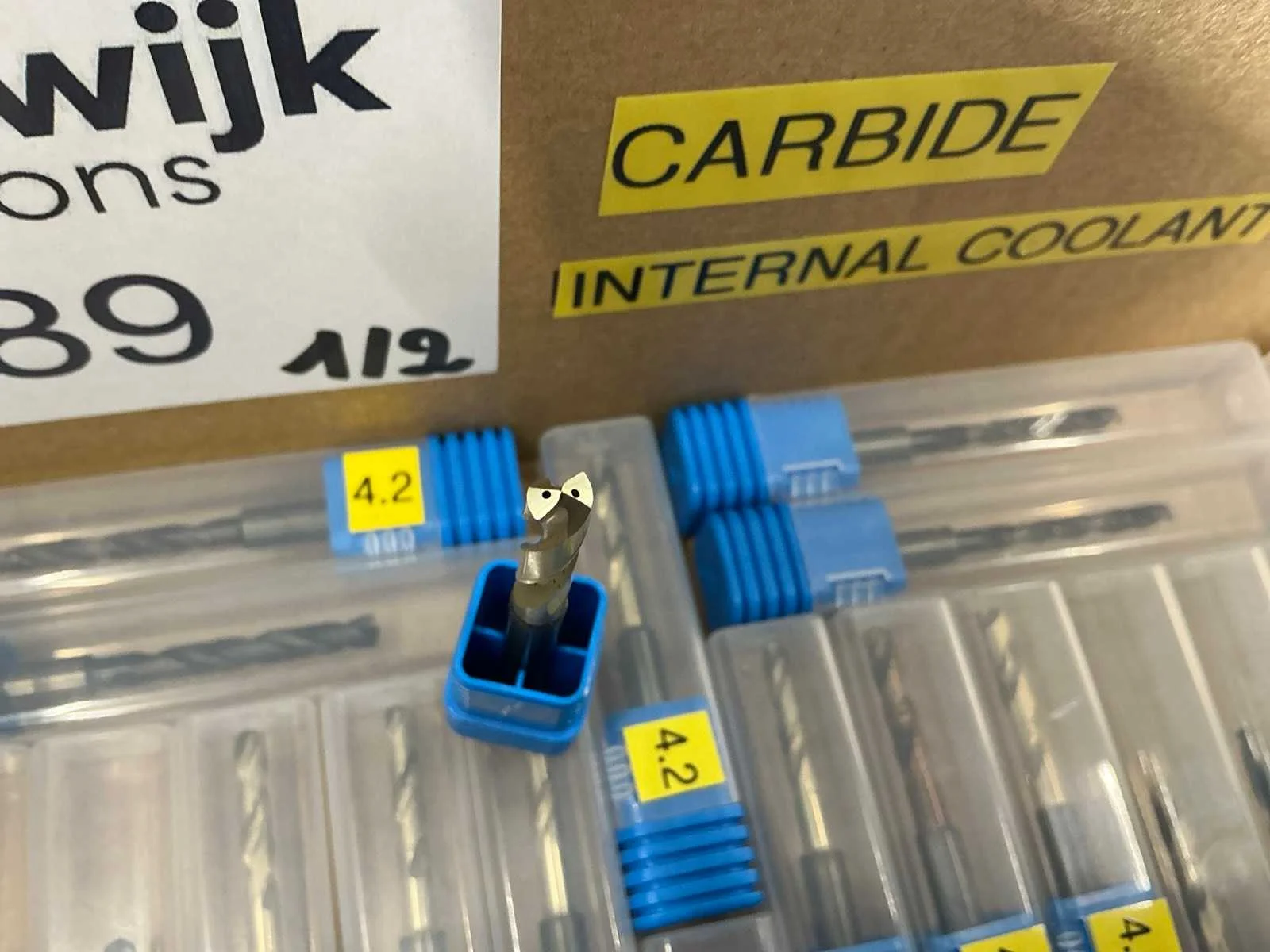 Voorzien van koelingsgaten/ gecoat/schacht 6 mm/ diverse diameters/ 3xD/ 5xD/ in 2 kartonnen boxen
