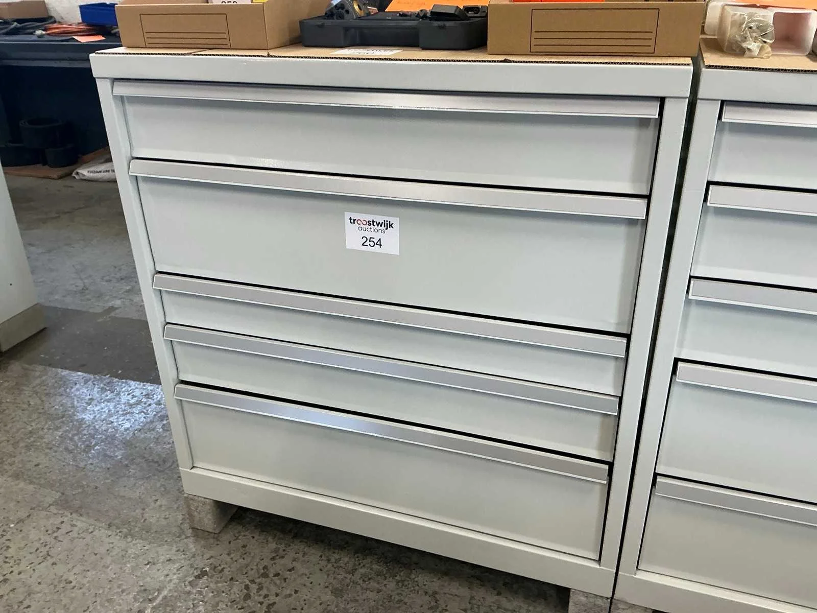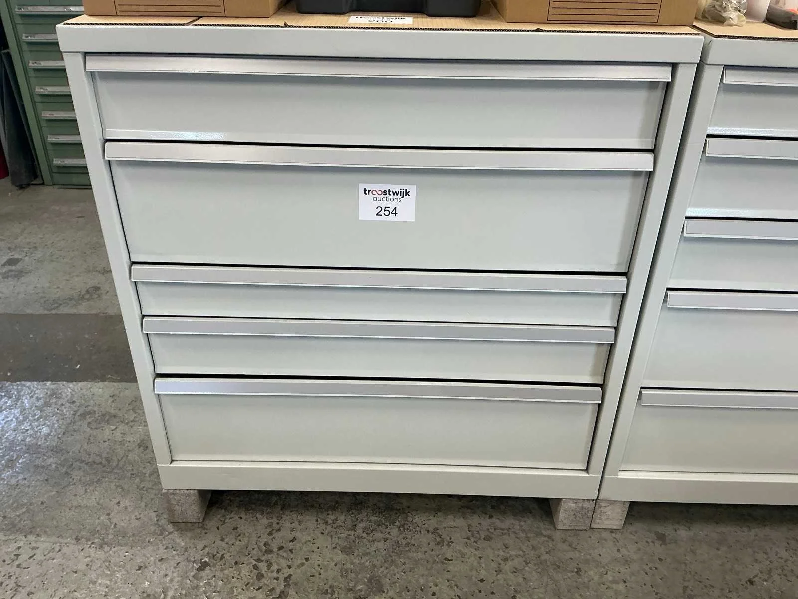 Fronthoogte lades: 1 lade met fronthoogte 125 mm/ 1 lade met fronthoogte 150 mm/ 2 lades met fronthoogte 240 mm Merk: KIND Kleur: RAL 7035 Lengte: 76 Breedte: 101.5cm Hoogte: 102cm