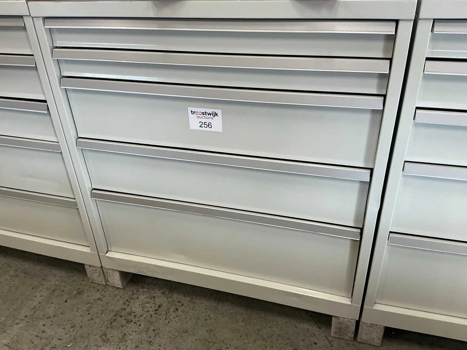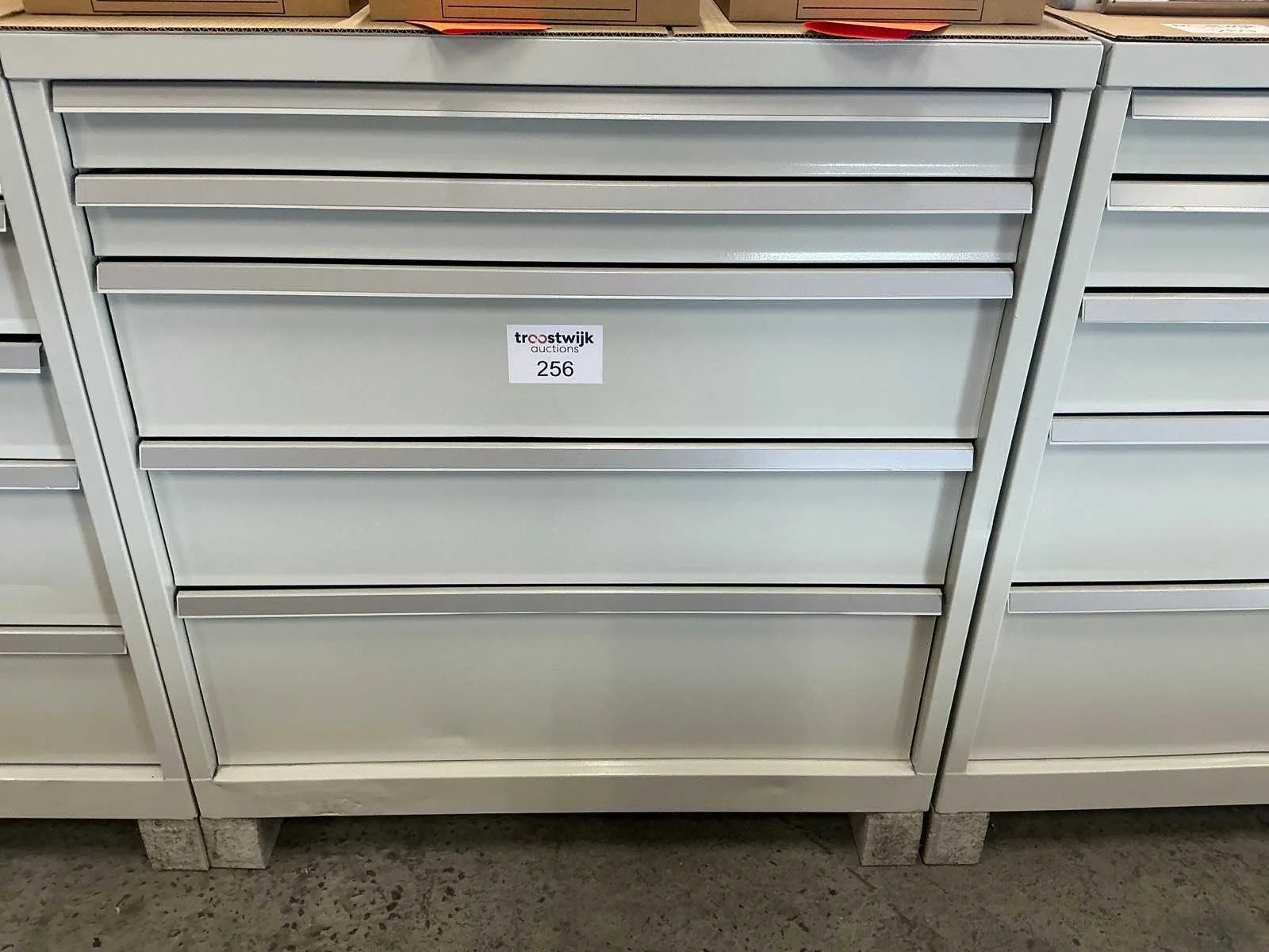 Fronthoogte lades: 2 lades met fronthoogte 85 mm/ 2 lades met fronthoogte 210 mm/ 1 lade met fronthoogte 300 mm Merk: KIND Kleur: RAL 7035 Lengte: 76 Breedte: 101.5cm Hoogte: 102cm